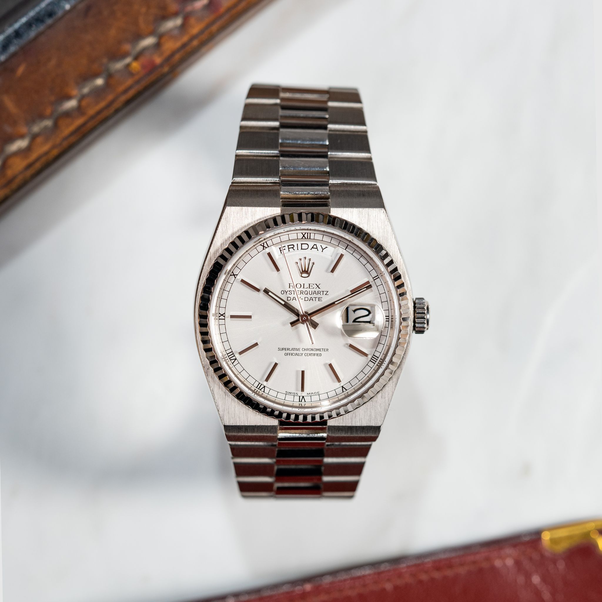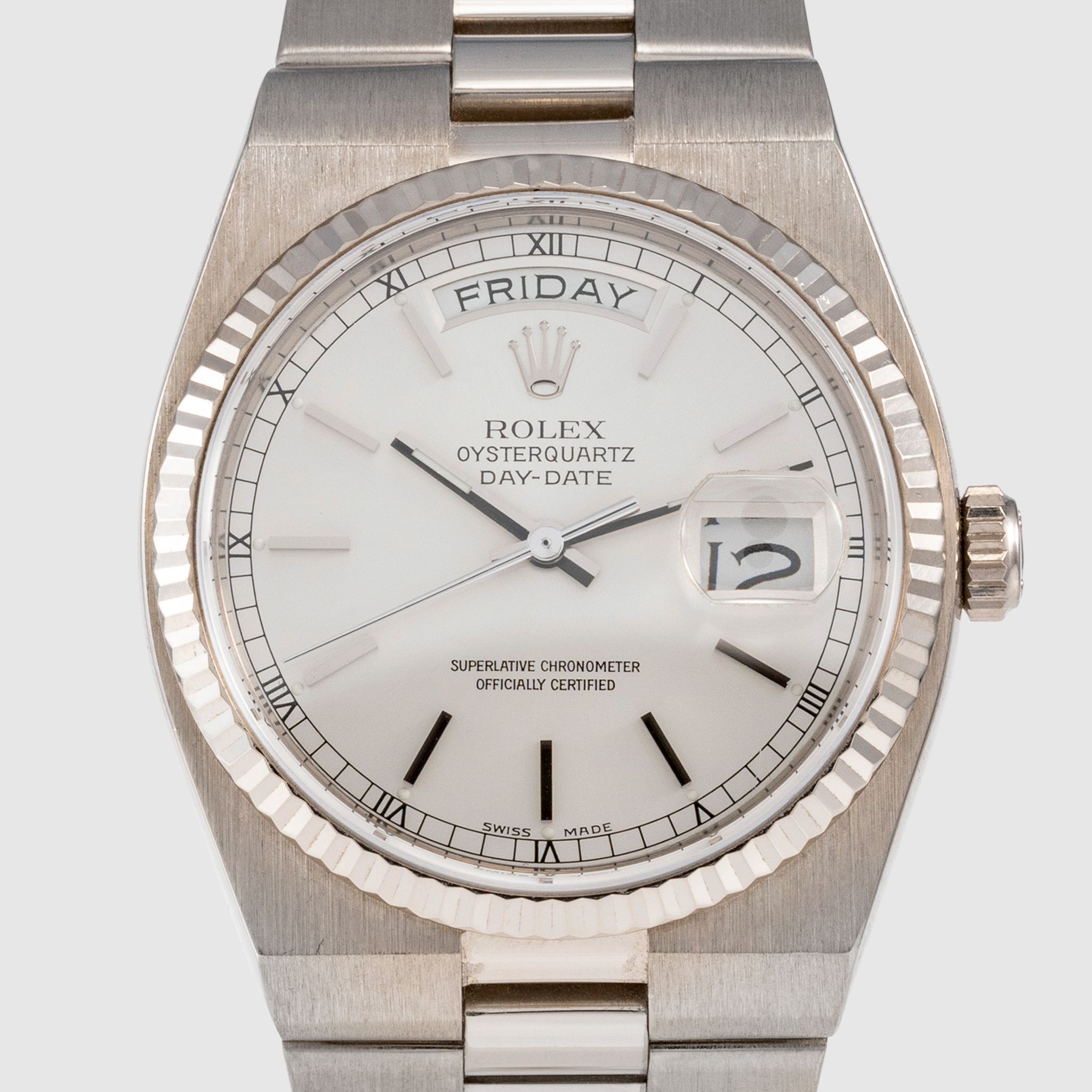 Rolex - Rolex Oysterquartz Day Date Silver Dial Unpolished Ref. 19019, 2000