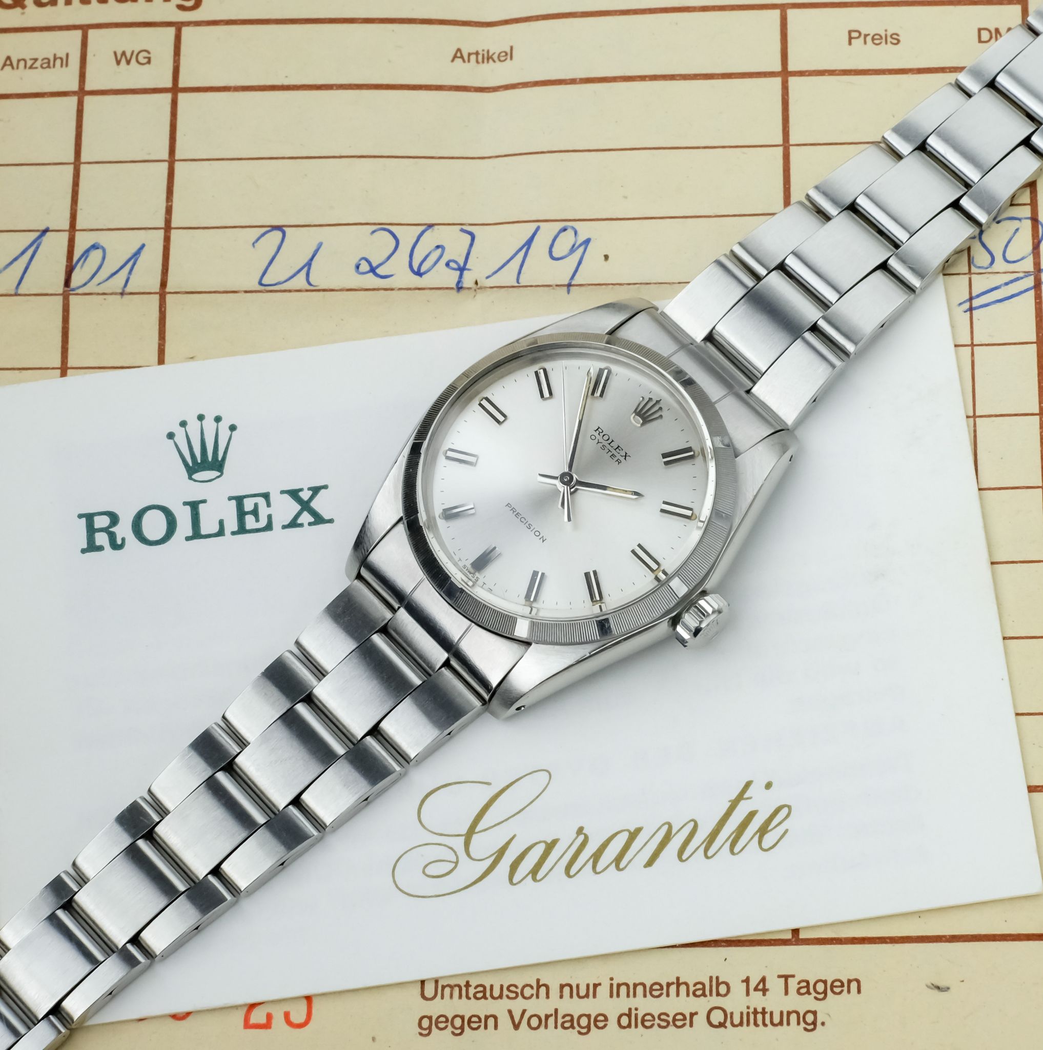 Beautiful Rolex Precision in unpolished condition accompanied by the fullset, sold in Frankfurt/germany in 1972. *condition: the case is in very good condition and appears to be unpolished. The bracelet has only very light stretch to it. The dial is in perfect condition.