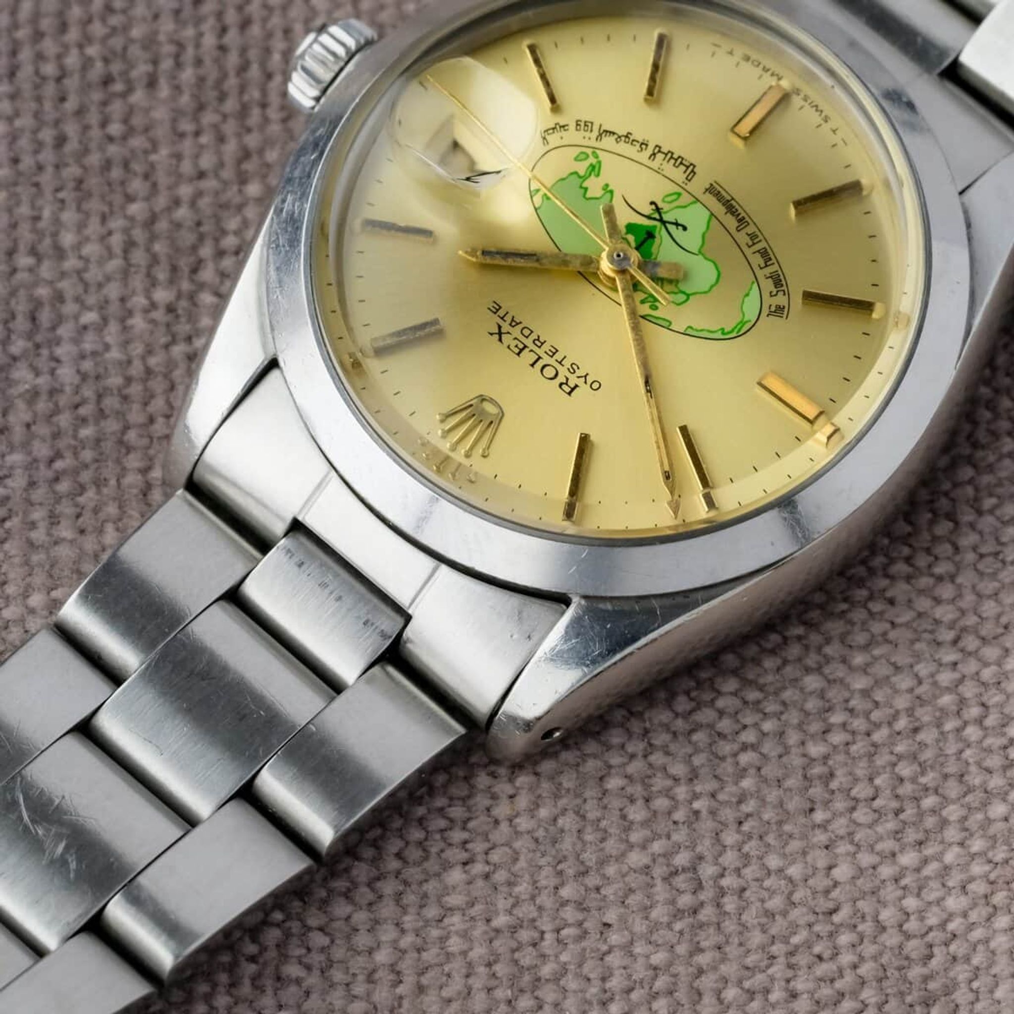This Rolex Oysterdate reference 6694 is a rare and beautifully preserved example of one of the brand’s most distinctive vintage models. Crafted in stainless steel with a 34 millimeter case, it features a solid smooth bezel and the classic Oyster bracelet, offering the timeless proportions and durability that define mid-century Rolex design.
