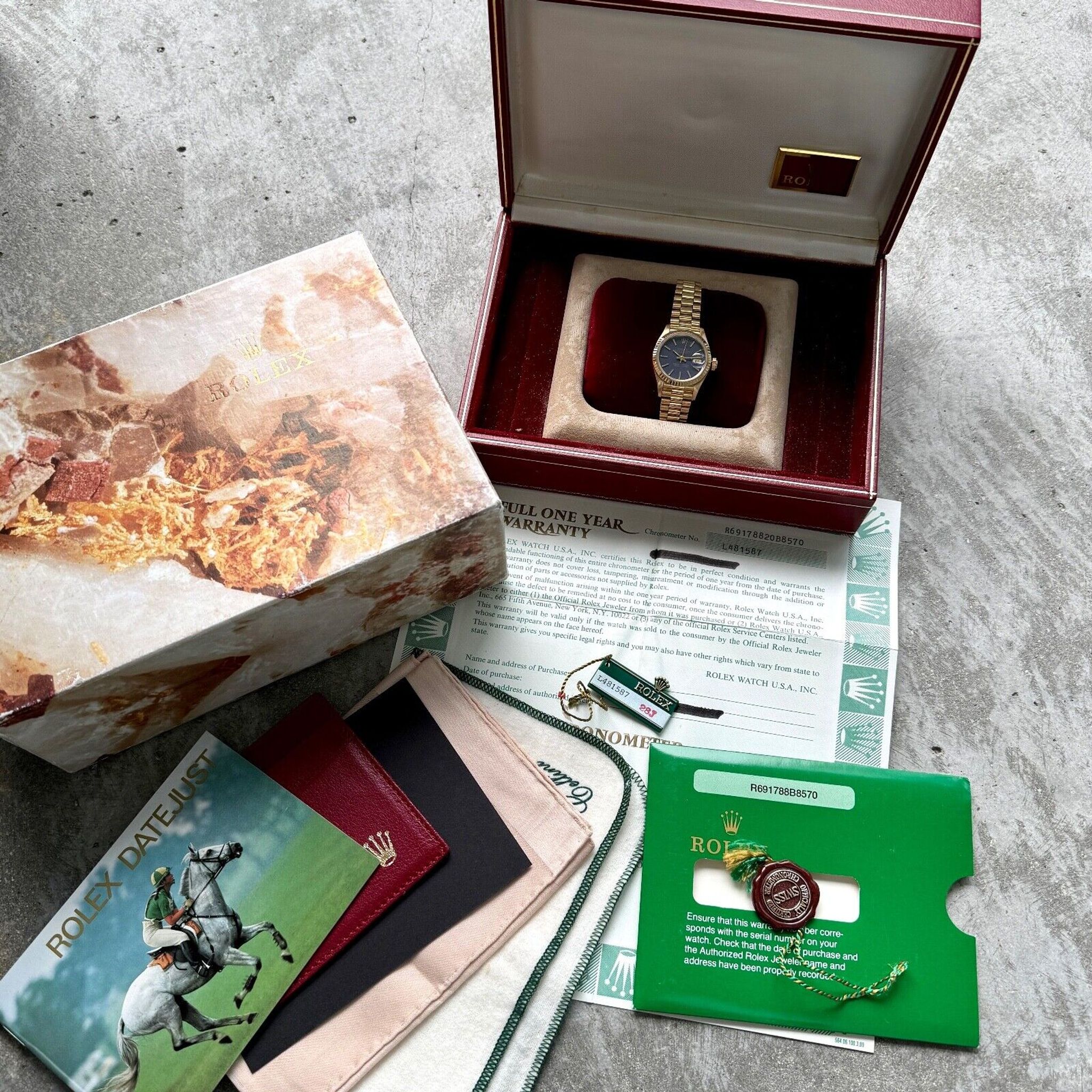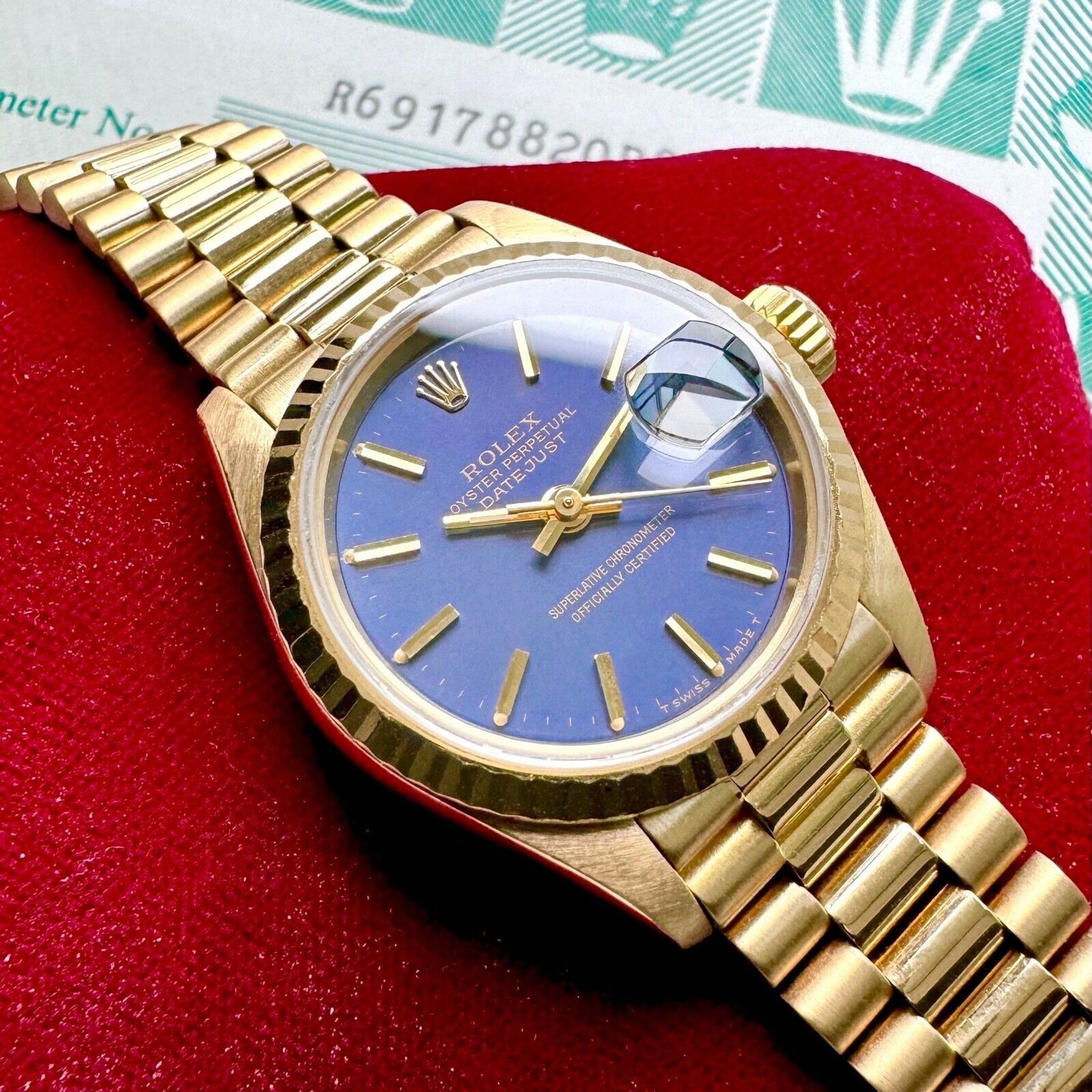 This ladies Rolex President, reference 69178, with its captivating purplish-blue dial is a testament to timeless elegance and luxurious craftsmanship.
