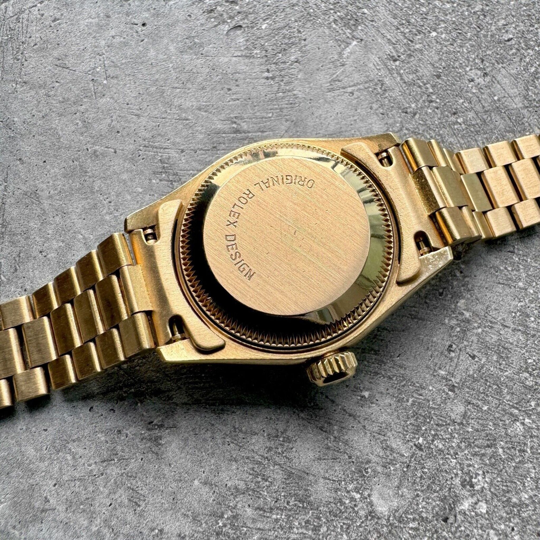 The distinctive purplish-blue dial of the Rolex President exudes sophistication, making it a standout choice for the discerning female connoisseur. The rich and alluring hue of the dial adds a touch of glamour to this iconic timepiece, setting it apart as a unique and compelling accessory that effortlessly combines style and functionality.