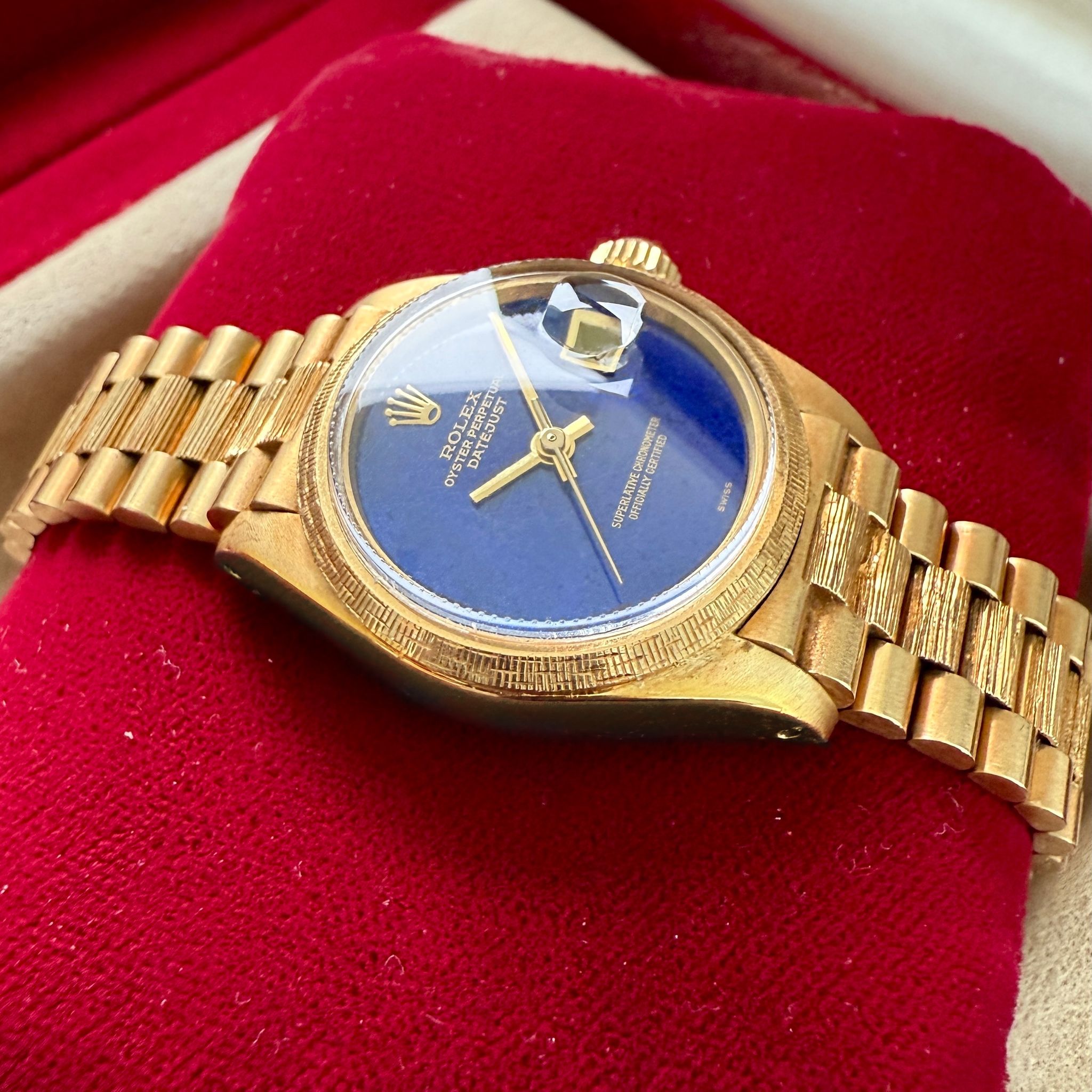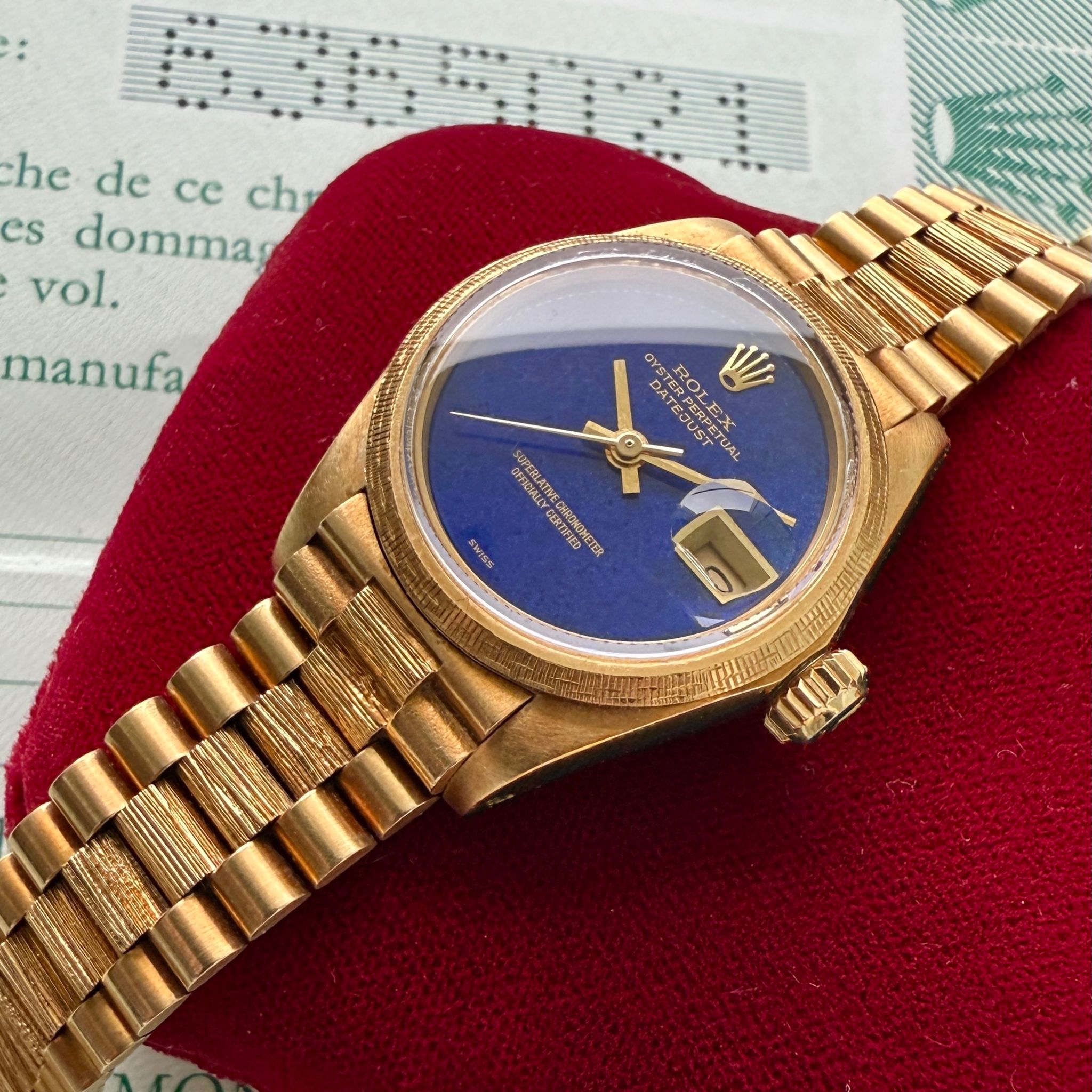 This ladies Rolex President, reference 69178, with its captivating blue Lapis dial is a testament to timeless elegance and luxurious craftsmanship.