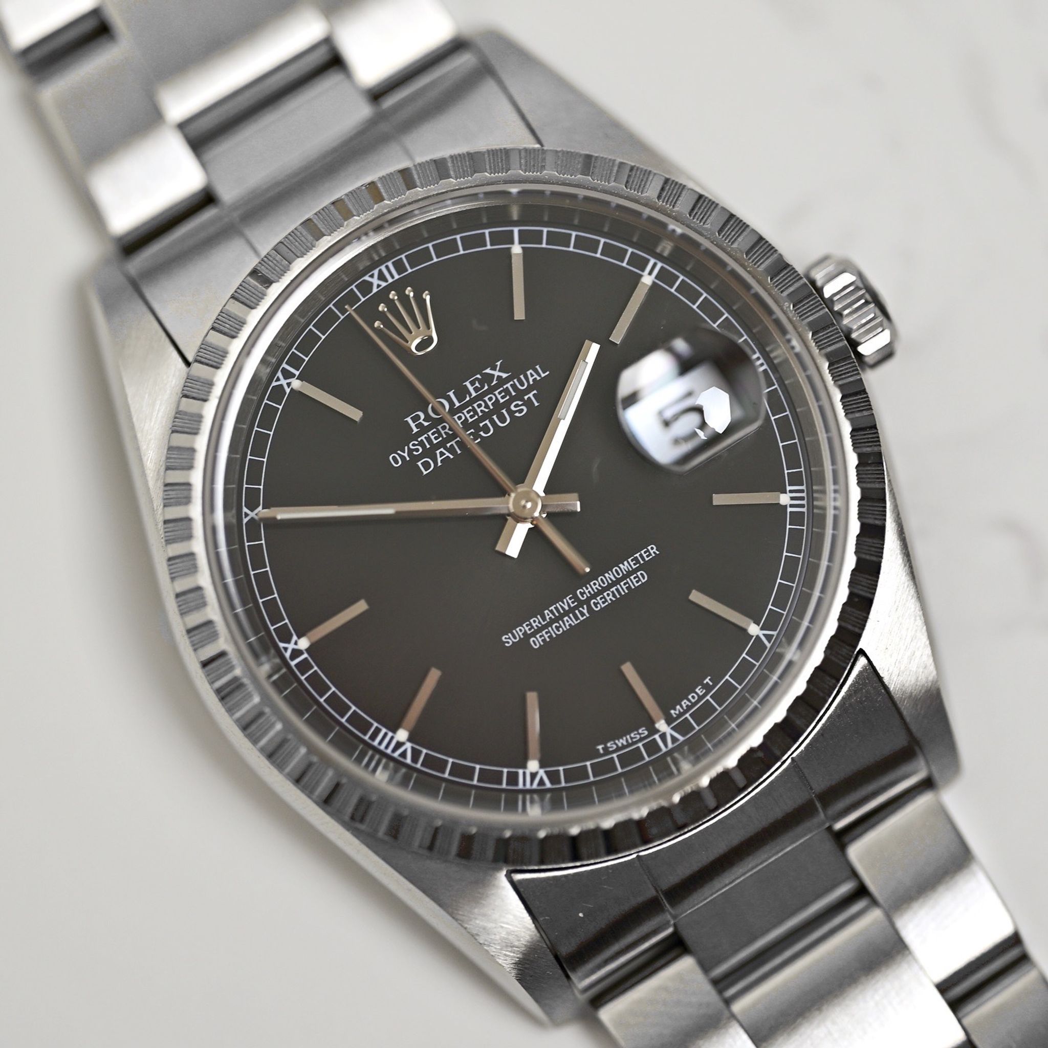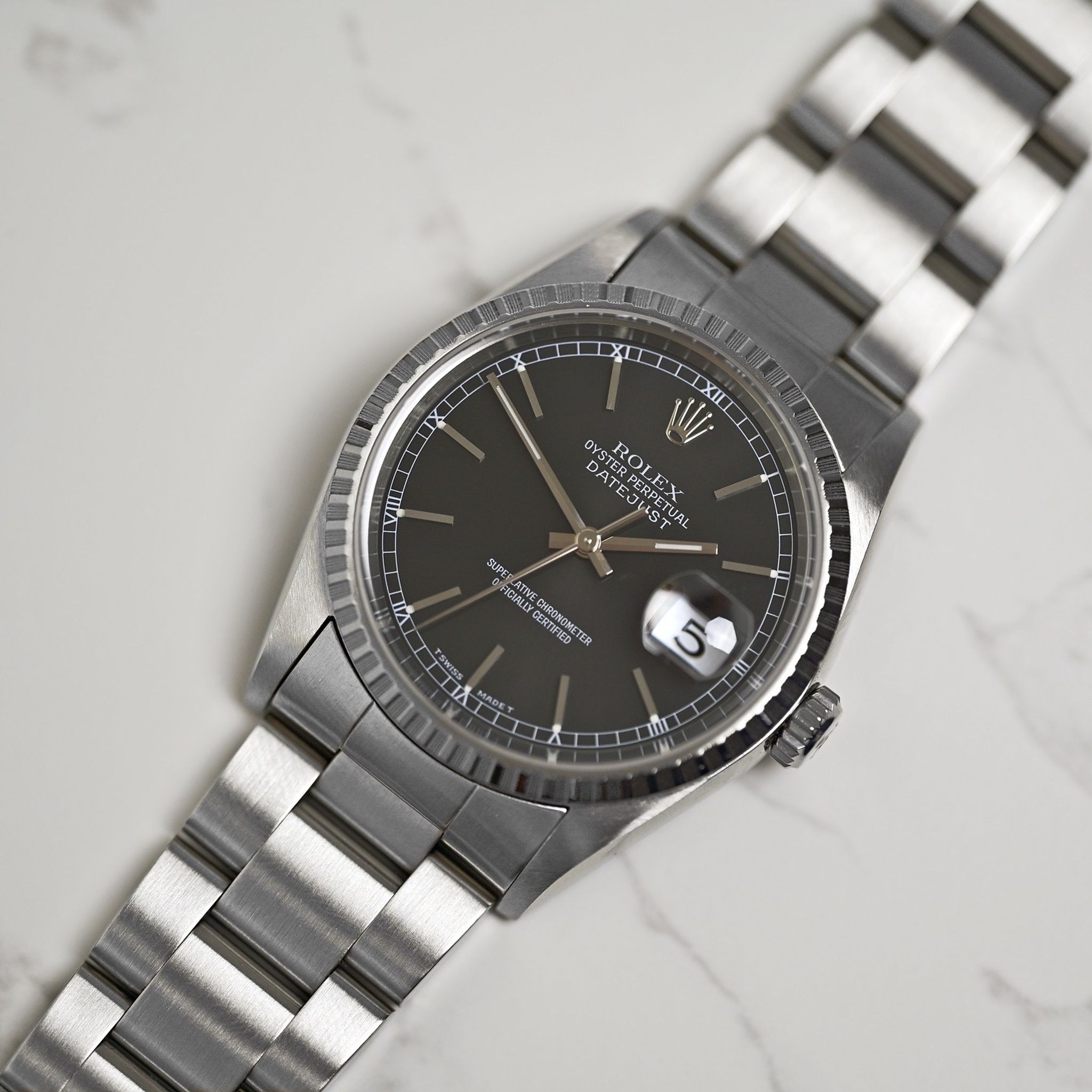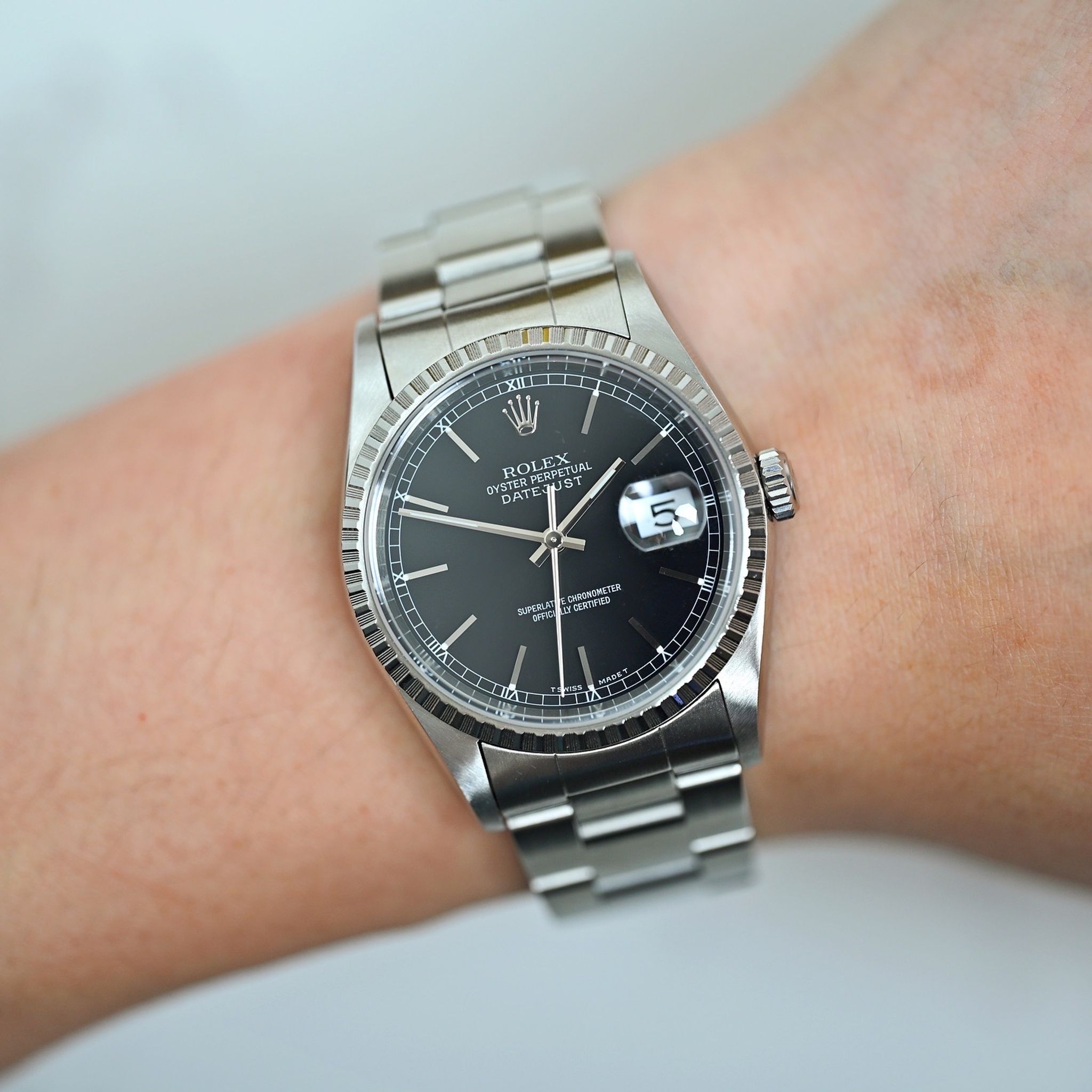 Rolex - Rolex Steel Datejust Black Dial 16220 w/ Original Paper