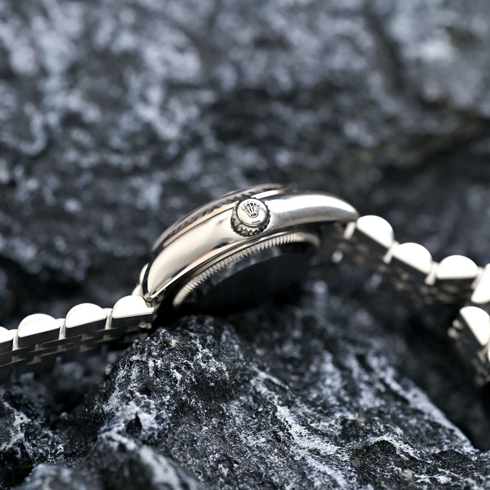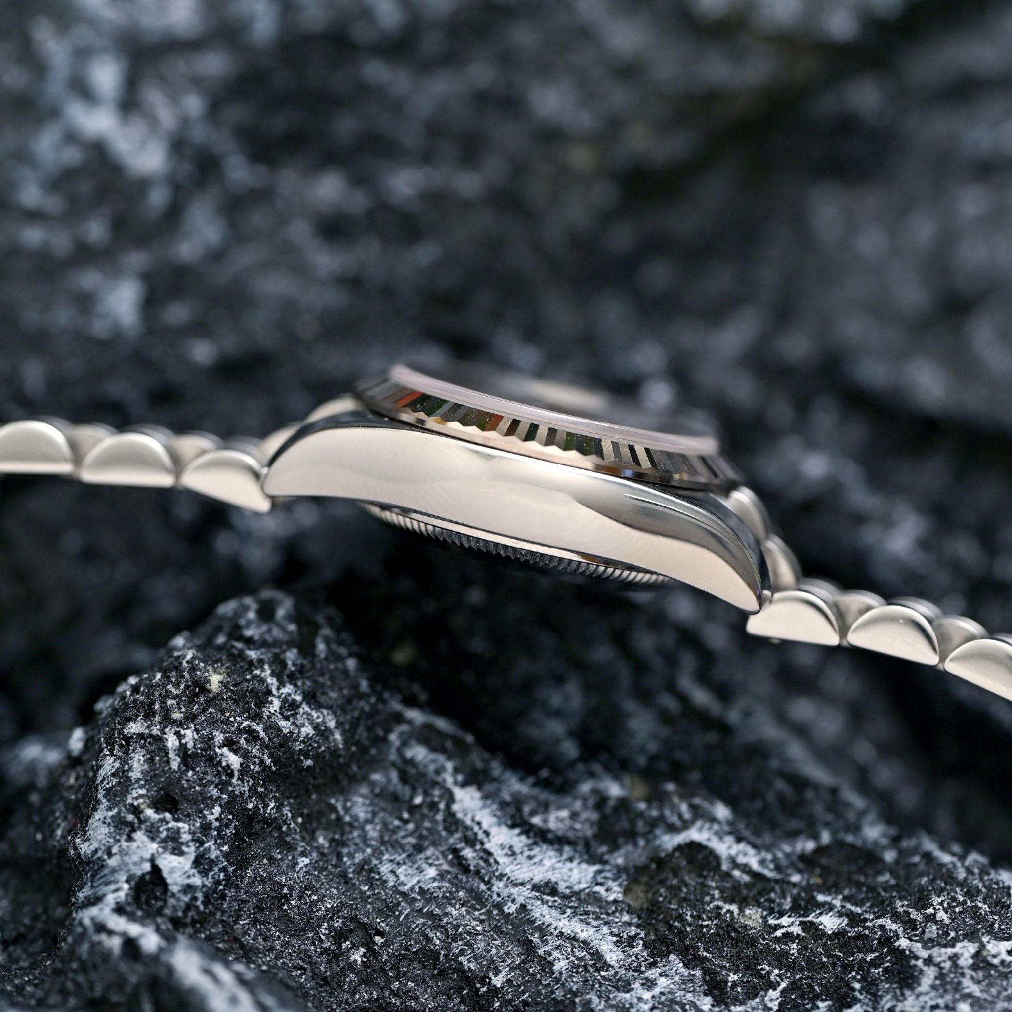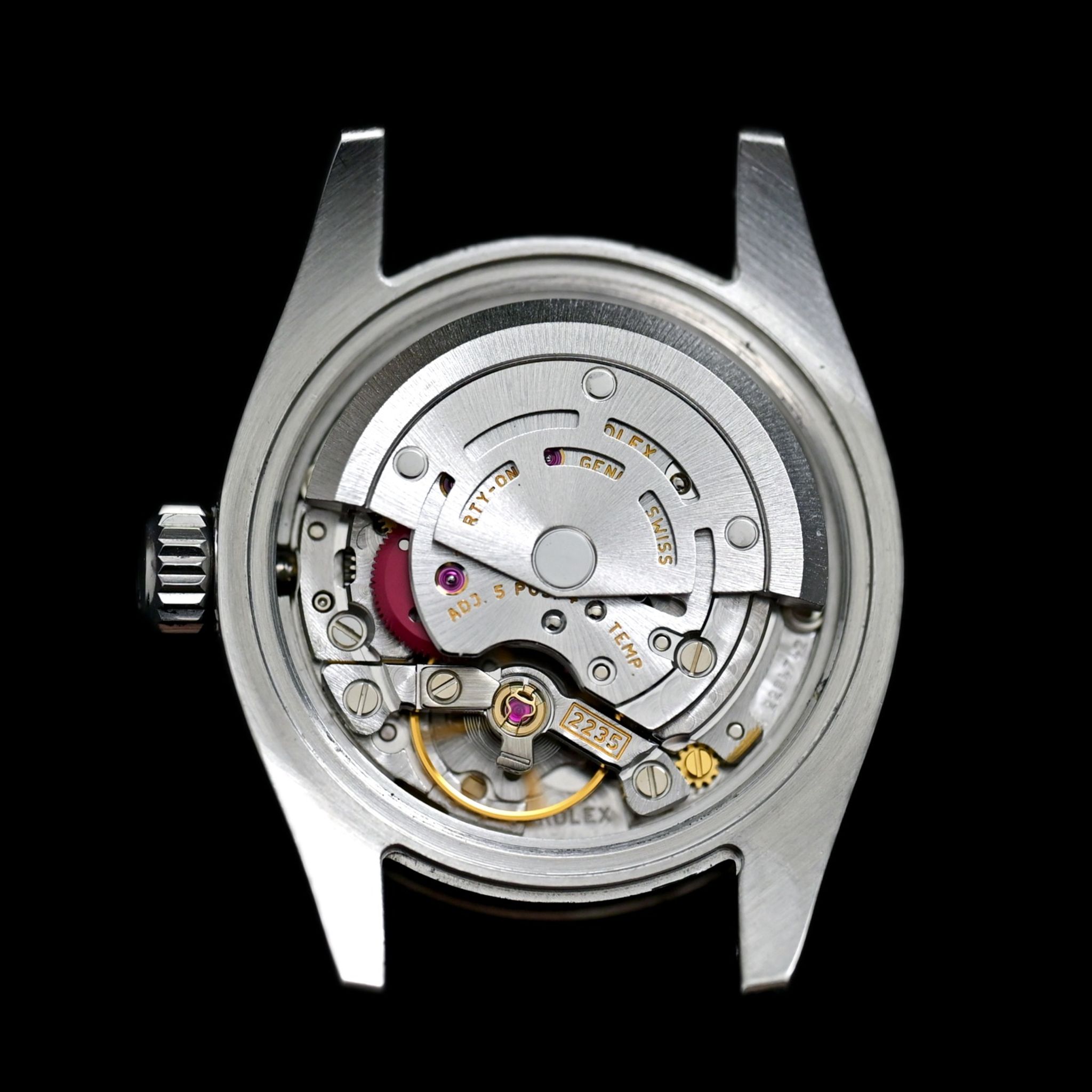 Dial: In excellent condition, this MOP dial showcases a stunning, cloud-like pattern that adds a dreamy allure. It features rare ruby indexes and perfectly matching hands, making it a truly captivating piece.