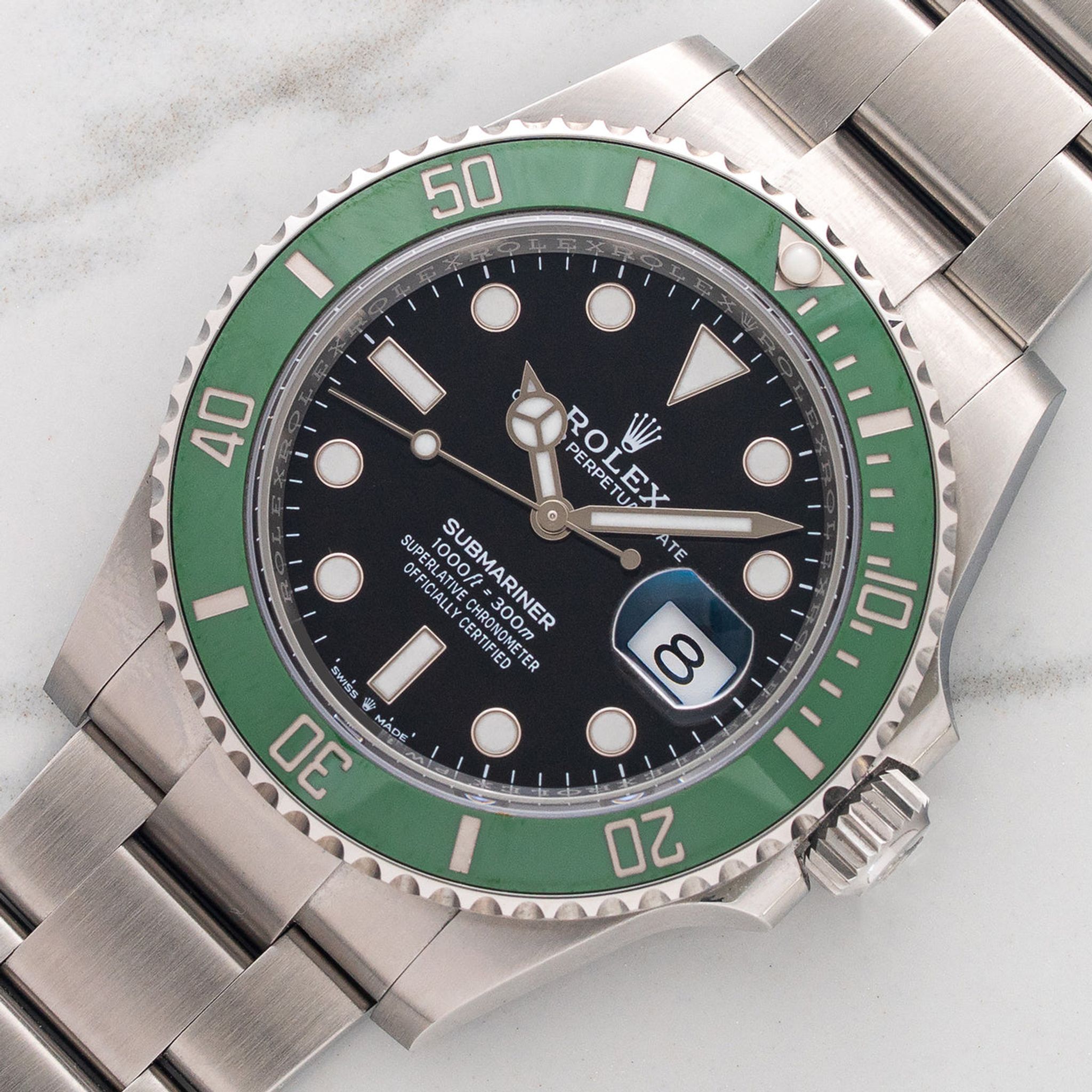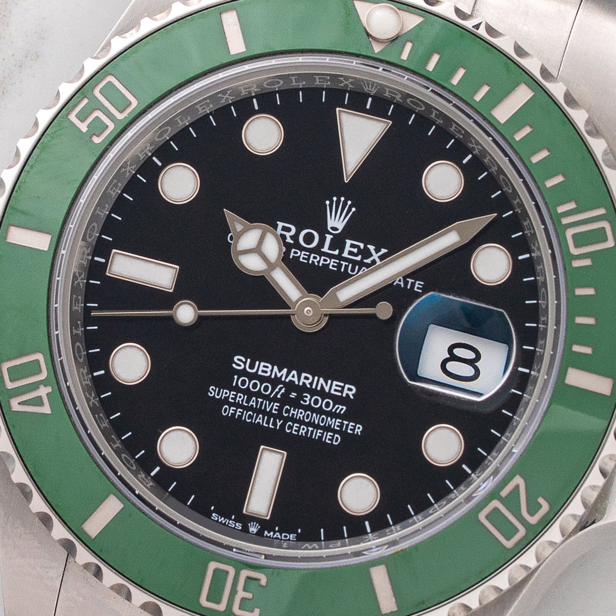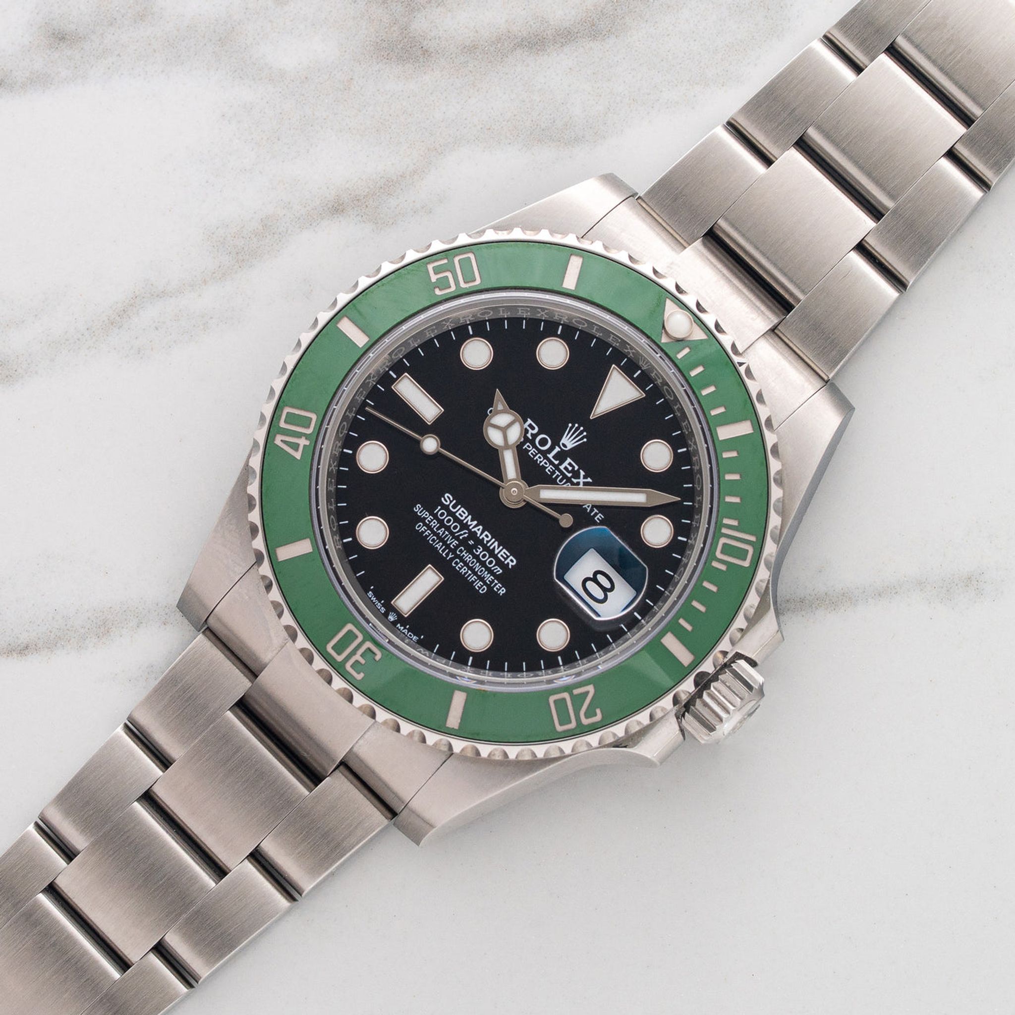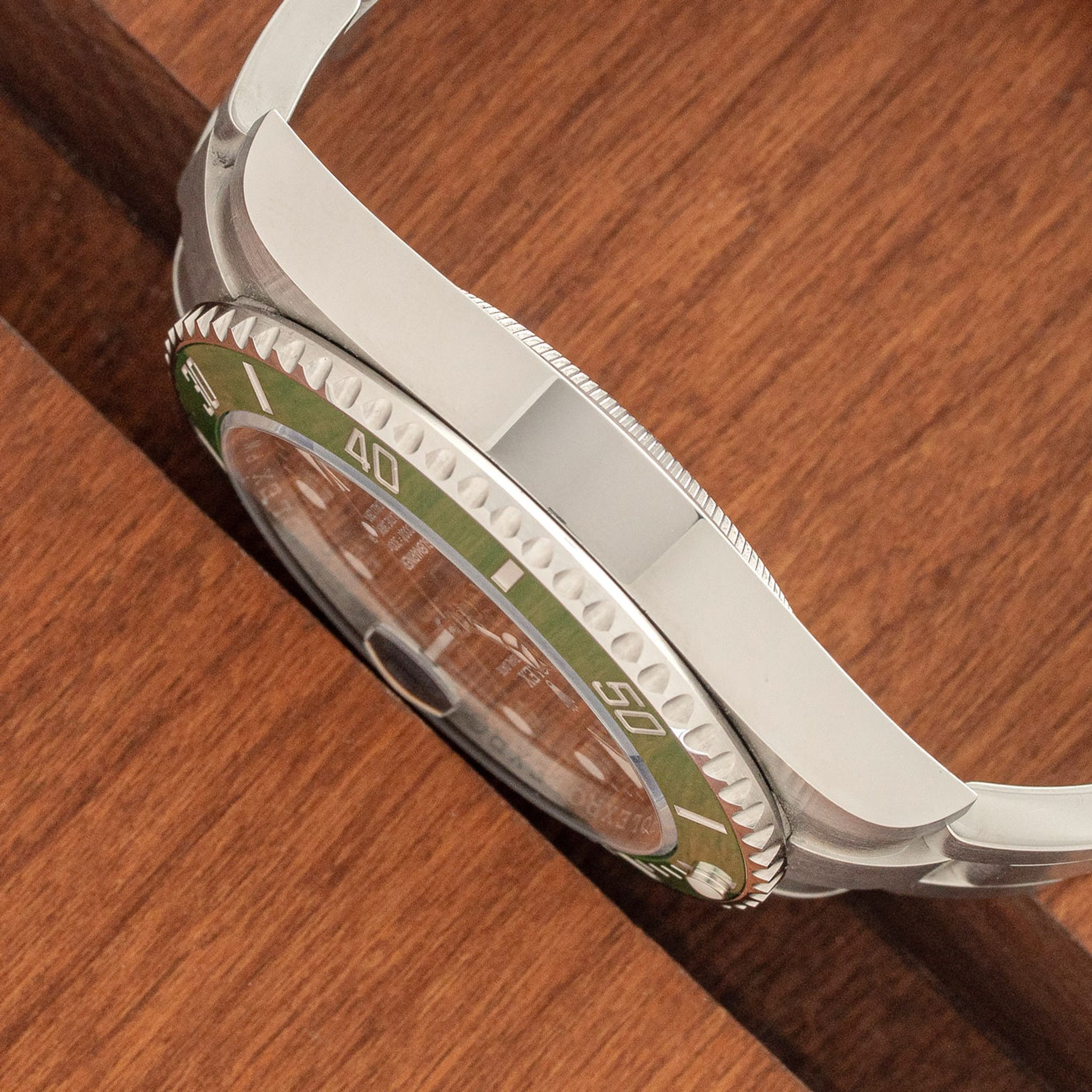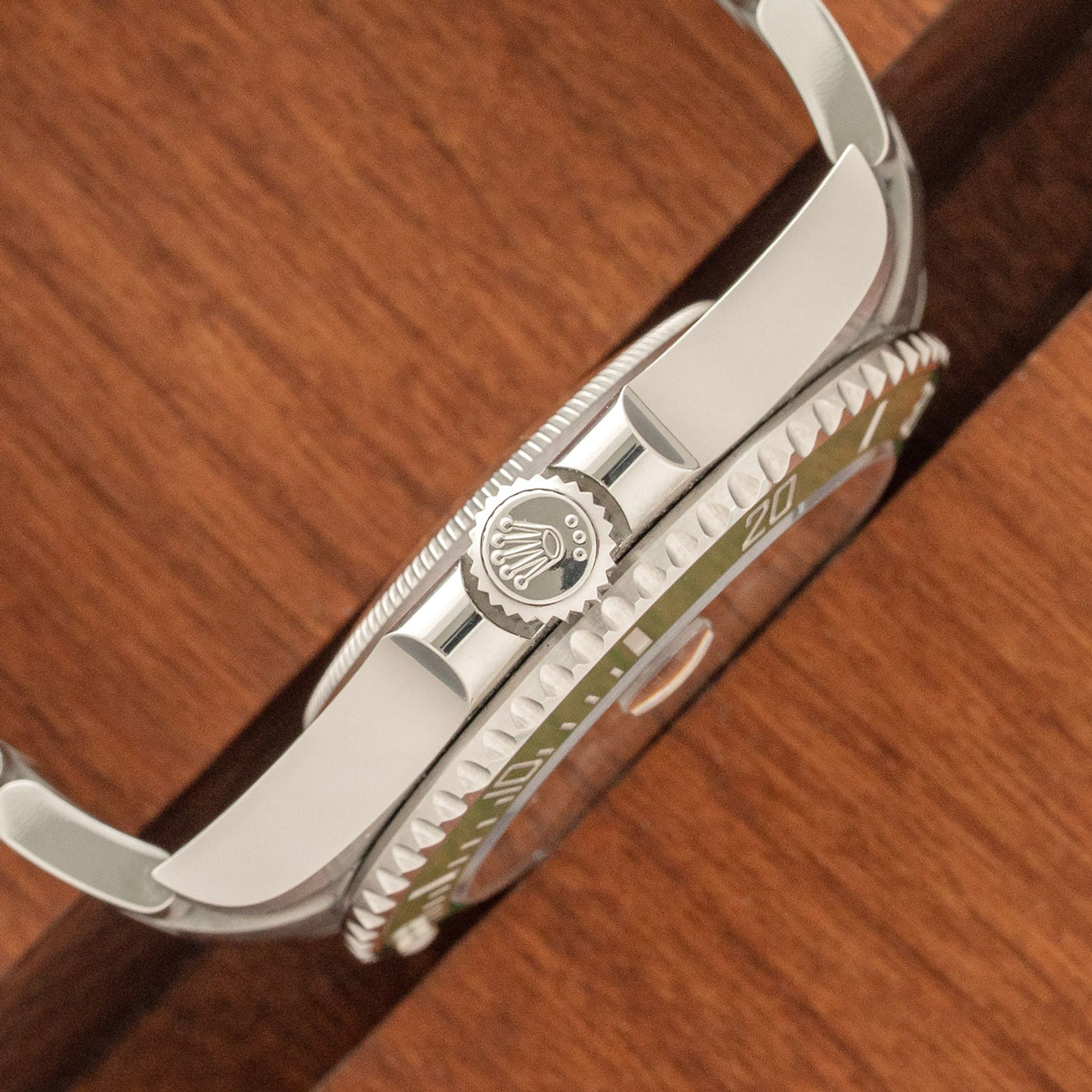 This example, circa '24 comes as a complete set from new down to its white serialized hang tag - a component that is not replaceable and often lost or not included. It has remained in fantastic and near mint condition with virtually no notable wear. For anyone who wants a highly practical daily driver, the updated green Sub is one of our favorite recommendations and a great nod to the past.