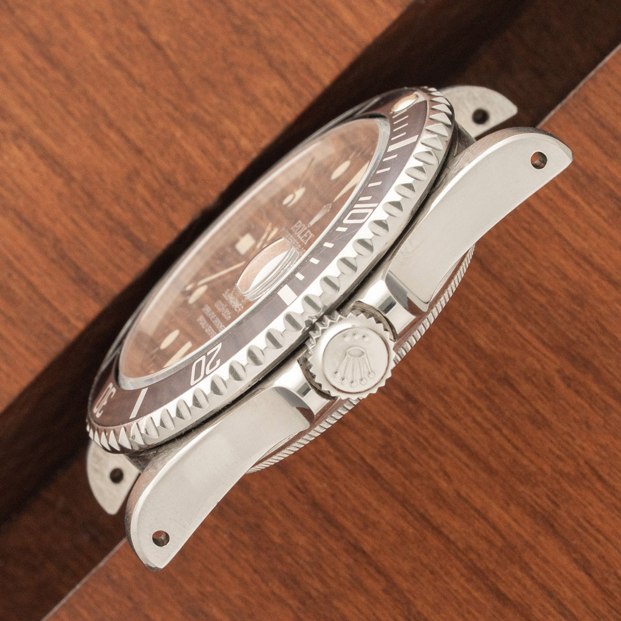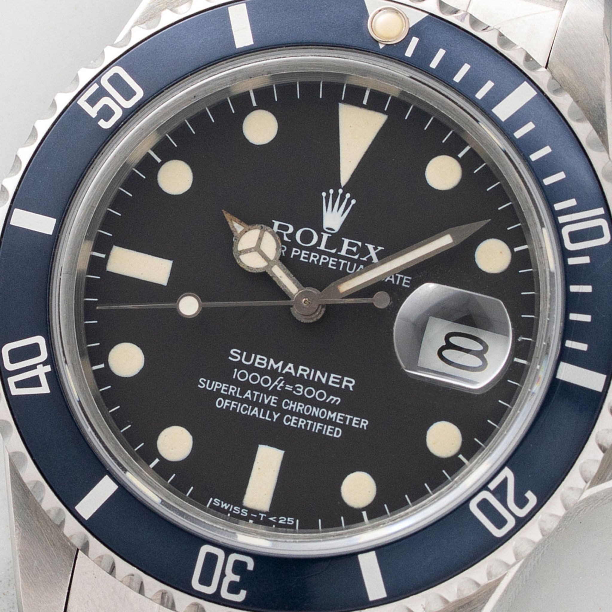 The ref. 16800 is a transitional era for the Sub as it housed the very last of the matte dials carried on from the ref. 1680. What makes this ref. more unique and neo-vintage is the presence of a sapphire crystal, which for some makes it the best of both worlds. This particular example, circa '84 is at the tail end of this period which only lasted for a couple of years. It remains in excellent condition with a mint dial, offering creamy lume and a gorgeous and well-preserved faded bezel insert with tones of blue and grey. The case has been recut and shows good dimensions with sharp lugs. The bracelet retains 11 links and will fit an approximate 7.75 inch wrist. For anyone looking for a beautiful vintage Sub to wear regularly, this is a very usable option.