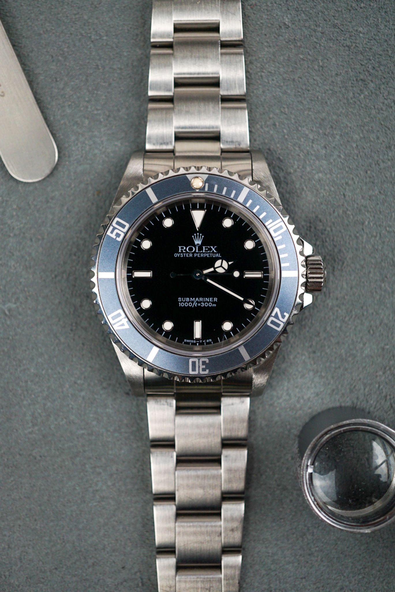 Stunning Rolex Submariner from ’96, featuring a beautifully faded blue insert that adds tons of character. Completely unpolished and freshly serviced. Now available! 🔪🔪