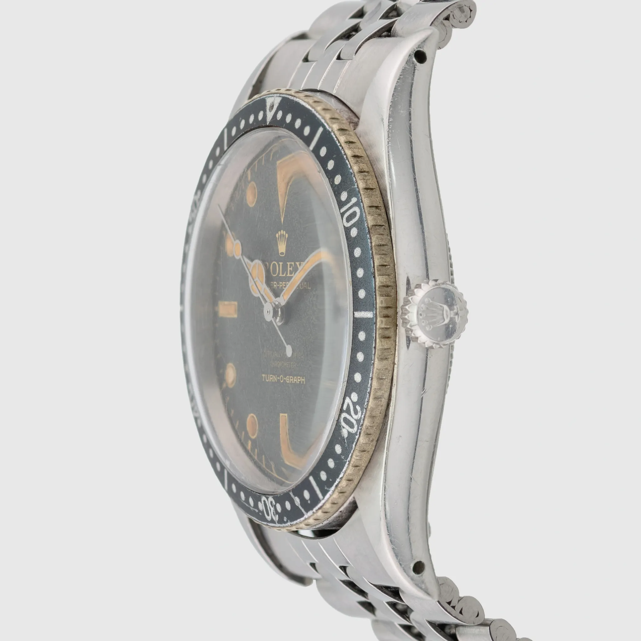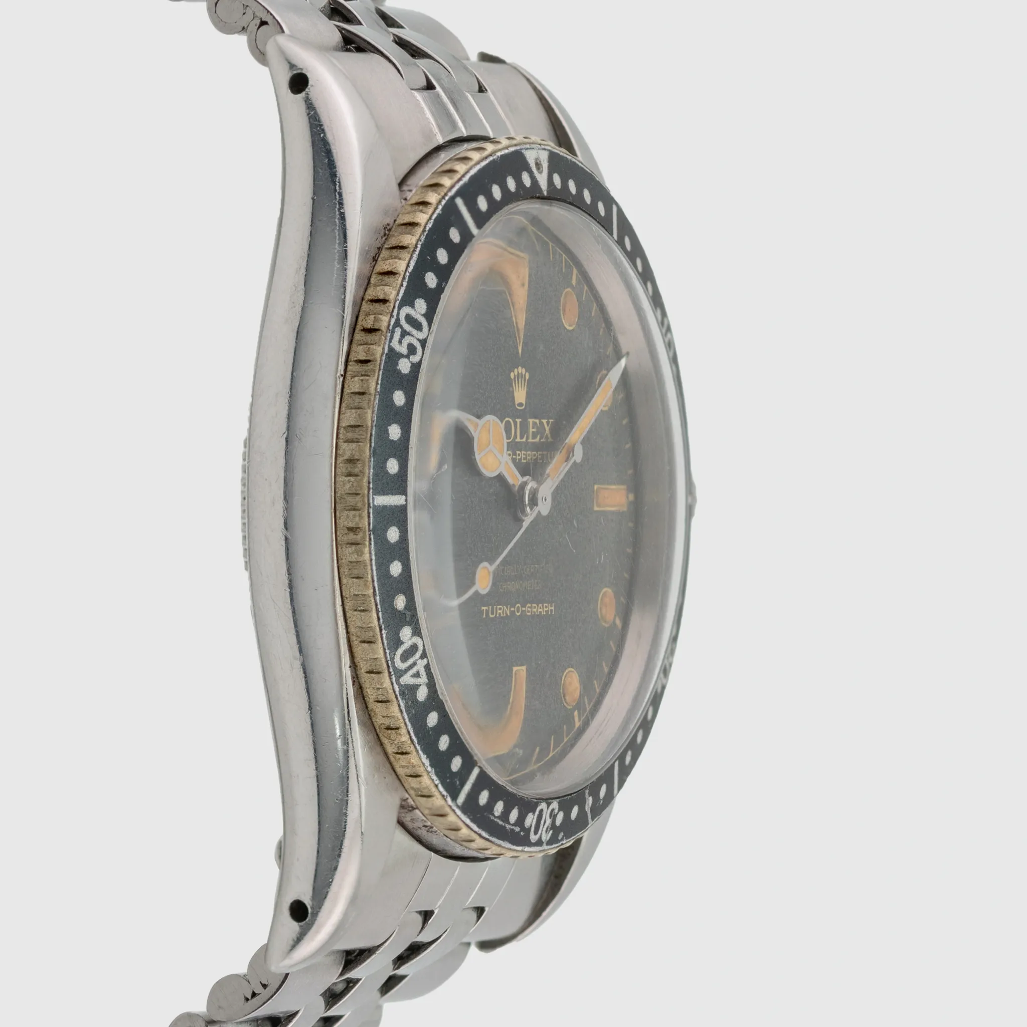 Dial: Very nice dial featuring the Turn o Graph Signature at 6 o clock. The radium luminous has turned to a pumpkin color and there is a loss of lume on the 8 marker. The remaining plots and hands seem to be original