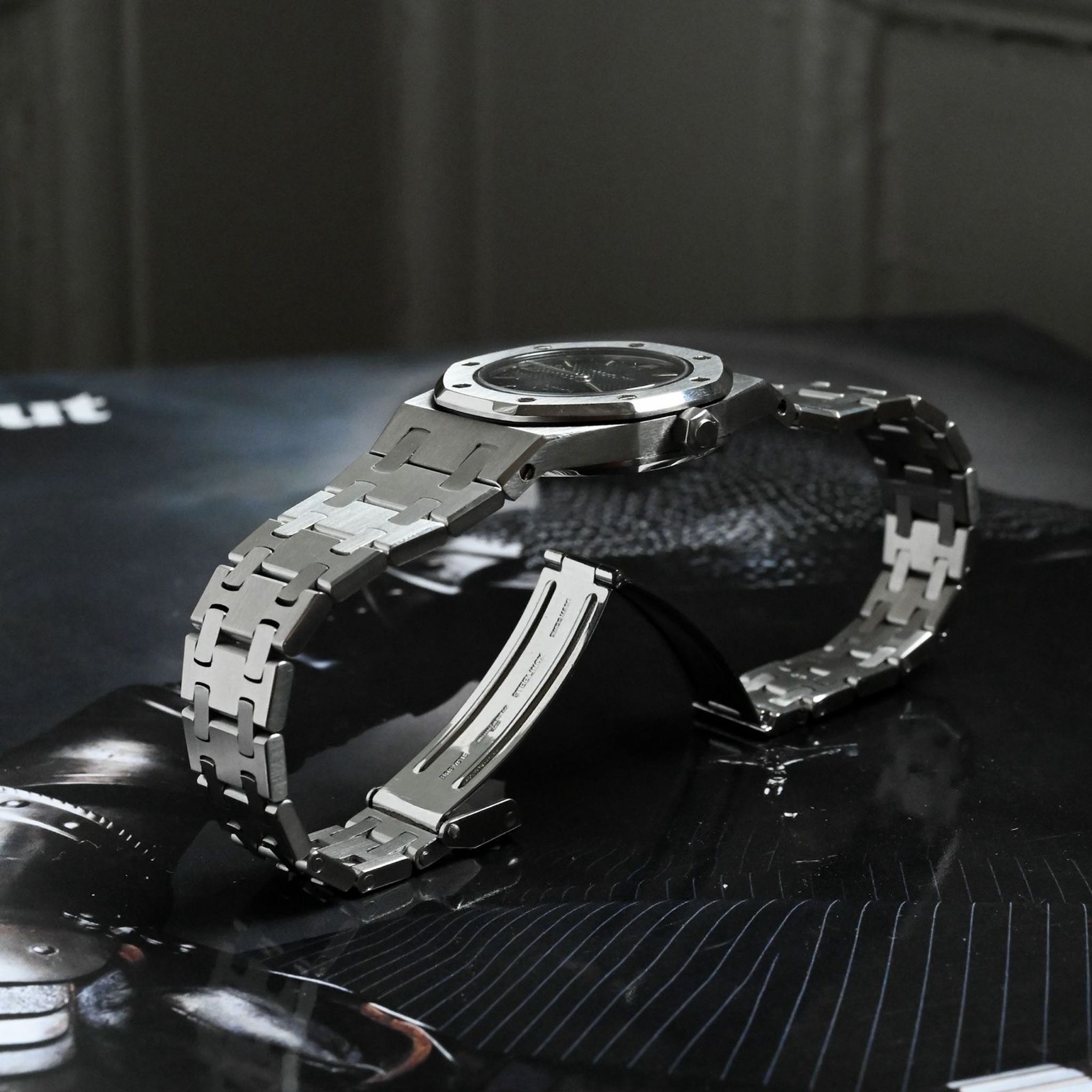 Parallel to the production of the iconic Royal Oak, the 8638ST was the second reference produced from 1976 onwards; a scaled-down version of the 5402 with a 29mm case and automatic movement. Named “Royal Oak II”, some versions even bear this engraving on the back.