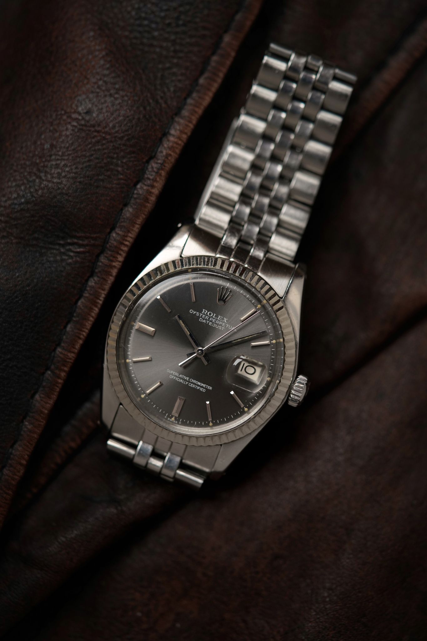 Your most requested datejust: the Rolex reference 1601 with the most desirable pie pan Grey dial in all of its splendour.