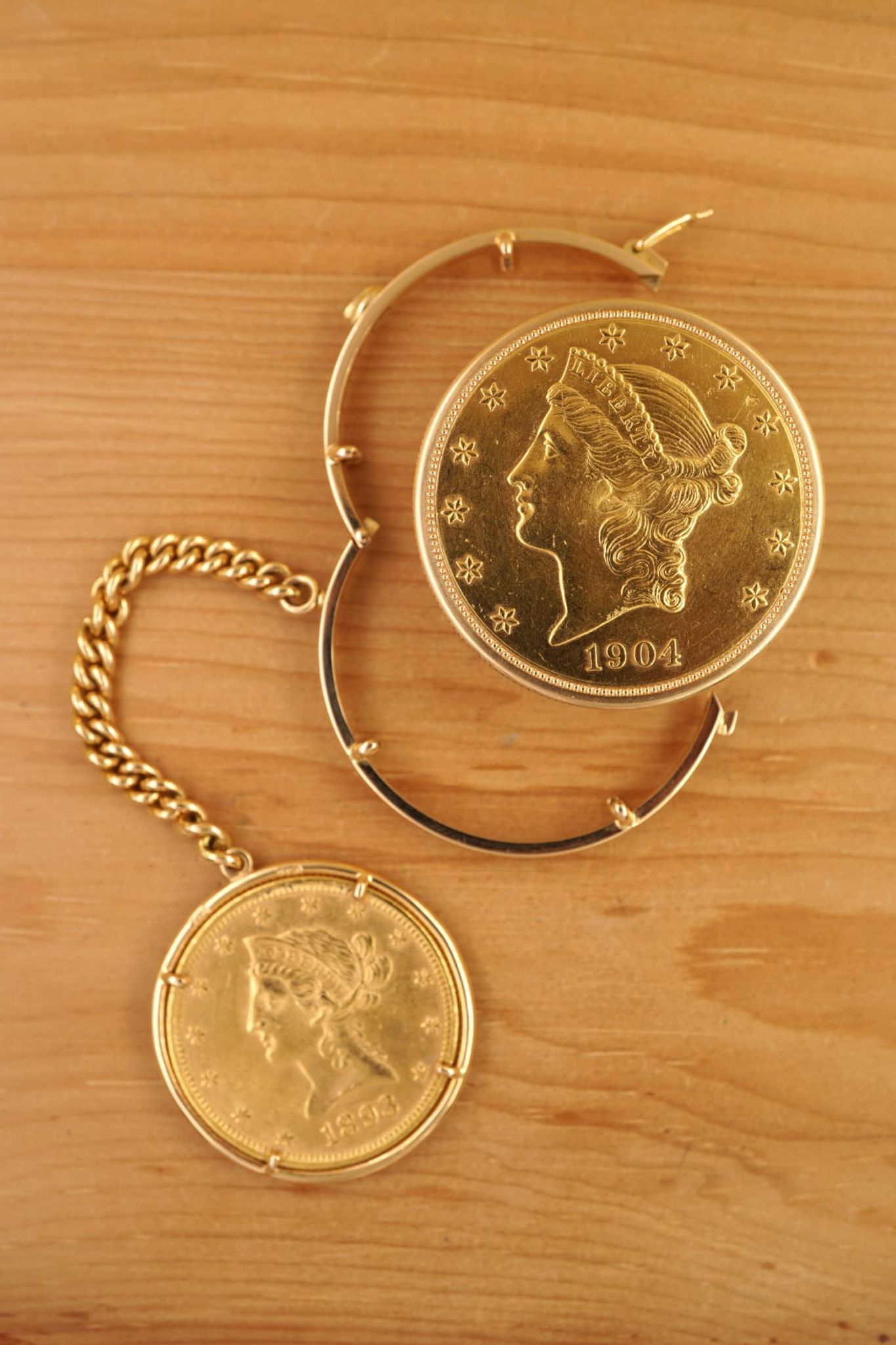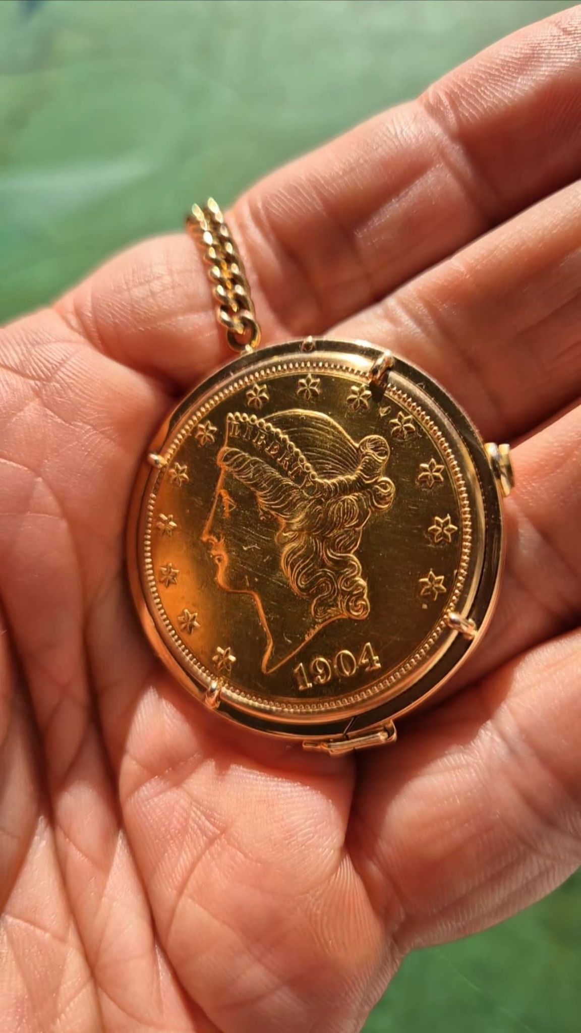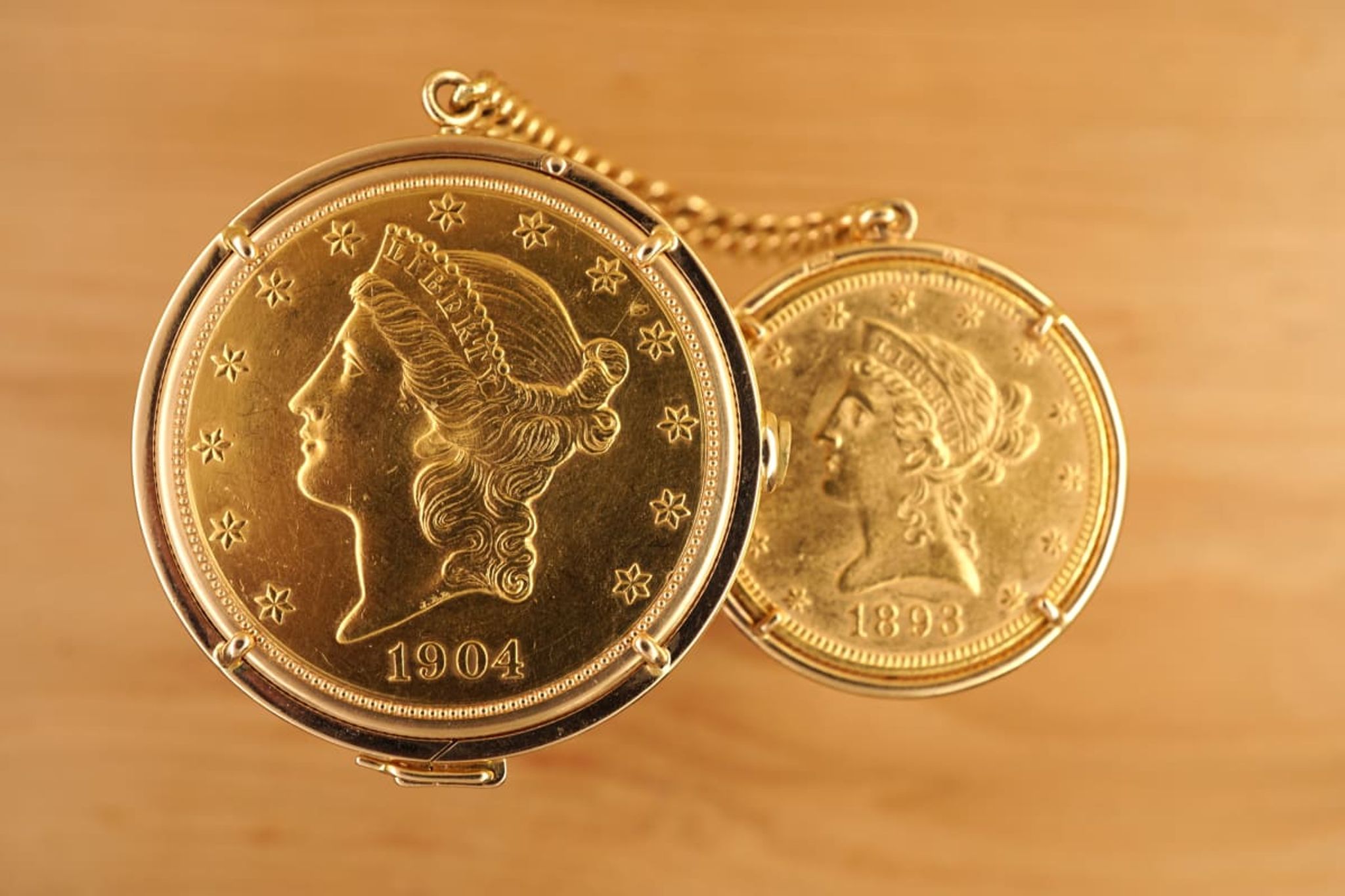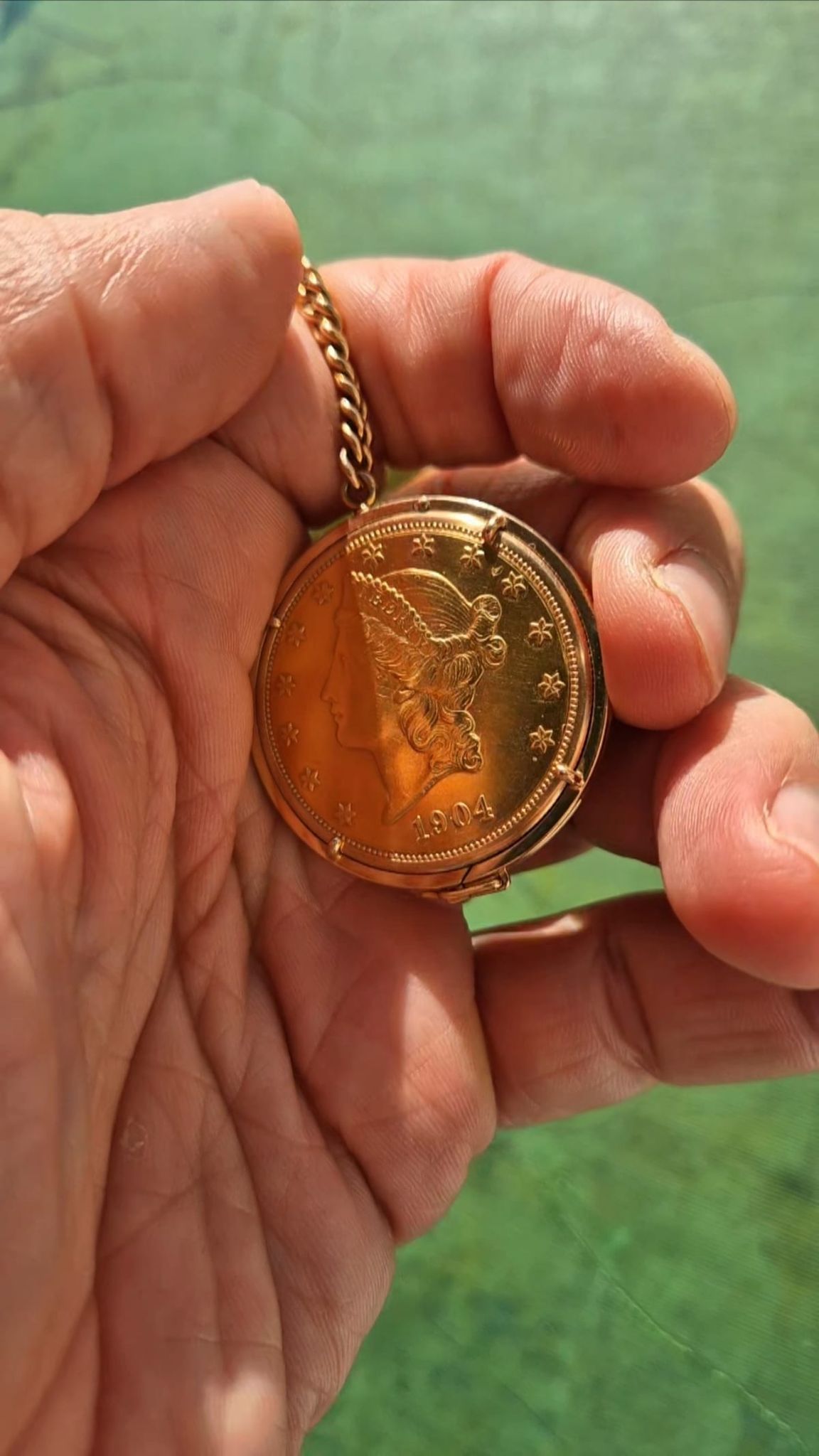 Ultra-Thin -- Piagets DNA since 1950s until today. The 20-USD coin-watch was one of Piagets masterpieces: made in 1972 or 1973, encased in a Liberty-goldcoin from 1904, which has a hidden pusher to open the lid and reveal the golden-dial under a flawless crystal and above the reliable- and precise-working cal9P. And it was all made in-house by the outstanding manufacturer from La-Cote-Aux-Fees: the case and the movement, the dial and the chain-connected counterweight with a 10-Dollar coin from 1893.