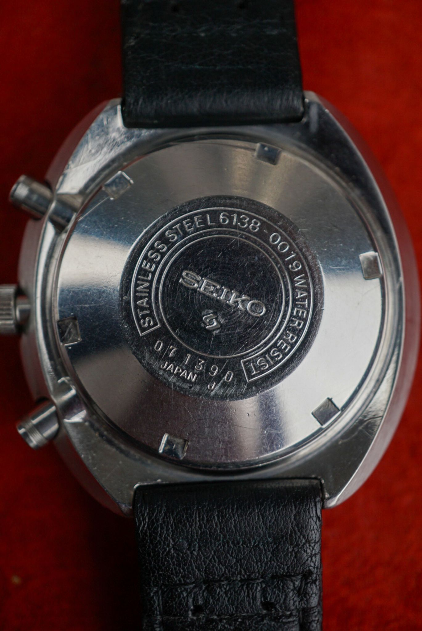 The stainless steel case has been lightly polished in the past and remains in excellent overall condition, with no major dings or deep scratches. It’s paired with a generic leather strap that complements the insert's color nicely and fits up to an 8-inch wrist.