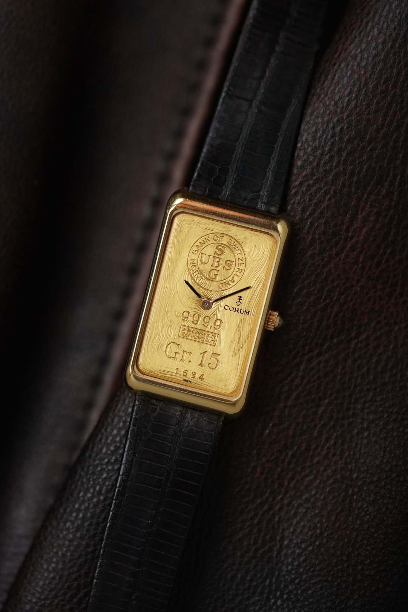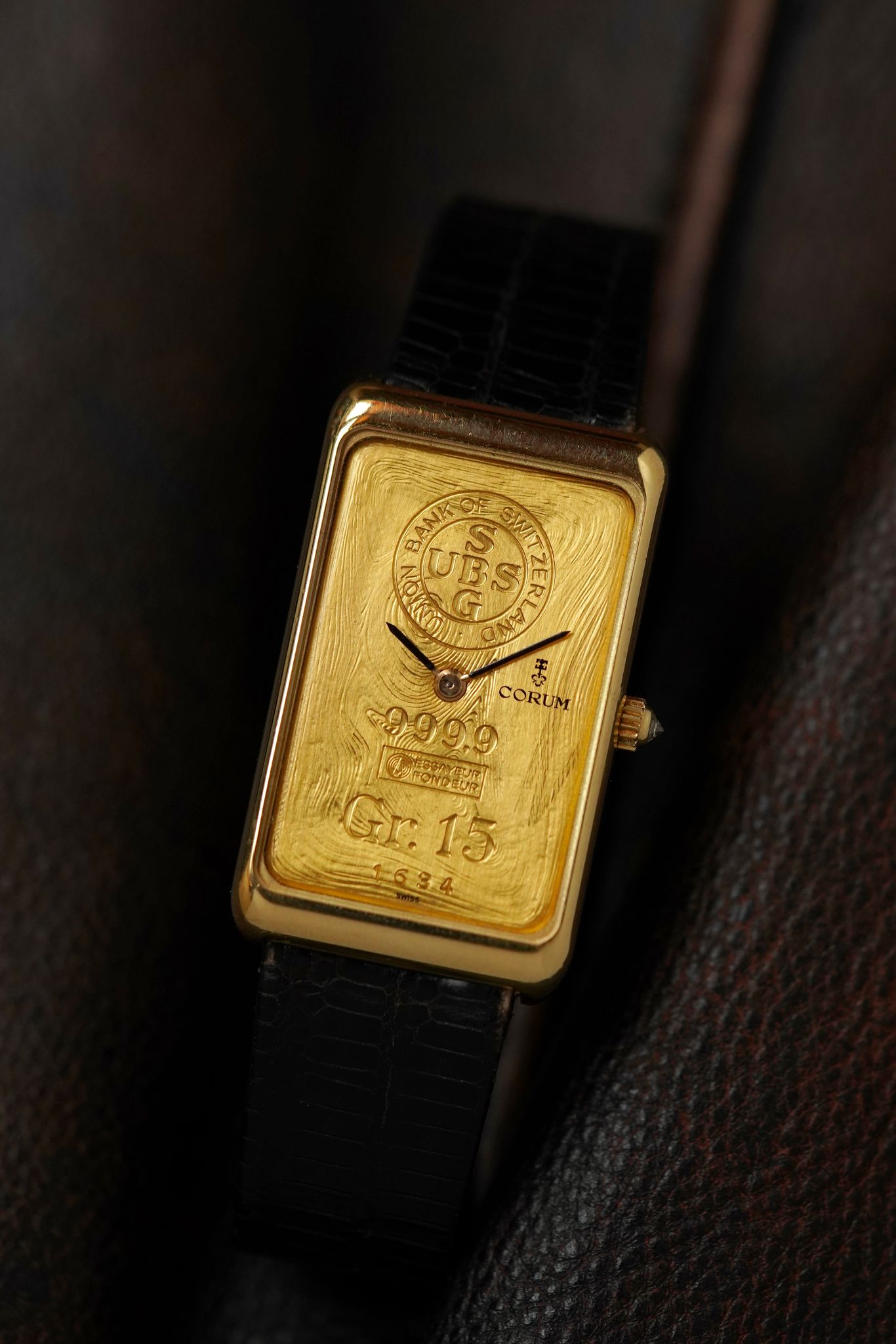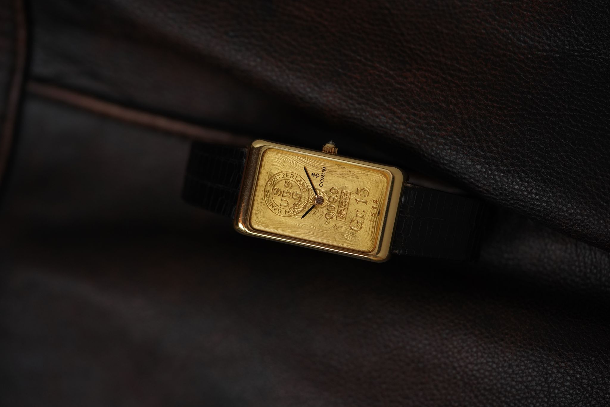 Very rare and oversize solid gold ingot watch by Corum.