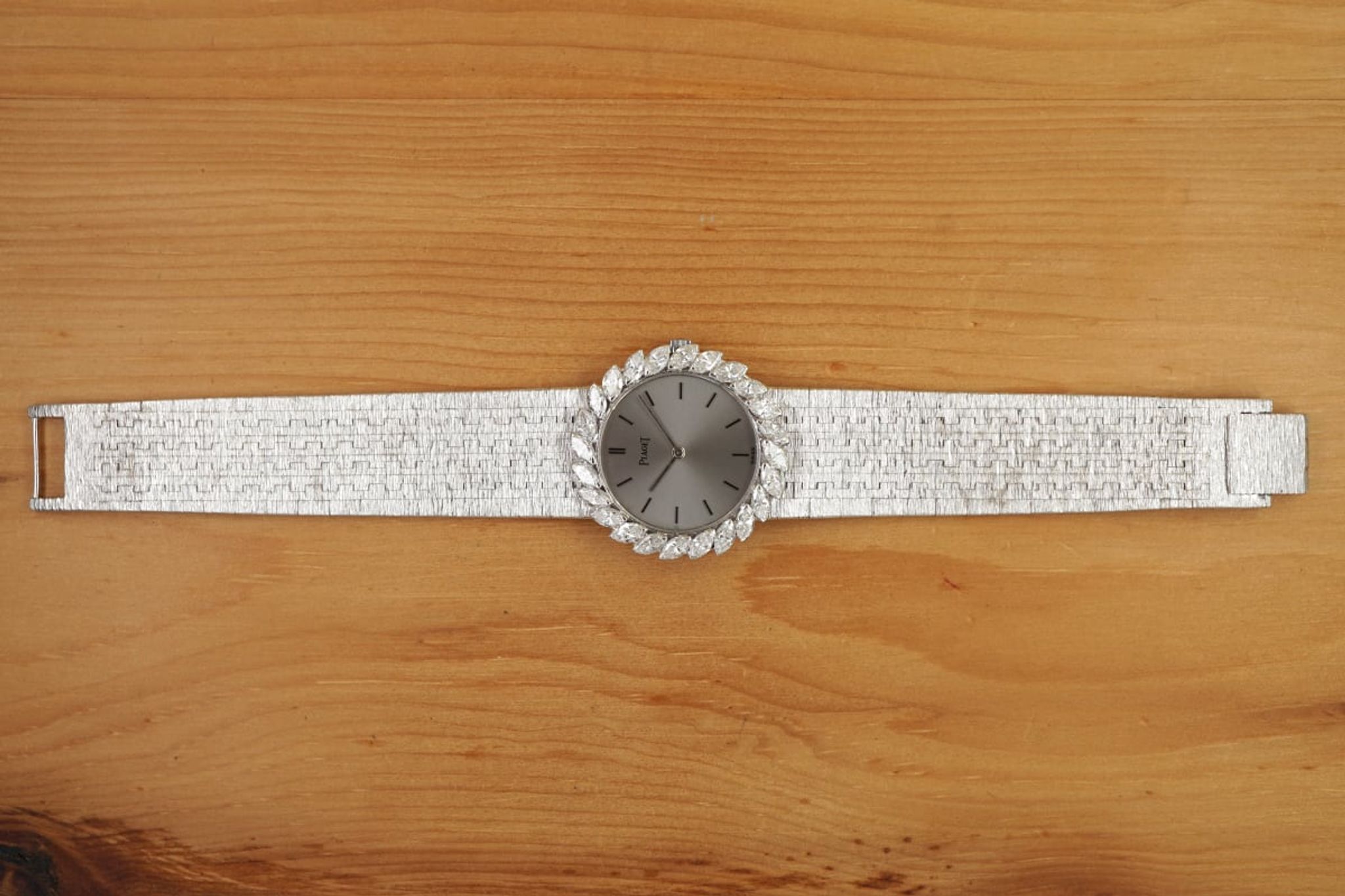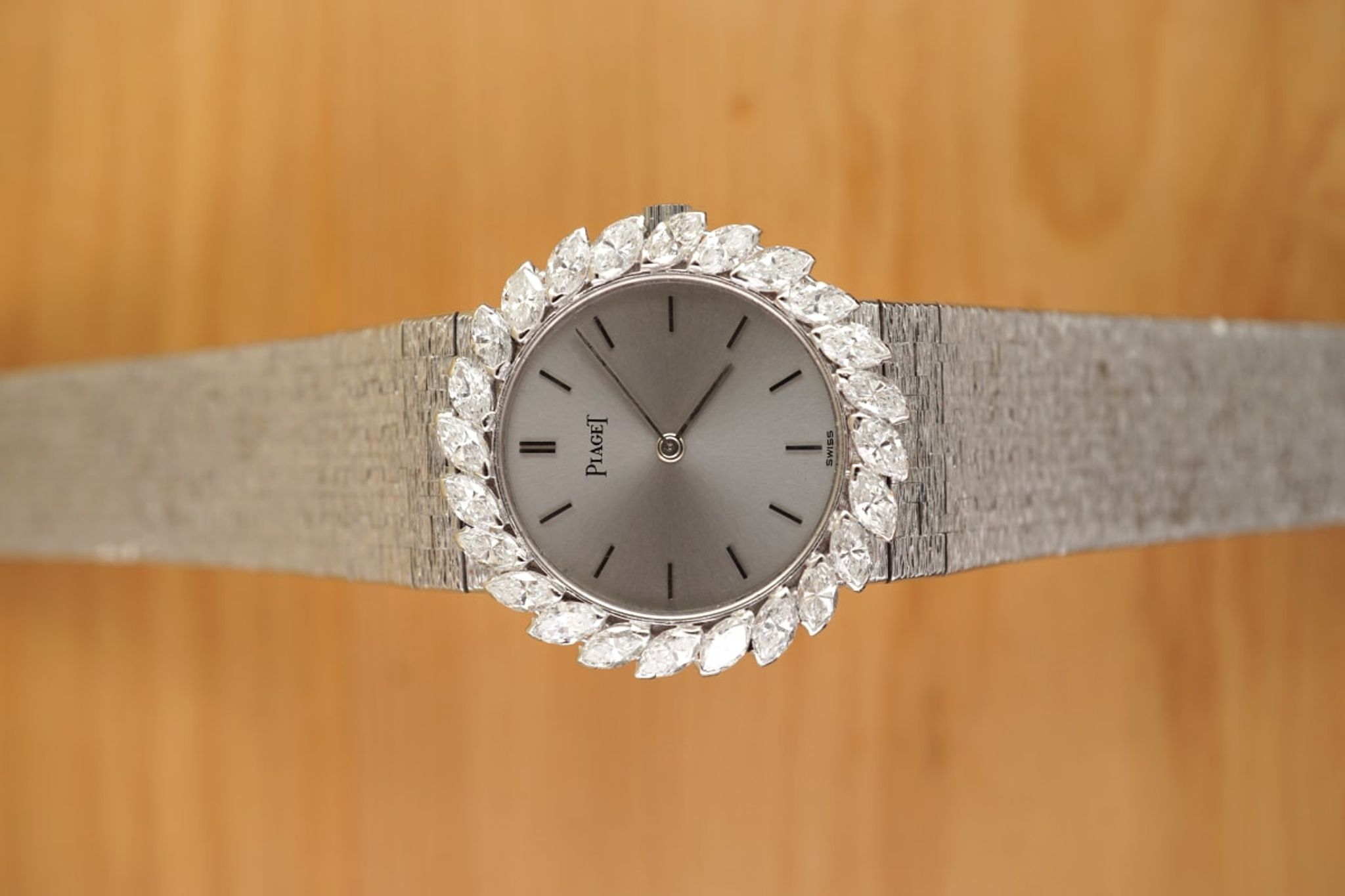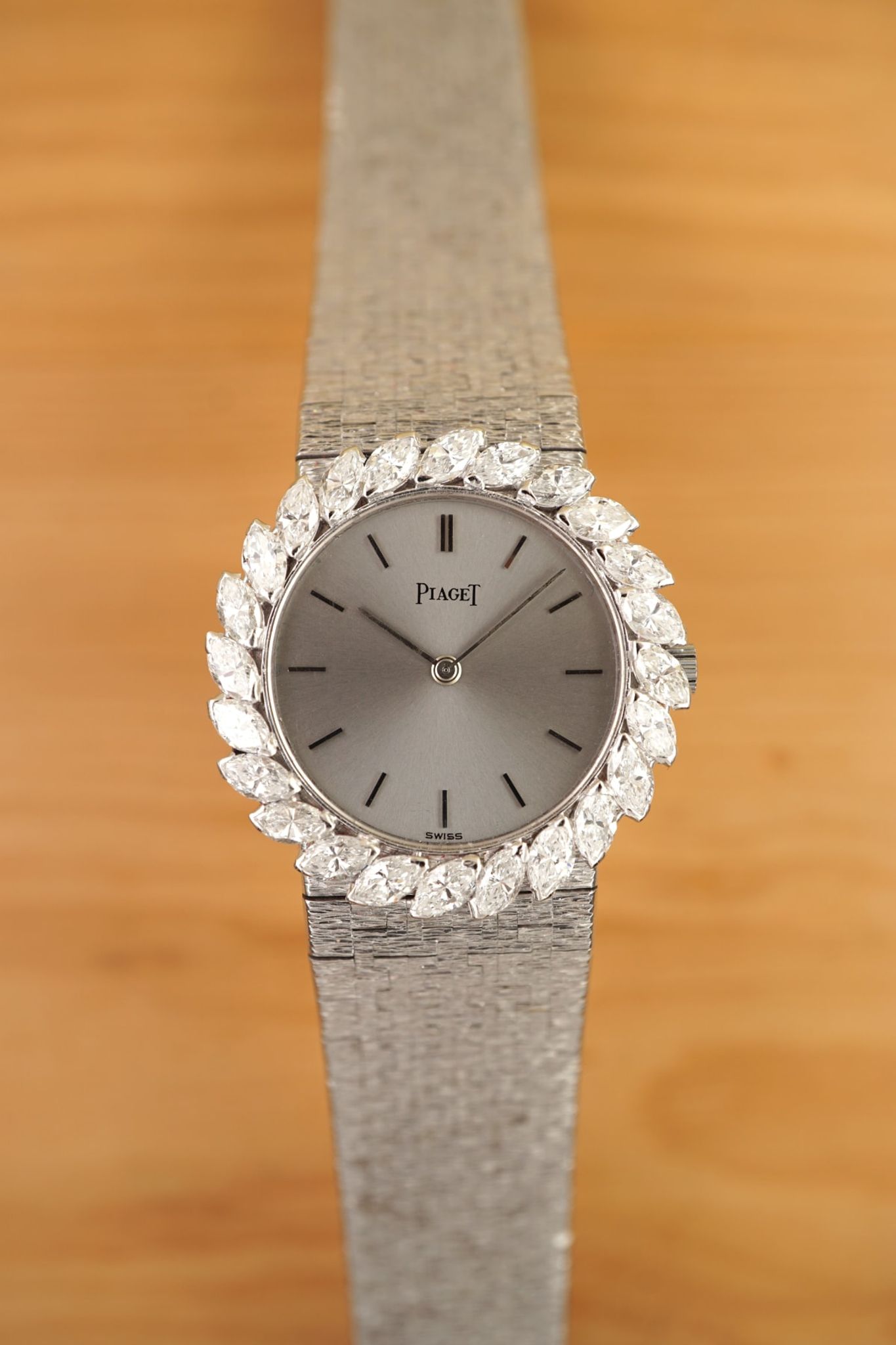 Made in 1965 and still sparkling like the sun itself: approx 3 carats of high class diamonds set around the beautiful reflective dial fitting an up to 160mm-wrist.
