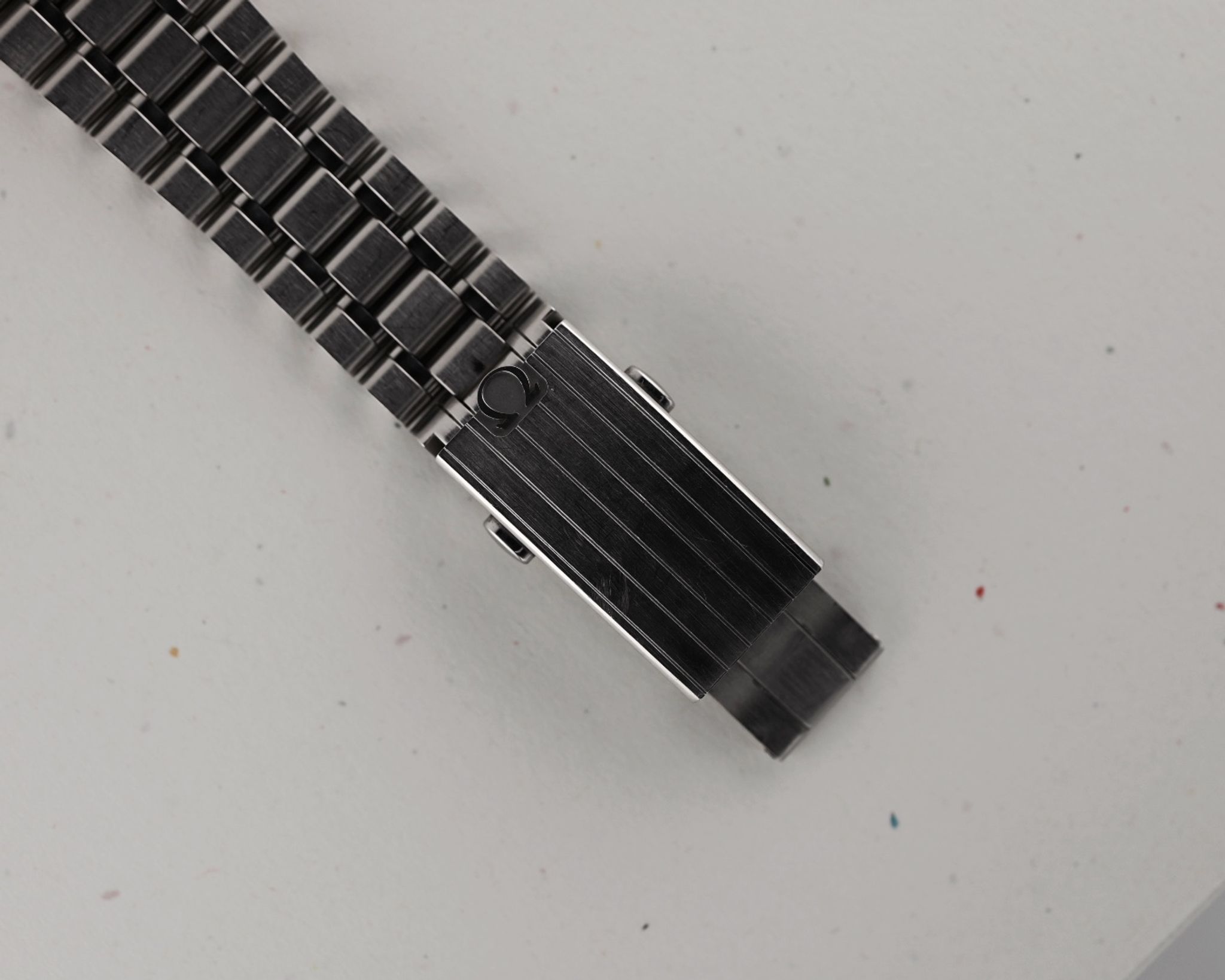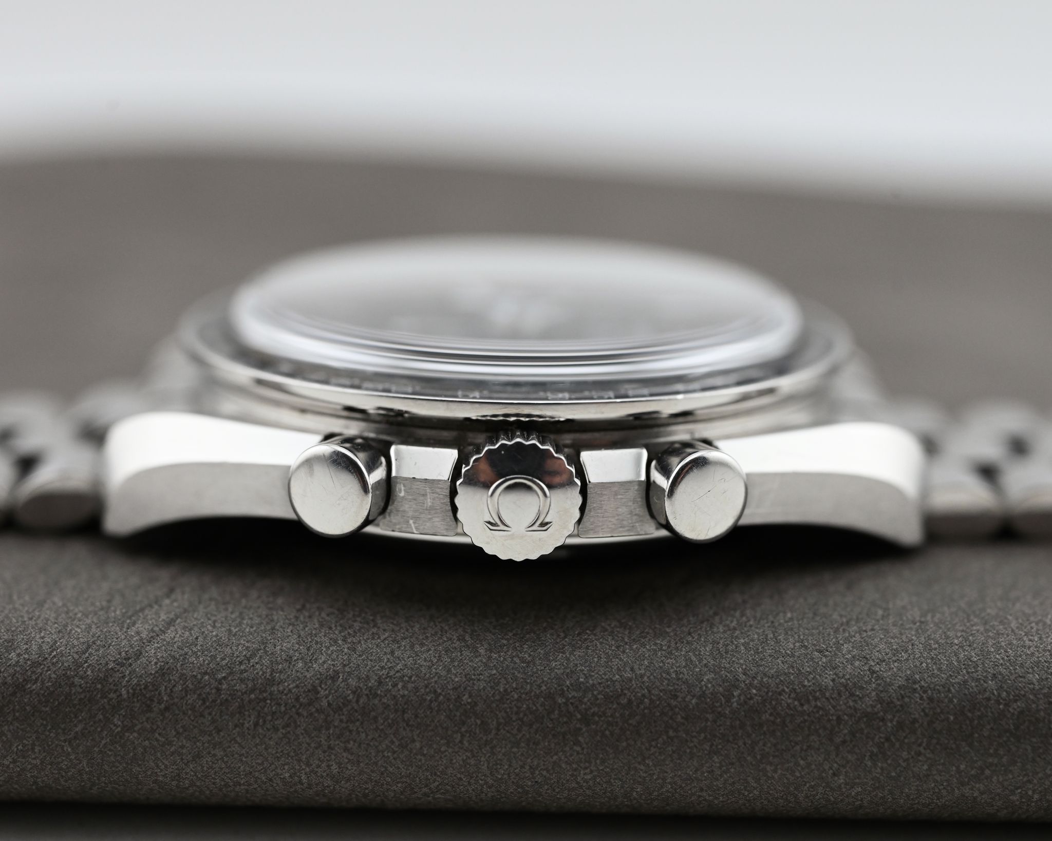 Dial: The stepped matte black dial features an applied Omega log and the famous dot over ninety bezel. The dial and hands are free from any defects.