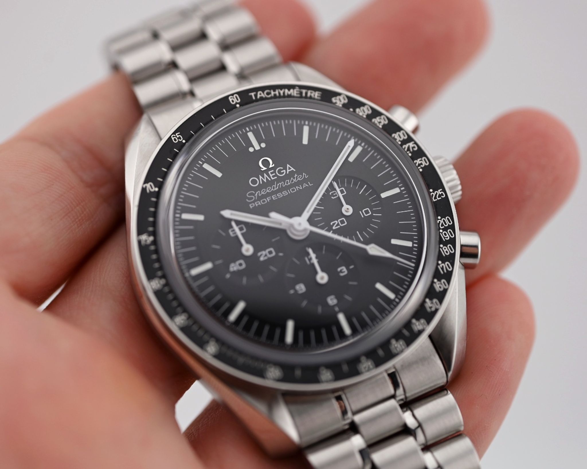 Reference: 310.30.42.50.01.002 Speedmaster Moonwatch Professional, Steel on Steel bracelet, MSRP: $8,000.