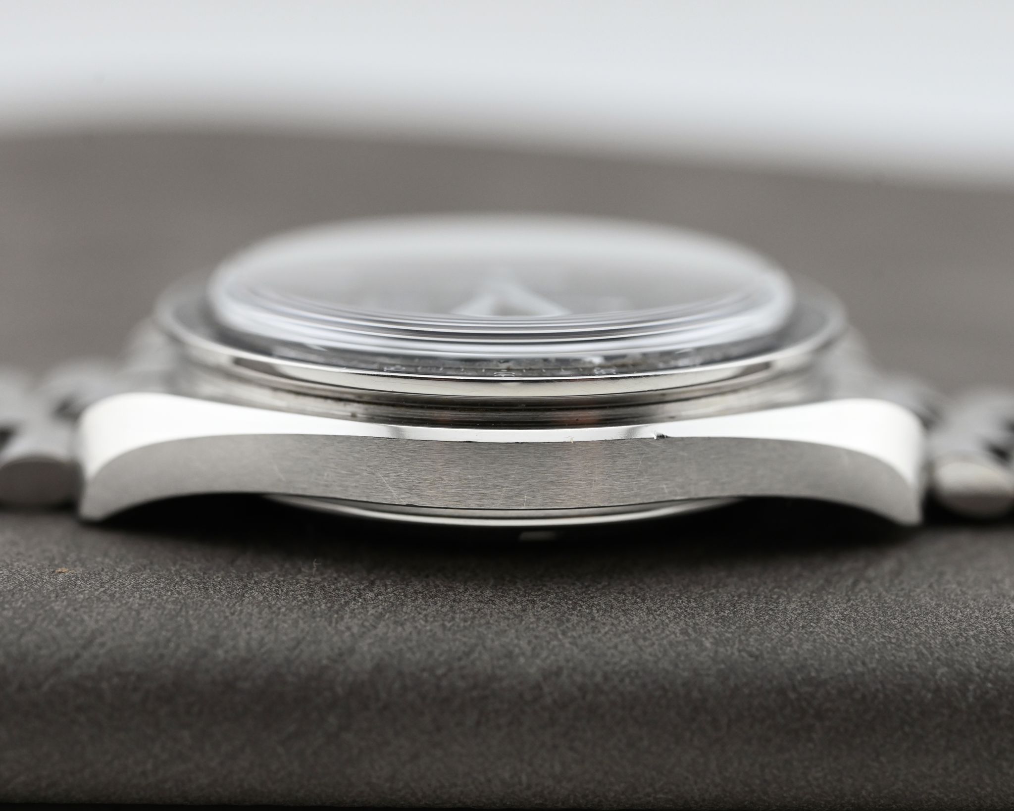 Case: The 42 x 47.5 x 13.2 mm stainless steel case is in nice overall condition, showing normal surface scratches from wear. The backsides of the lugs exhibit minor scratches from strap changes, all engravings are clear and crisp. There is a surface scratch on the polished section of the 1 o'clock lug that cannot be felt and is only visible at certain angles due to it being on the polished surface. This is reflected in the photos below and I imagine it could be easily polished out at the buyer's discretion. There are also two very small dings in the 9 o'clock side of the case, that are again really only visible when looking for them at certain angles. The clasp blade shows normal desk wear surface swirls and the bracelet is fully linked.