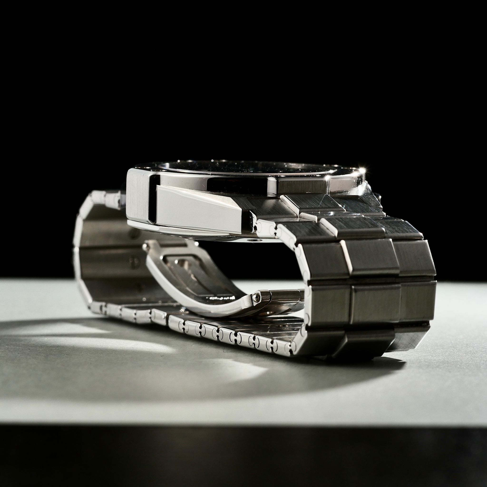 The result was the St. Moritz, Chopard’s first-ever steel sports watch. Its design was an uneven octagon; adorned with eight screws that weren’t just for show. These screws served a purpose, securing a gasket beneath the bezel to achieve 30 meters of water resistance.
