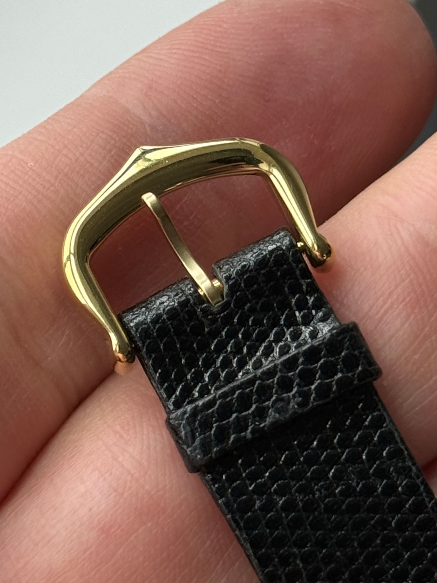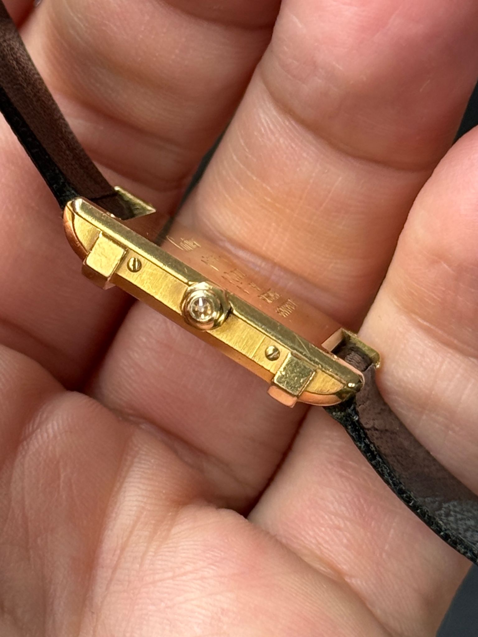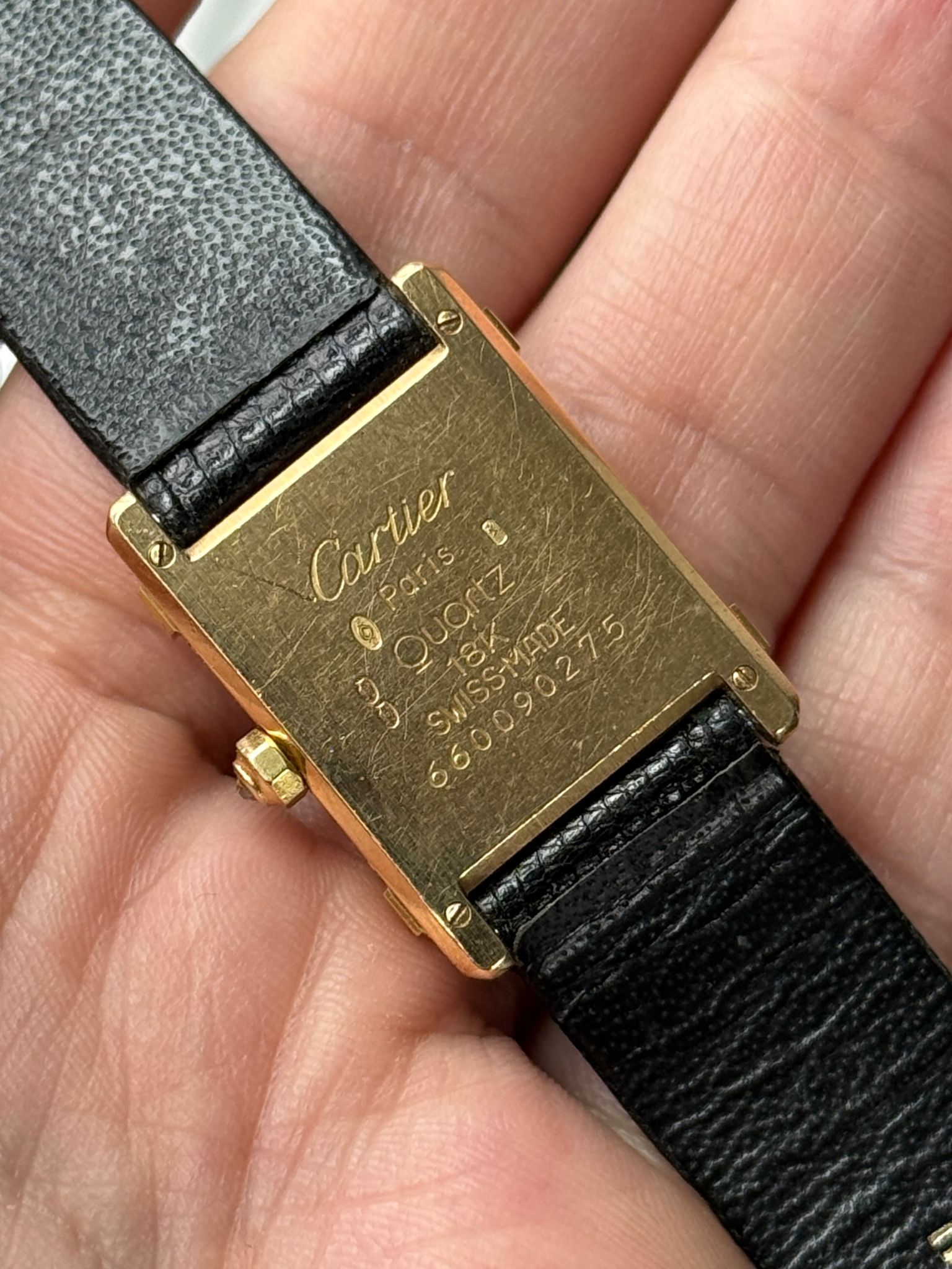 1990s Cartier Tank Chinoise with factory Cartier diamond case and crown. Nice unpolished condition with perfect dial. Authentic Cartier gold-plated tang buckle and Cartier strap. Any marks in photos are on the crystal only. Quartz movement and hidden signature at 10 o’clock.