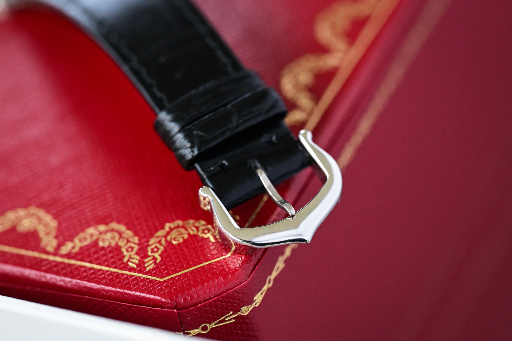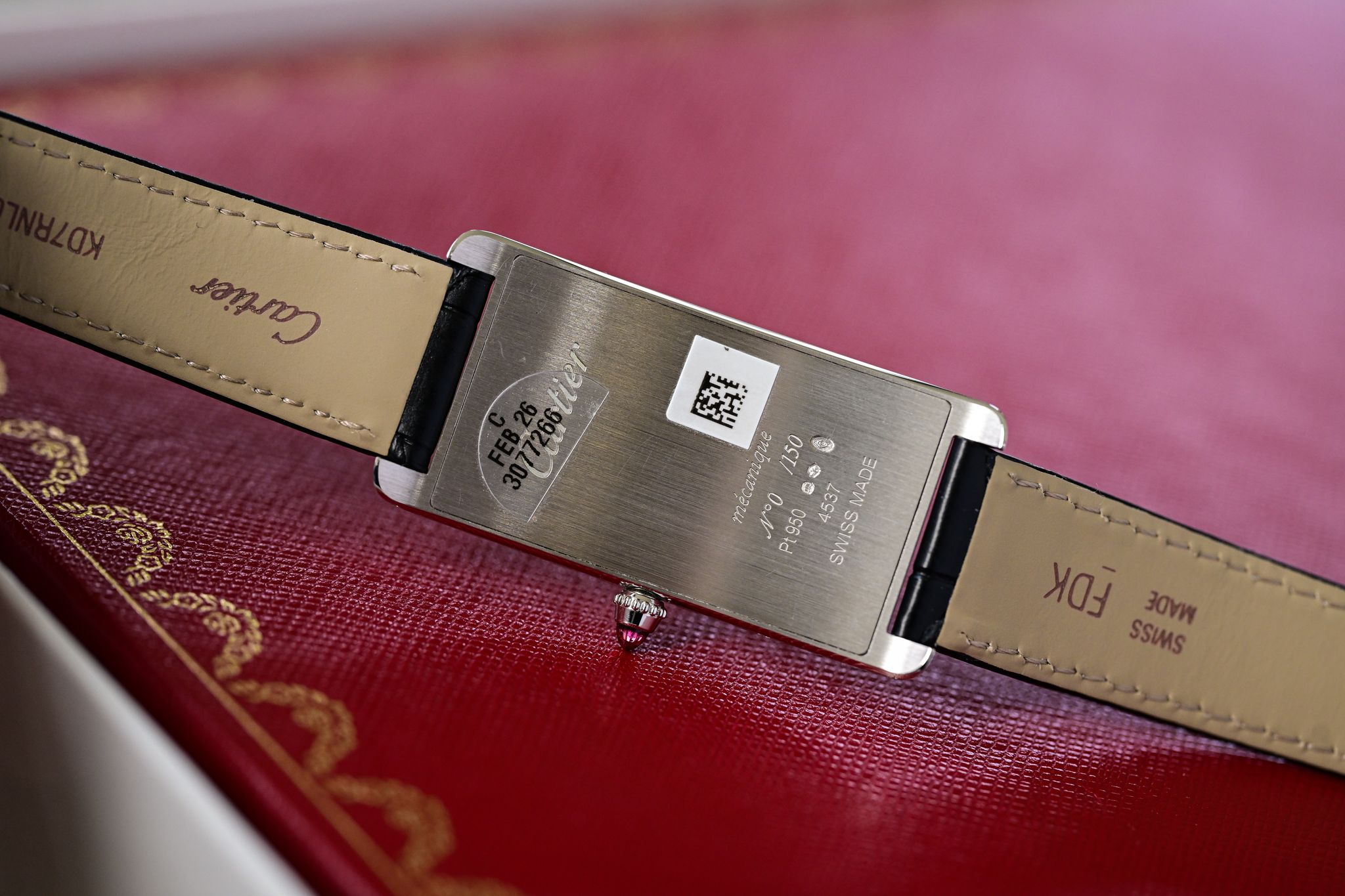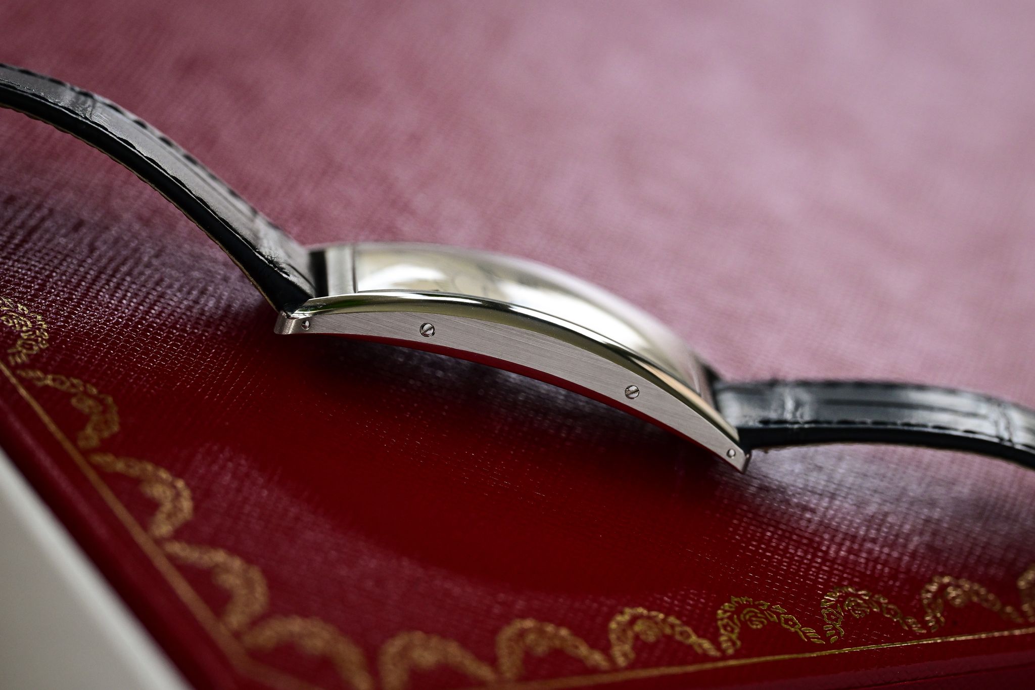 A limited edition Cartier Tank Cintrée Extra Plate in Platinum, released in 2023 to commemorate the 100th Anniversary of this iconic model!