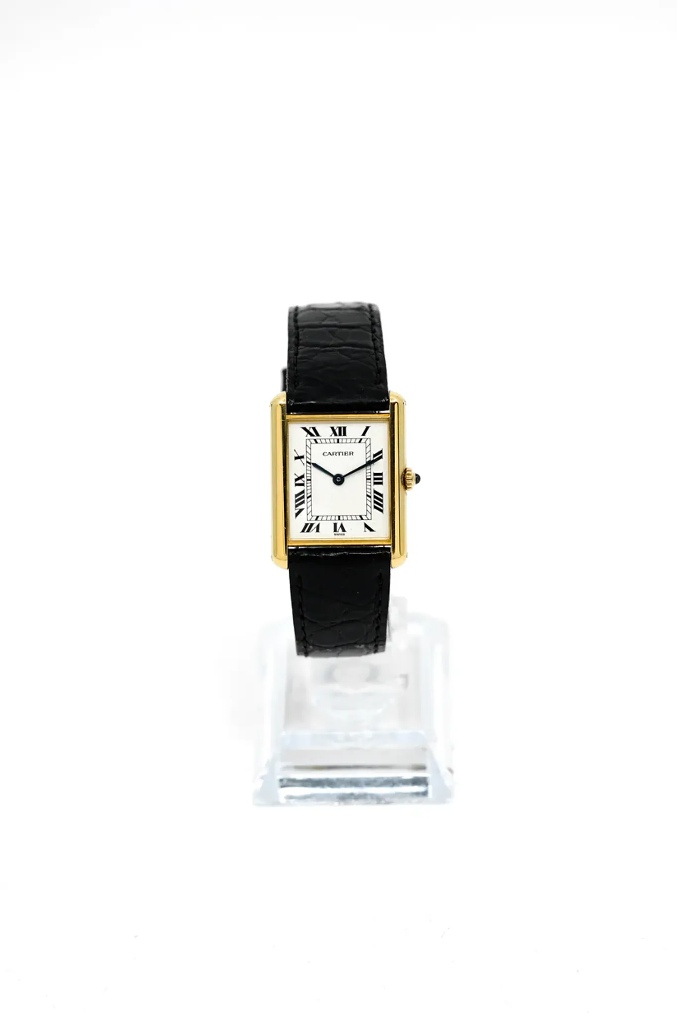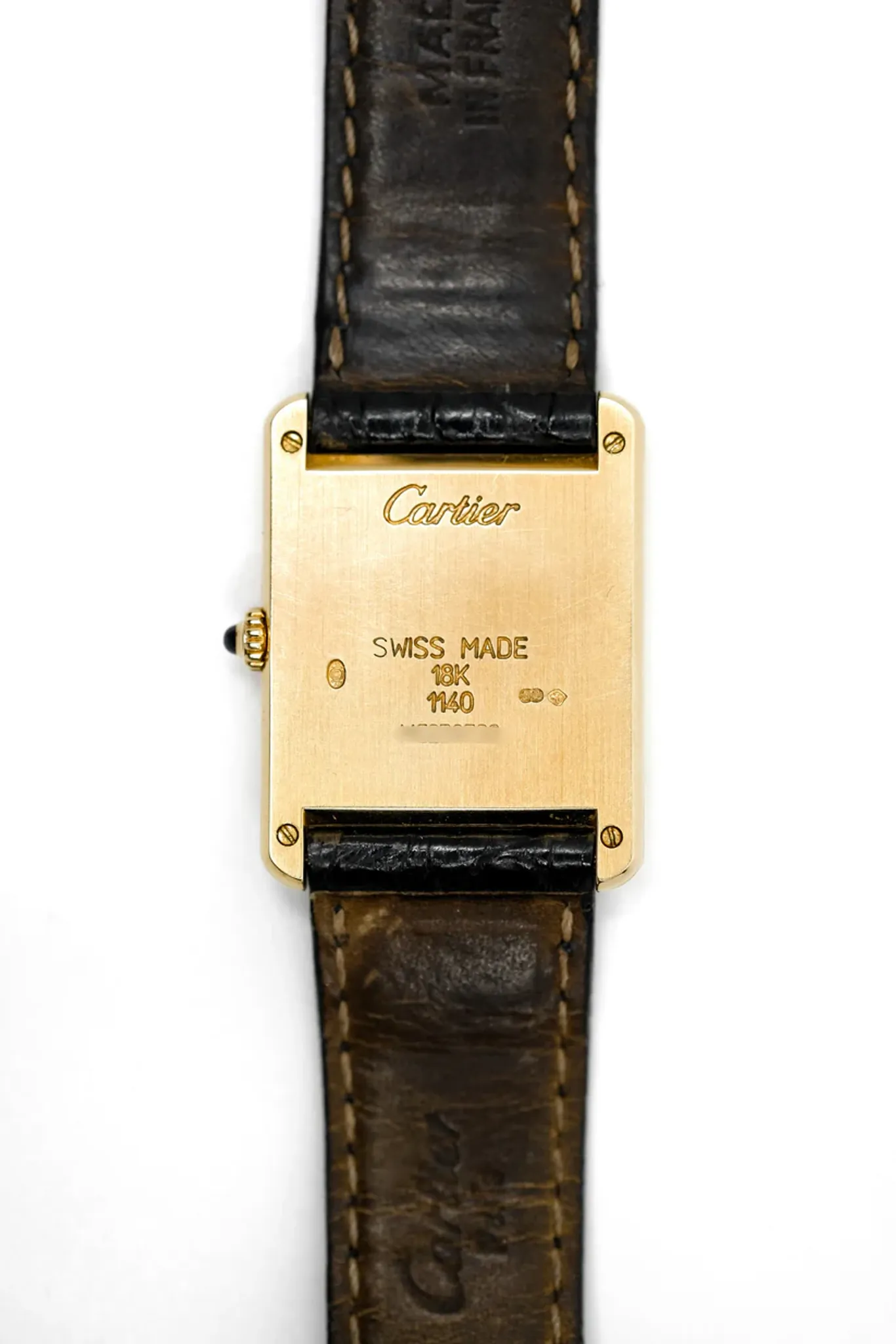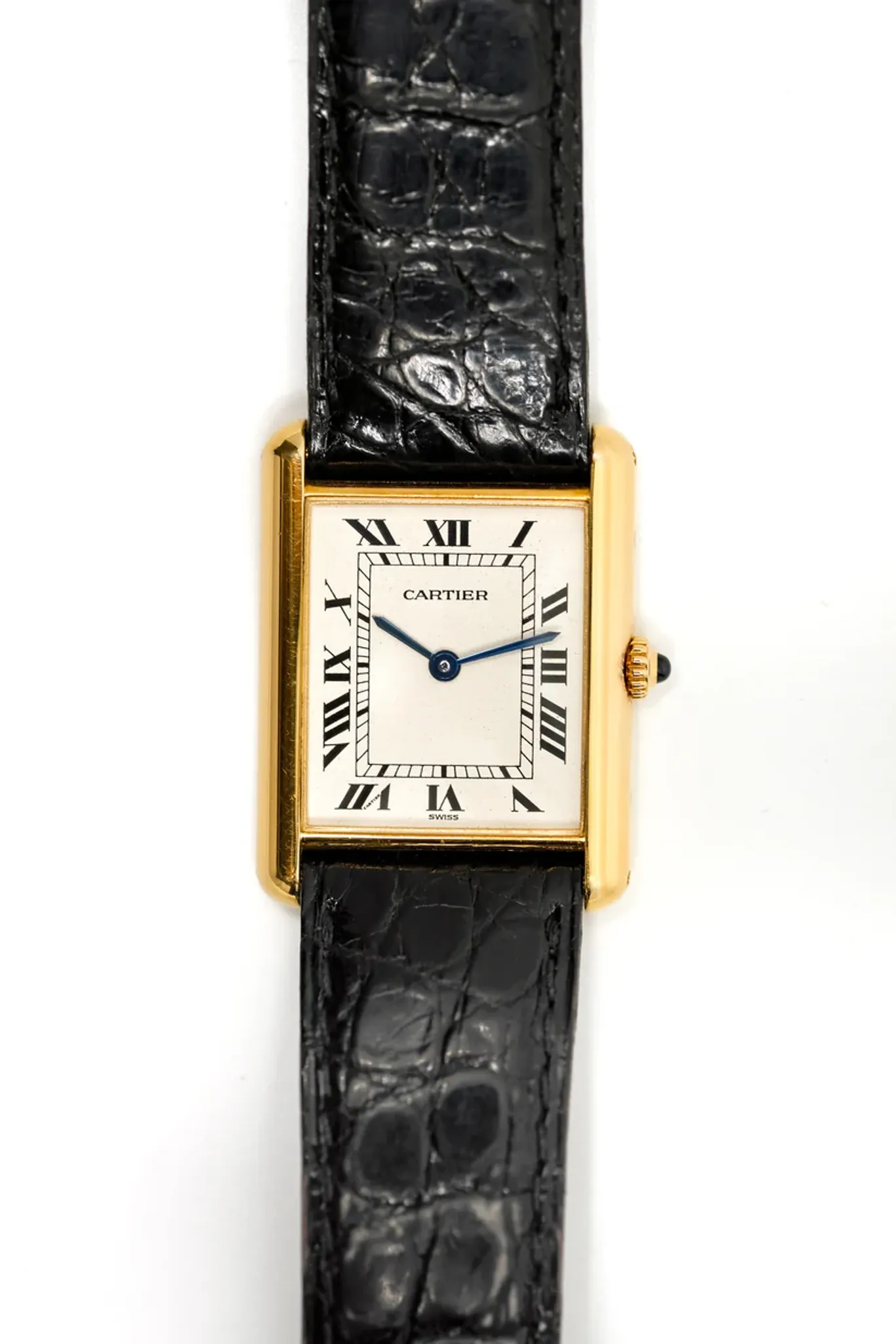 This is the classic model, reference 1140, with a very practical quartz movement. A yellow gold watch with its signed yellow gold strap and pin buckle. This version of the Tank Louis, originally created for a man's wrist, is now perfectly unisex.