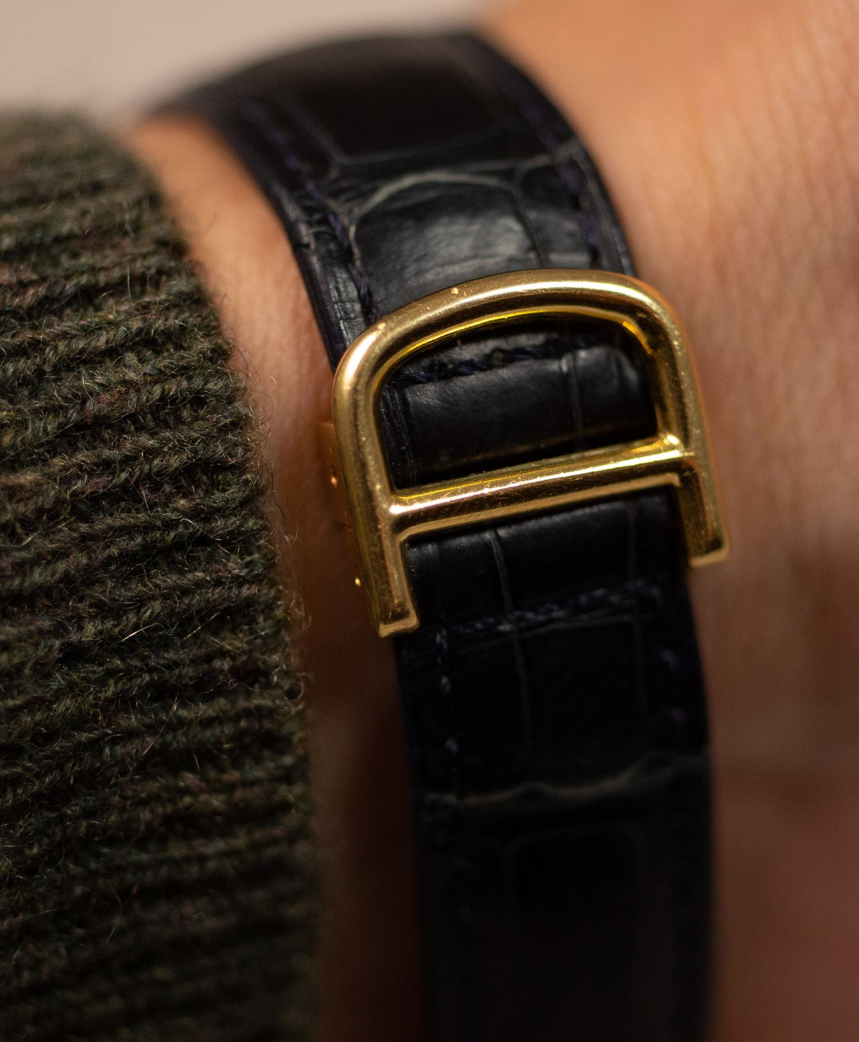 This is a lovely Cartier Tank Louis reference 78086 with a mechanical movement. The Paris dial is quite attractive with hairlines only visible at the loupe level. The case is well preserved with clear serials. The watch also has its original deployant and is stunning on the wrist!