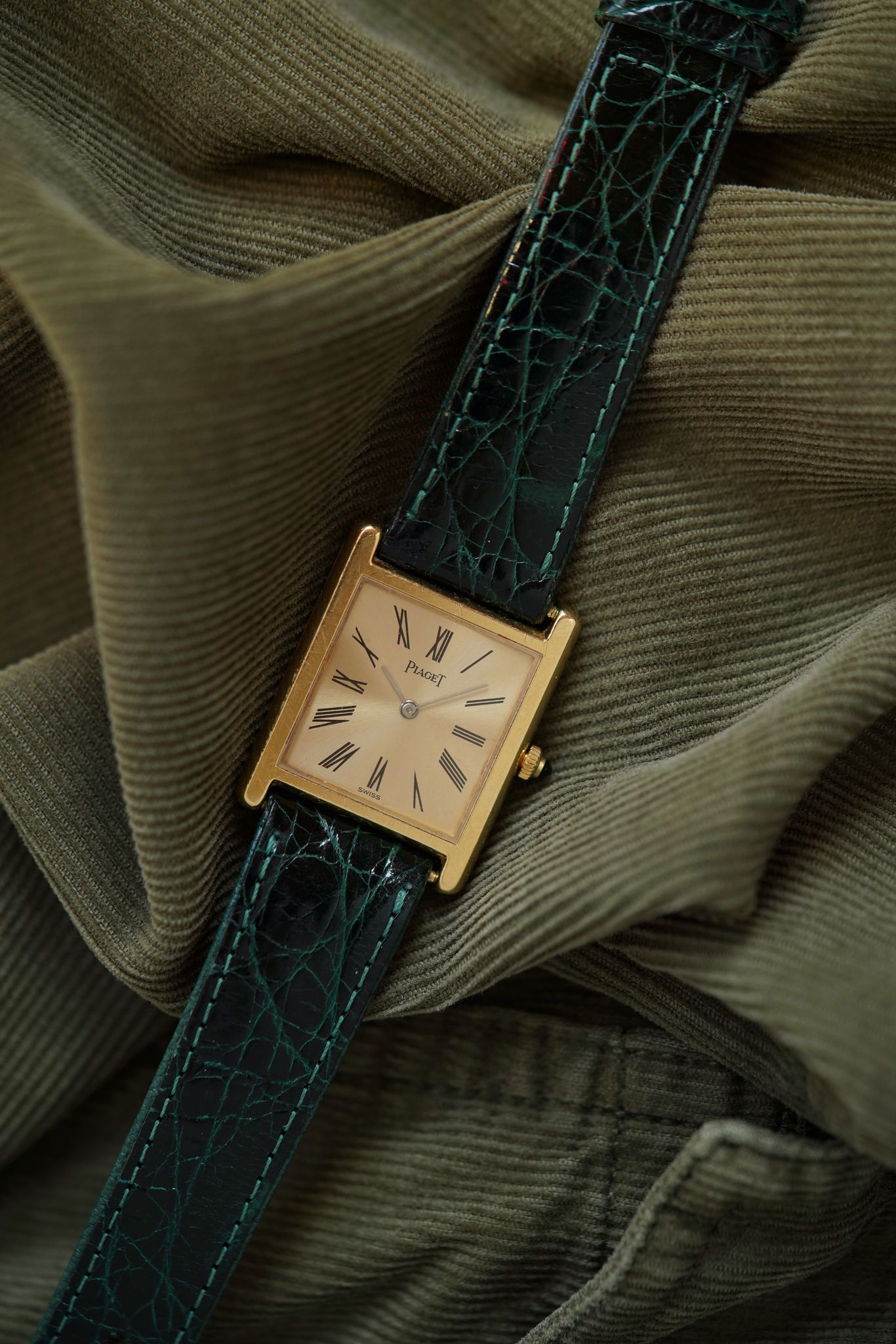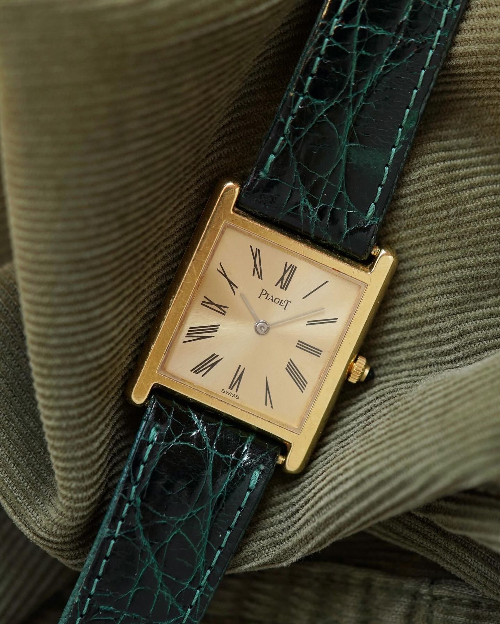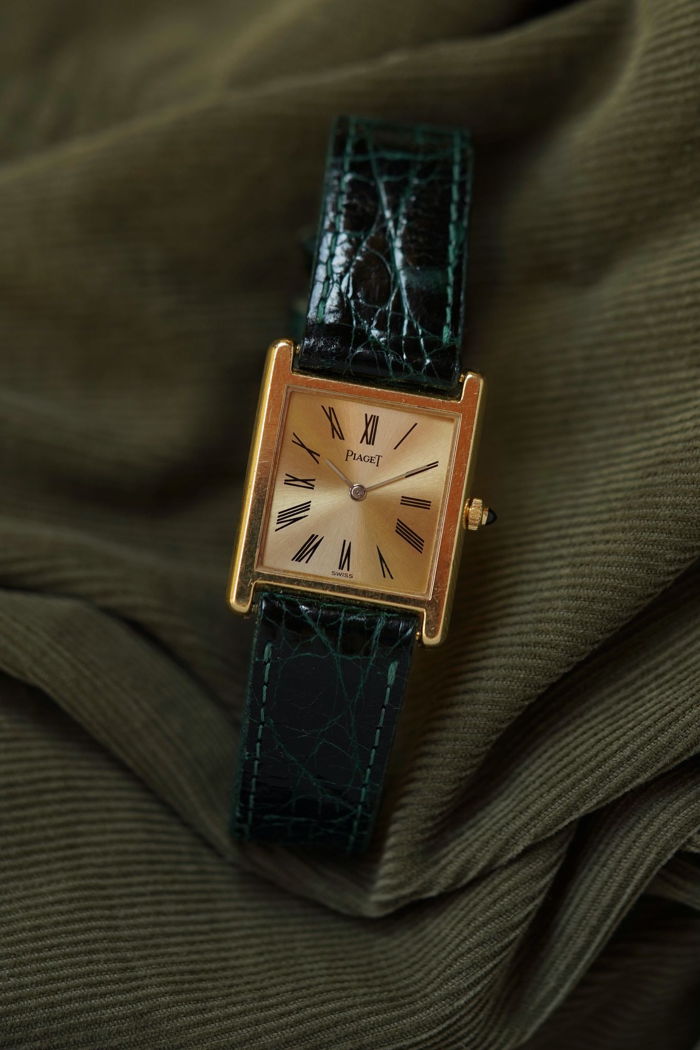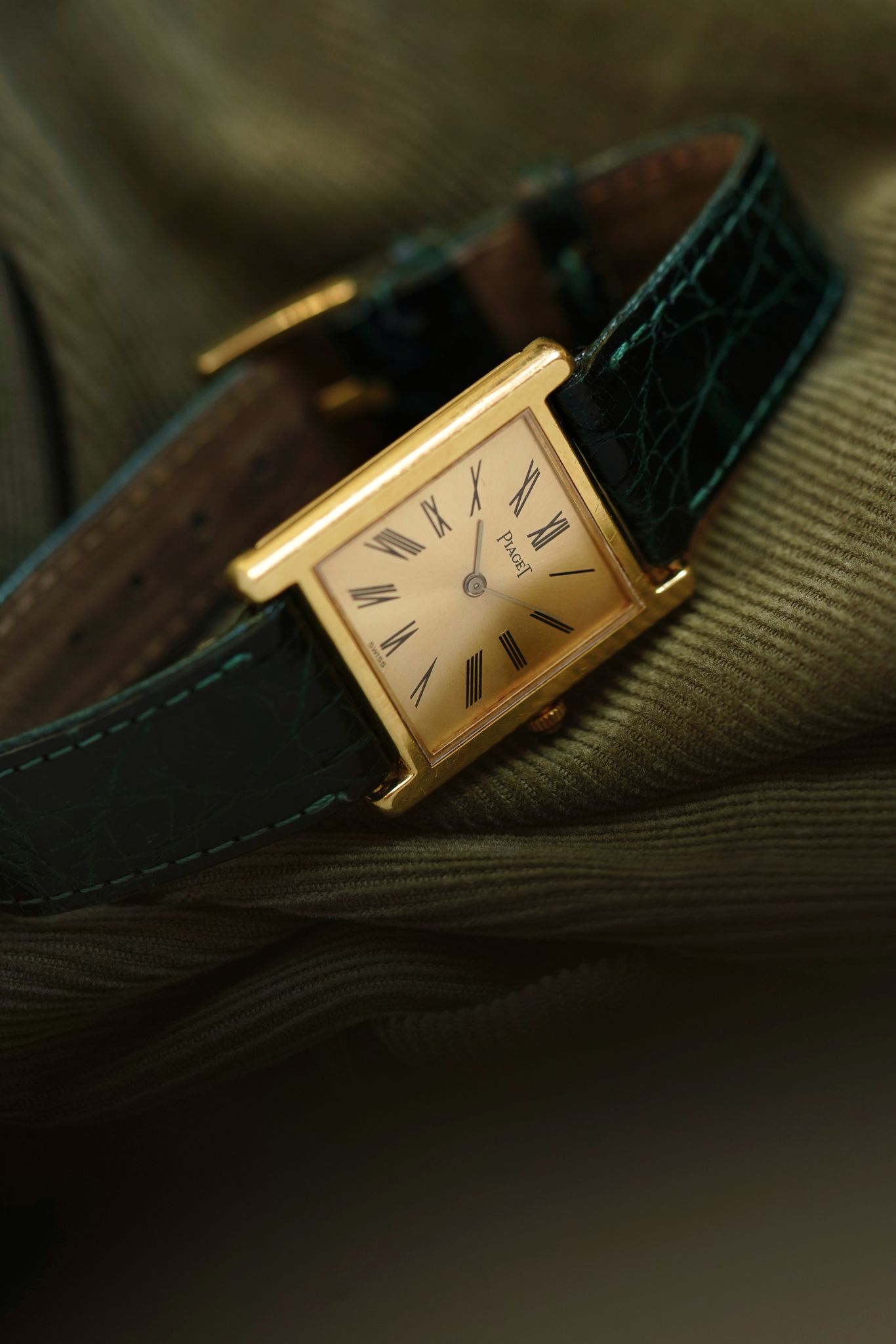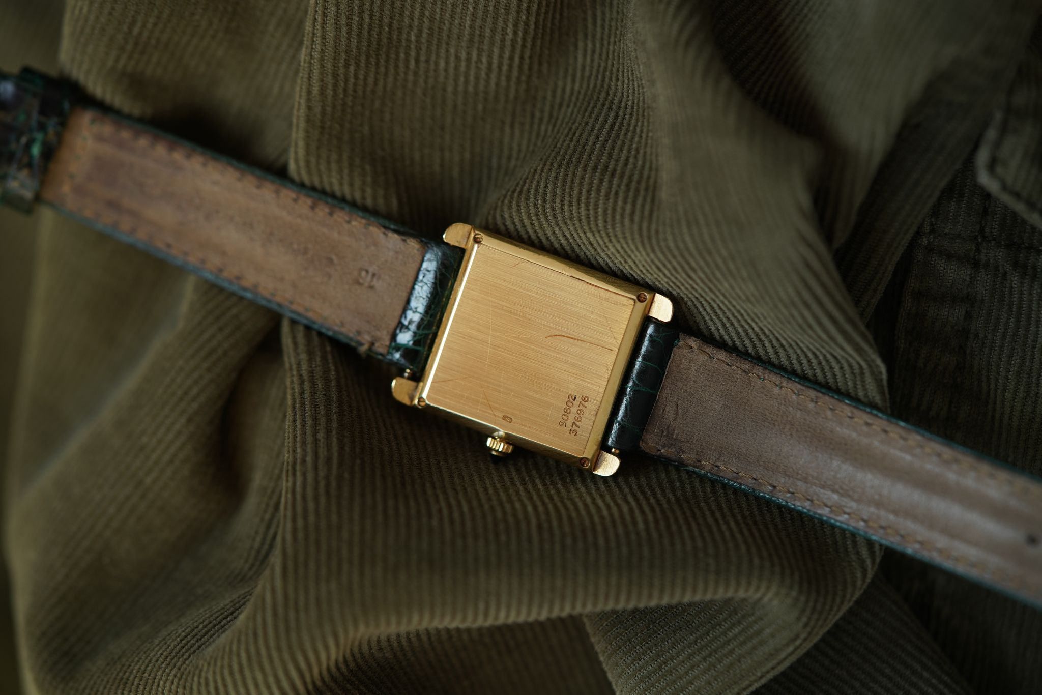 The Piaget equivalent of a Tank Normale: a delightful reference 90802 in 18k yellow gold measuring around 24 by 30mm and sporting the lovely manual 9P calibre.