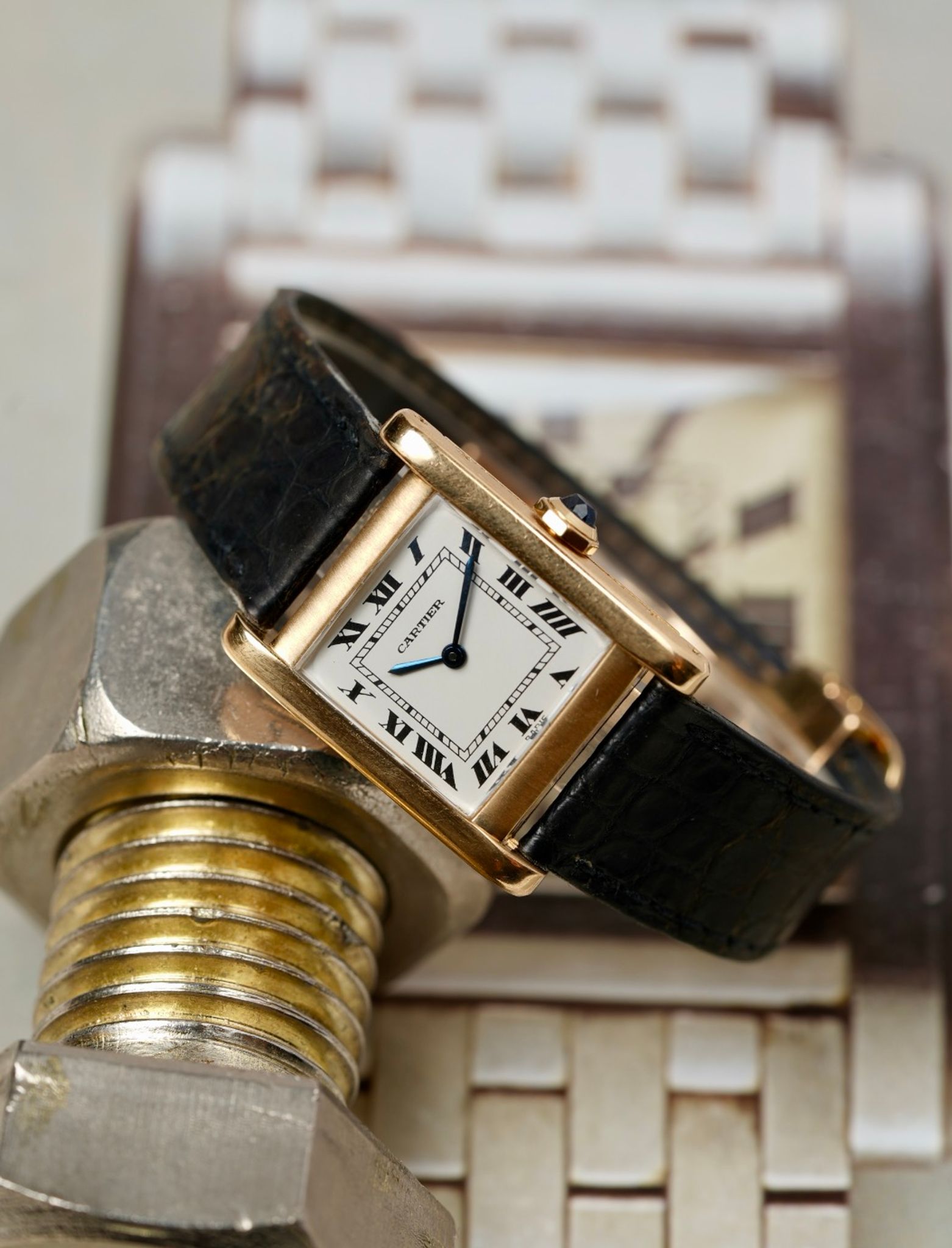 Here we have the iconic Cartier Tank Normale ref. 78092, dating to the 1970s. The standout feature is its rare and early flat “A”, Paris dial—a subtle detail that sets this example apart. The dial is beautifully preserved, with crisp serif printing and just the right amount of warmth and age.