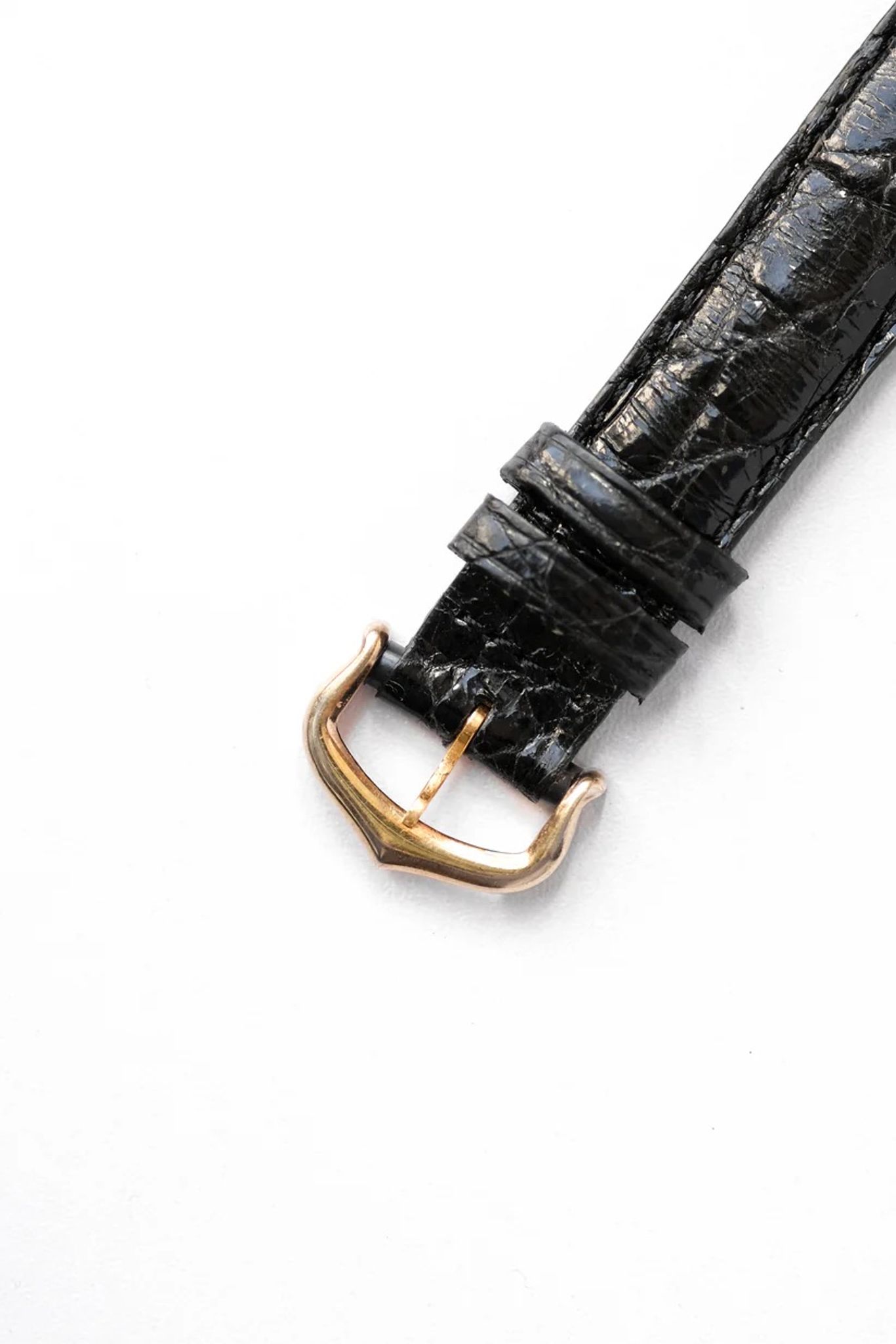 A 1980s watch, in 18-carat yellow gold, with a quartz movement and a gold-plated Cartier pin buckle, also in 18-carat yellow gold. Thanks to its white dial, it can be combined with the strap color of your choice, depending on tastes and seasons.