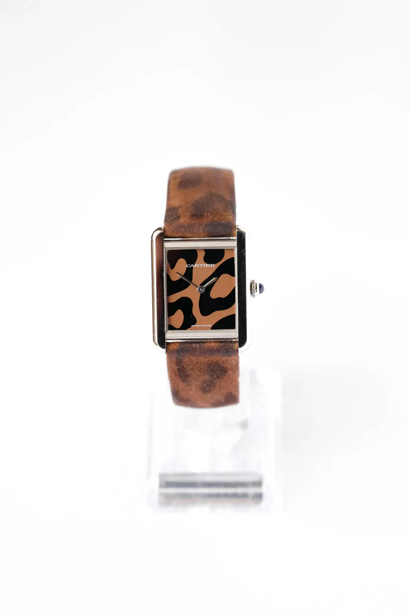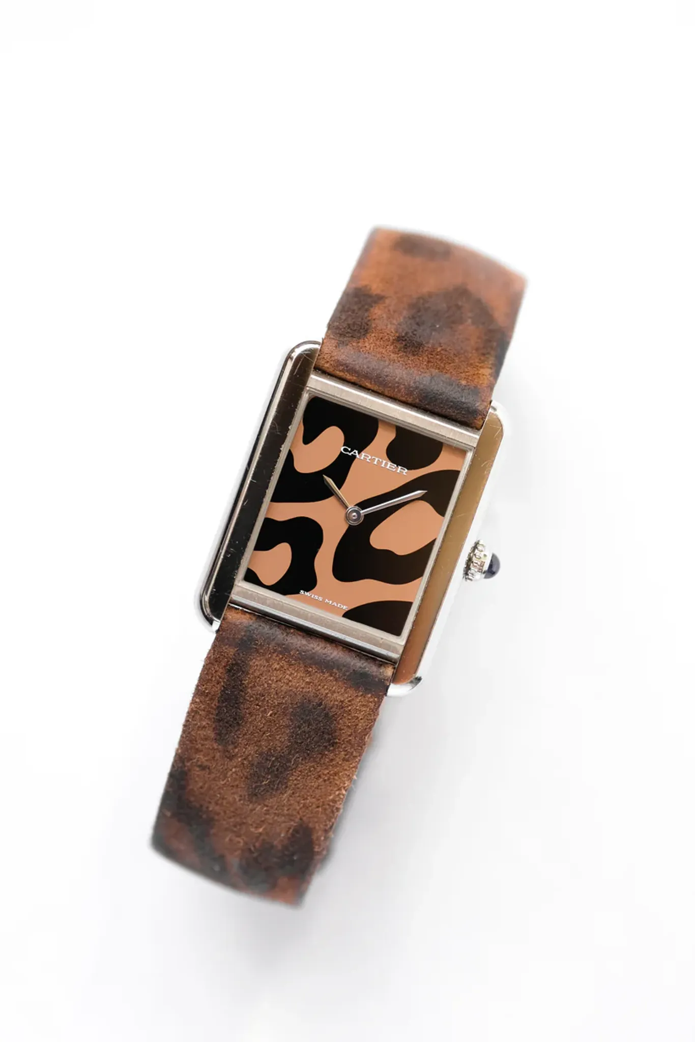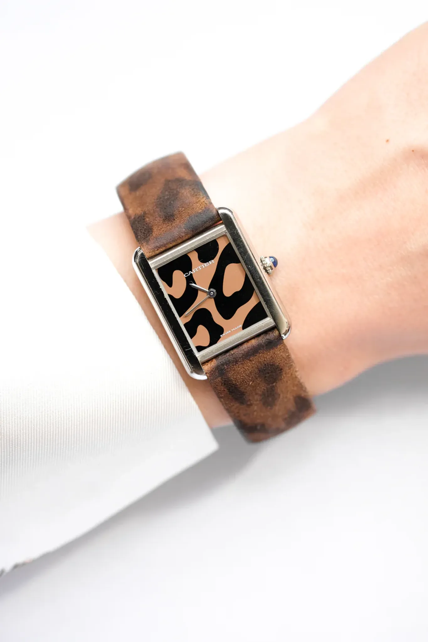How can we dwell on anything other than the dial motif? It takes up the fur of a panther, the spirit animal of Cartier, since the first years of the brand. We find another nod to this animal on the strap: not only are the patterns imprinted on it, but it is made of soft, fur-like leather.