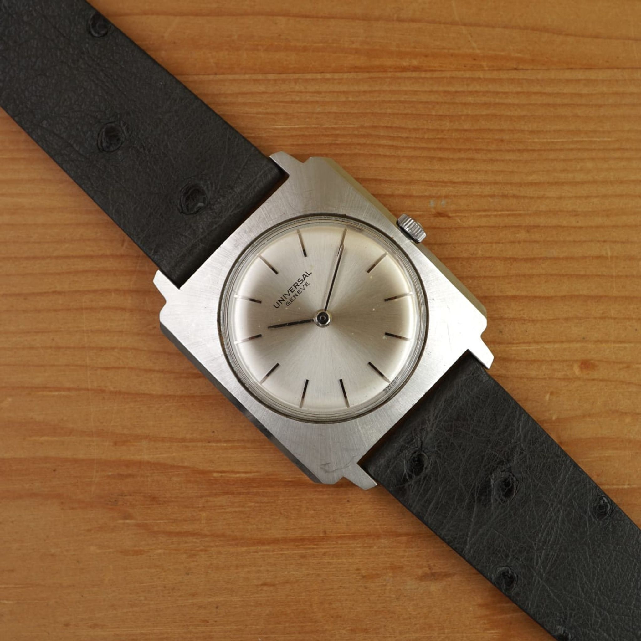 Universal Geneve - Thin Tank-Carré: Silver Sunburst Cioccolatone