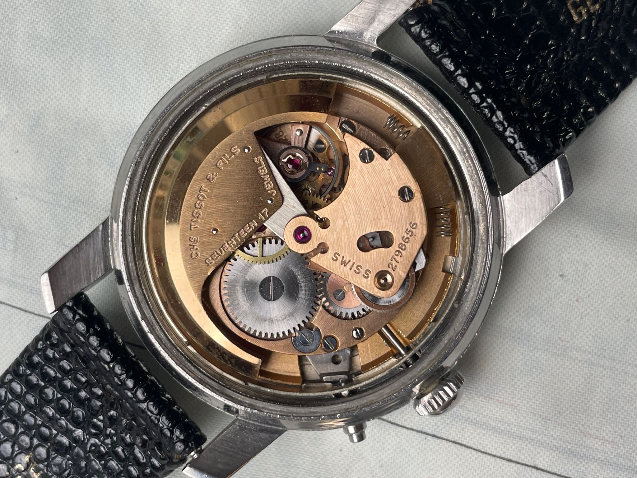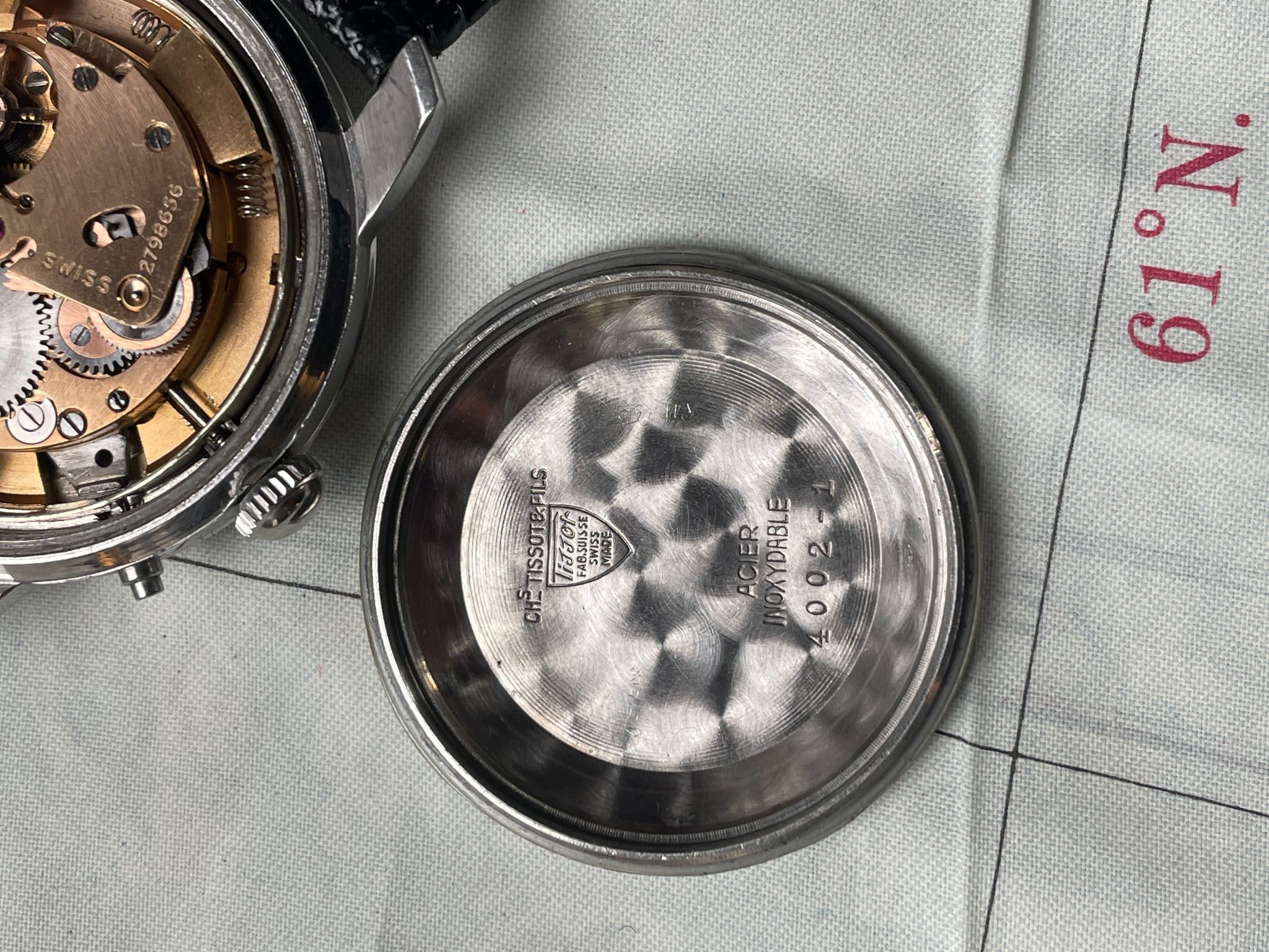 The 36mm stainless steel case is in very good condition for lady of over 70 years old. It is powered by the automatic caliber 28.5 N-21 (bumper), which is functioning flawlessly.