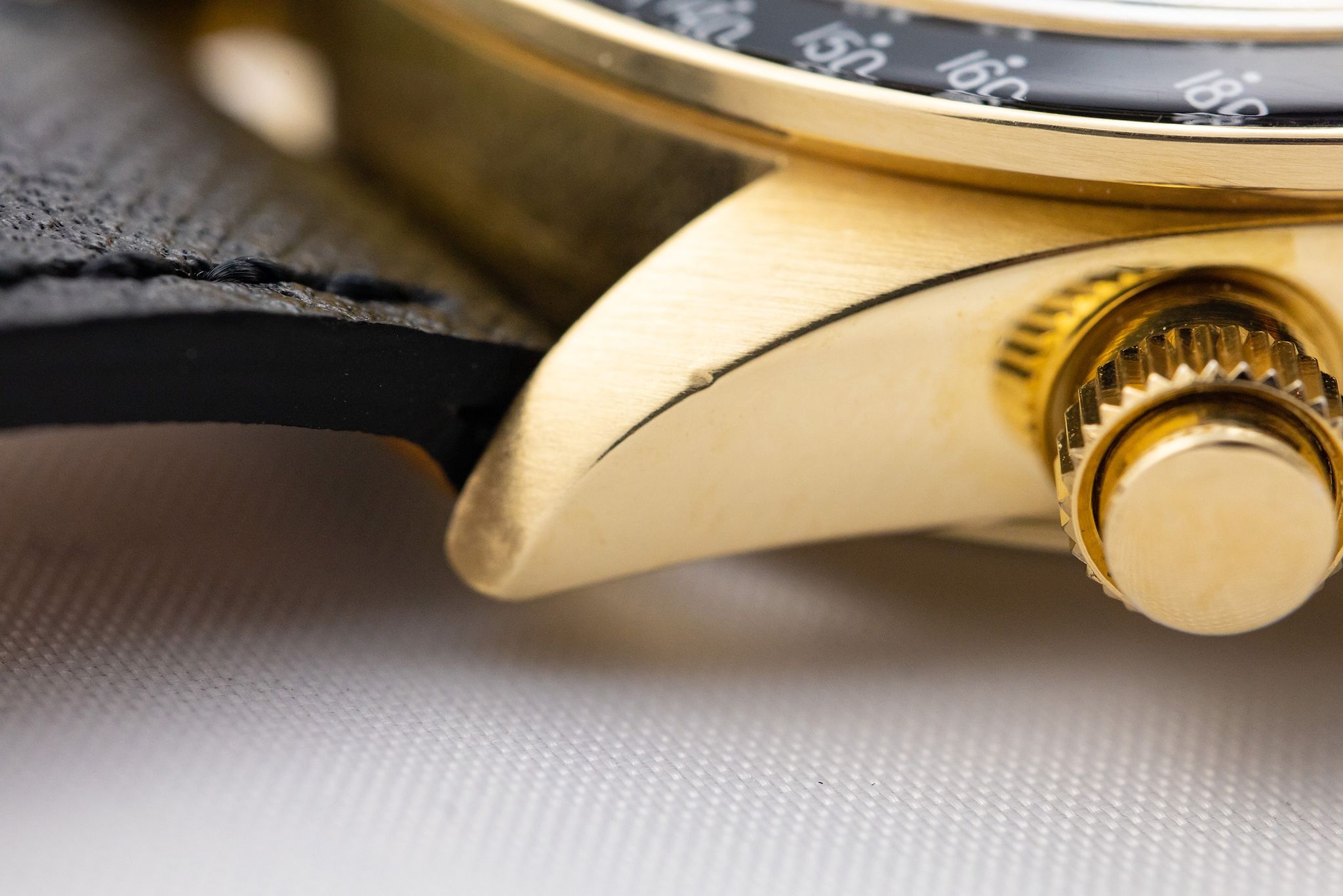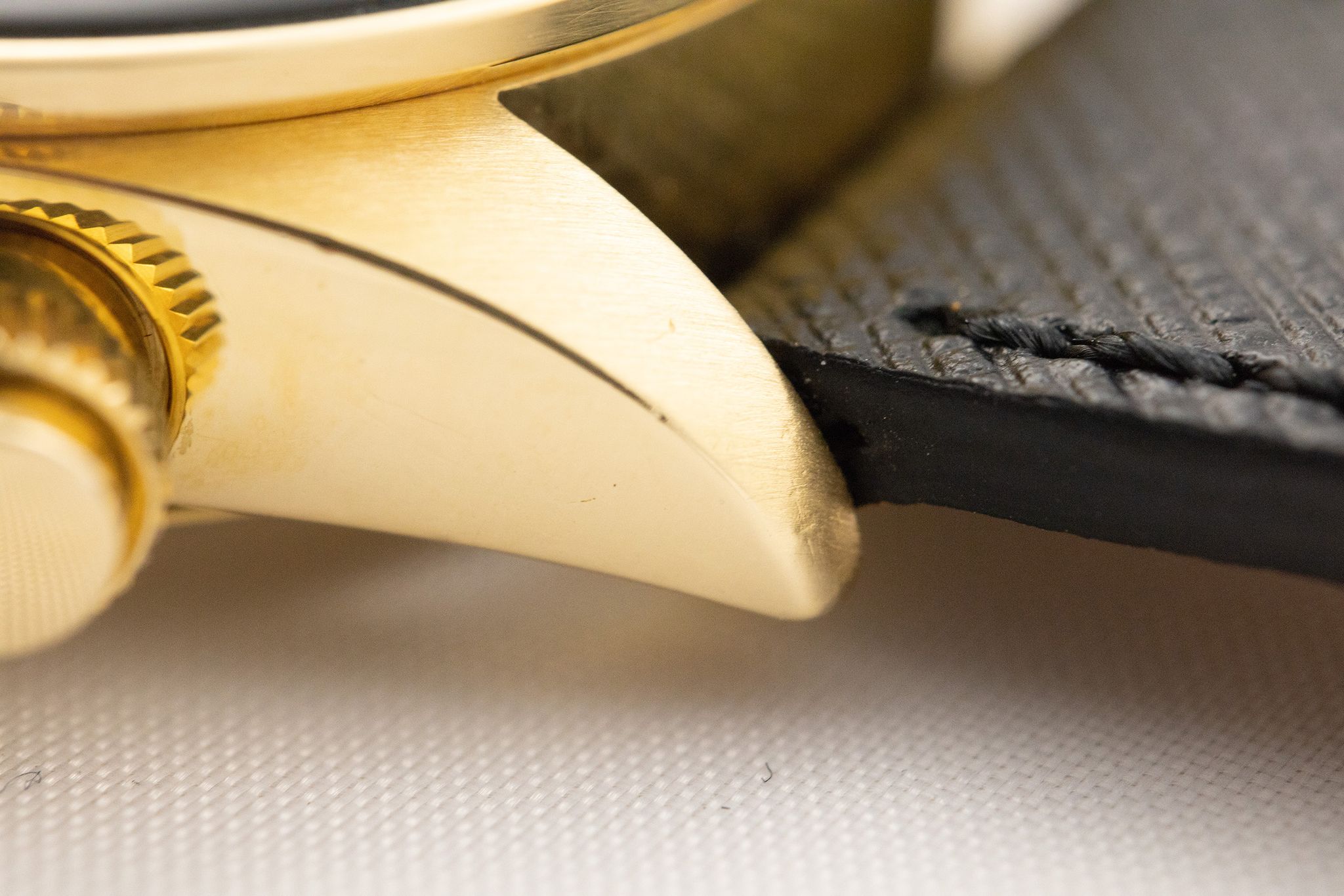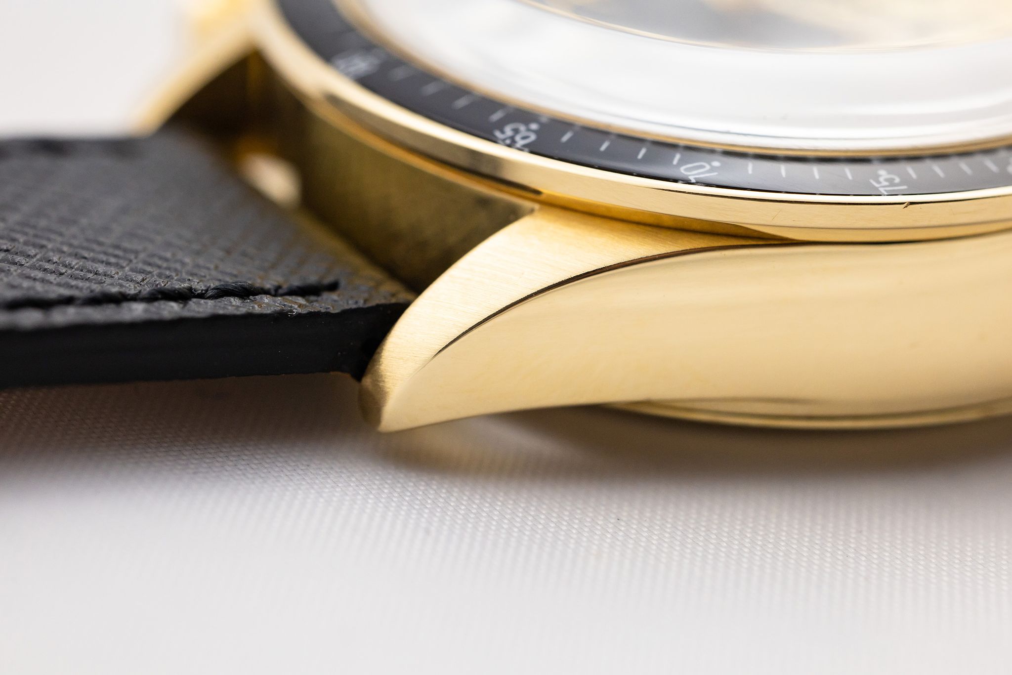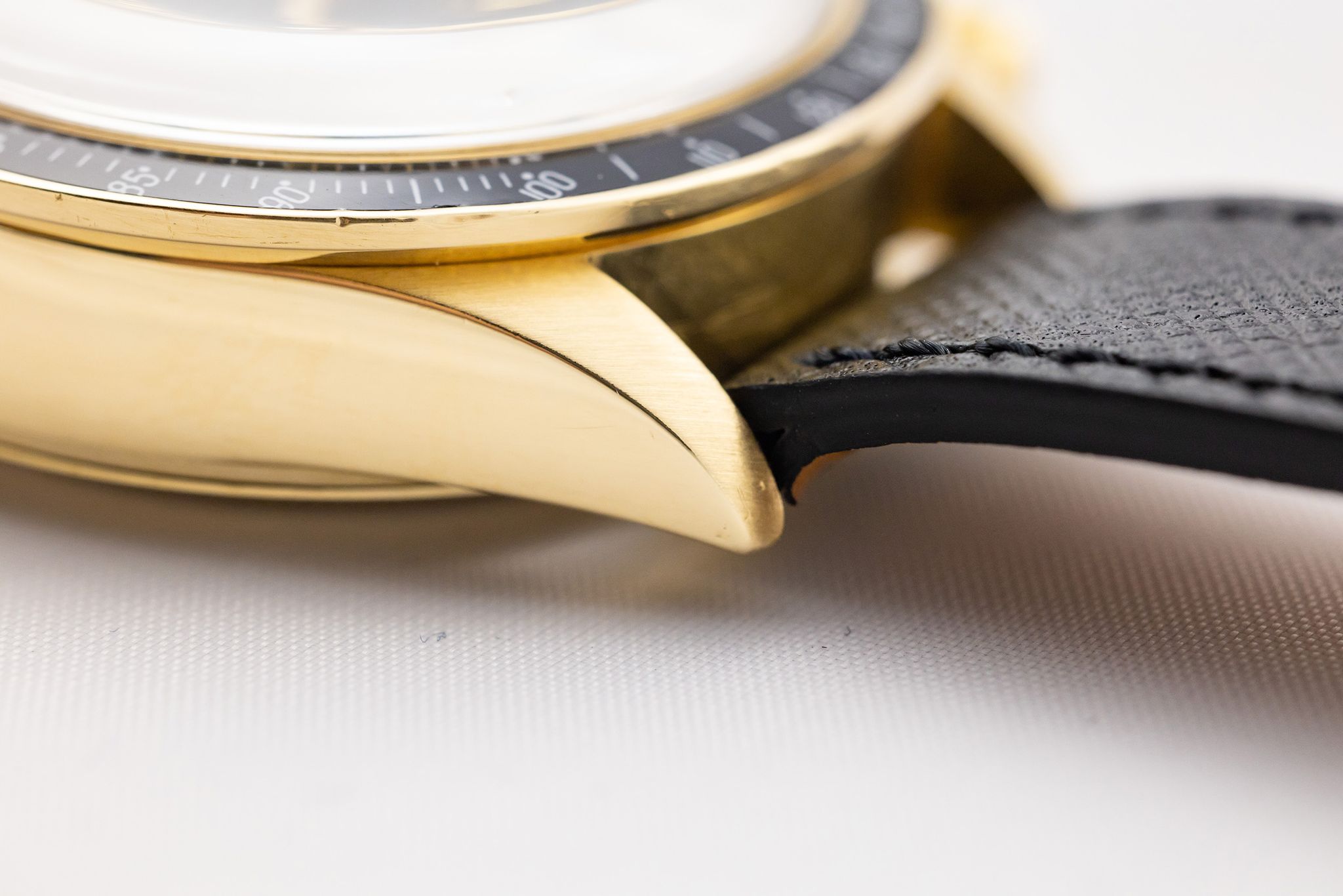 A 1990’s tribute watch to the Rolex Daytona that has become a collector watch in its own right! A rare, 9.5/10 condition 18K Tribeca on an exquisite, new Molequin Saffiano strap.