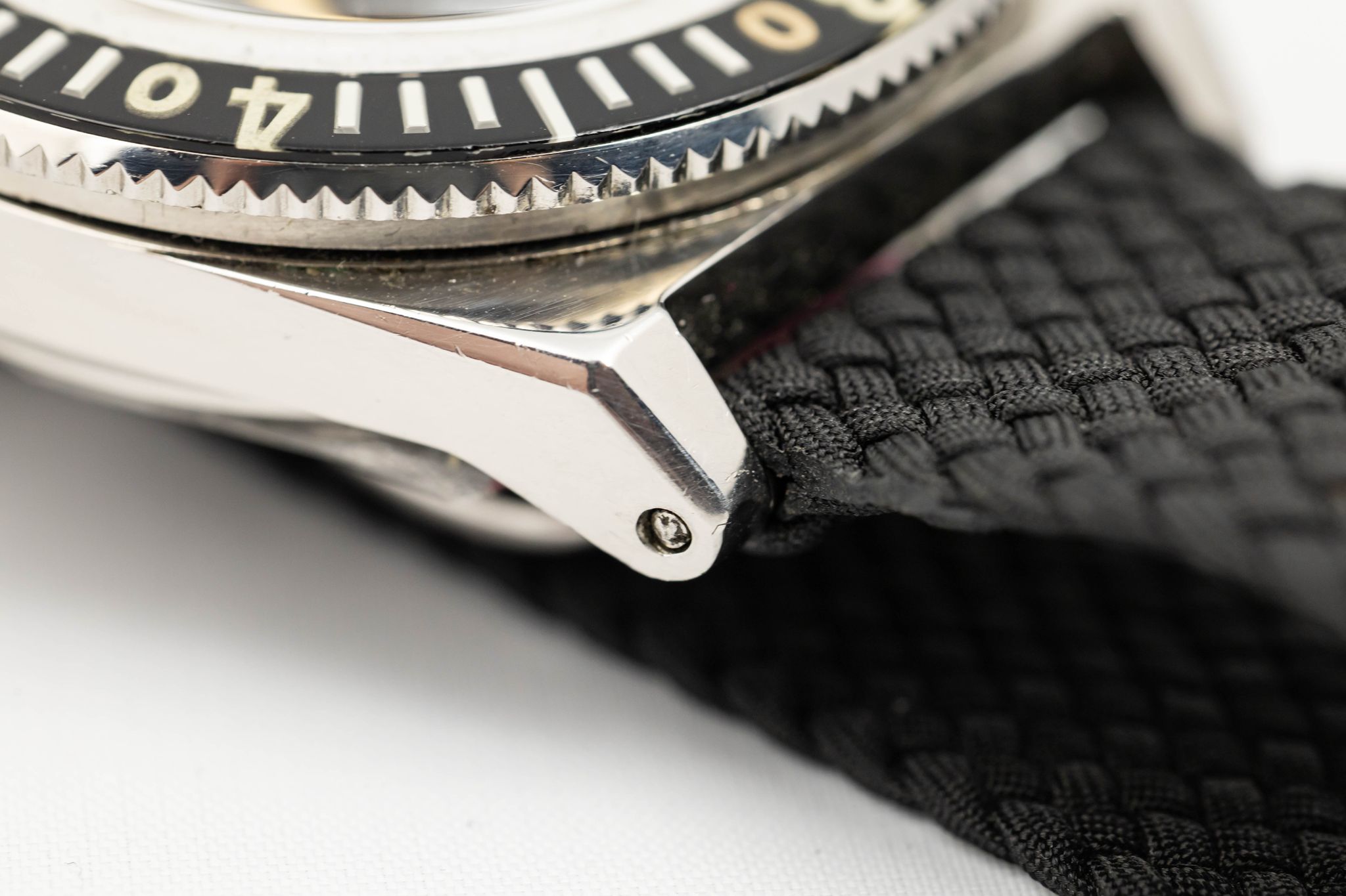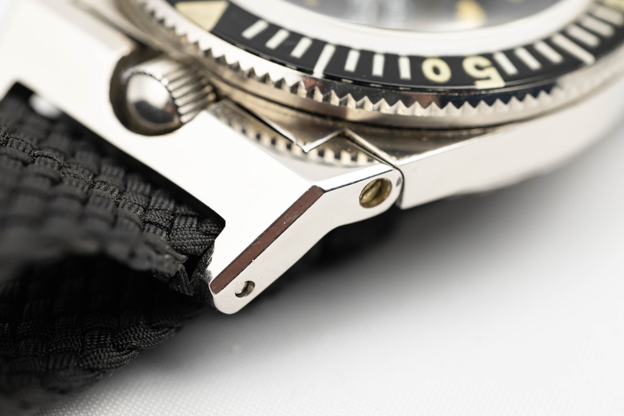 Early 1960’s French diver in mint condition that checks off all the cool things from the era such as Bakelite bezel, crown at 12 and awesome lume.