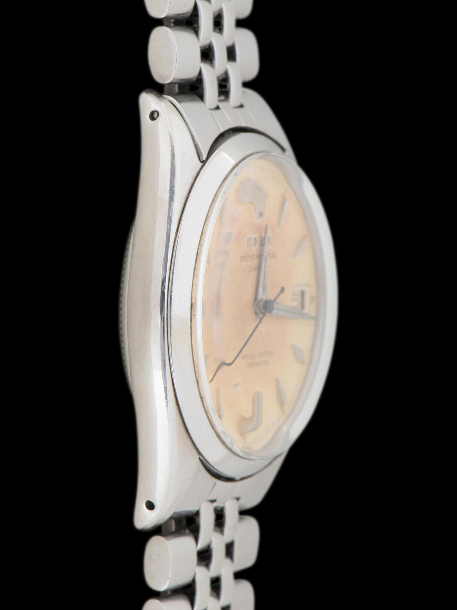 The excellent case retains full and symmetrical lugs that show evidence of light polishing in the past and gentle signs of gentle use. The smooth stainless steel bezel is in wonderful condition with minimal signs of use present. The Rolex "USA Made" oval-link Jubilee bracelet was sourced with the watch and retains 18 links that show normal stretch for the style and age of the bracelet. The bracelet will fit up to a 6 3/4-inch wrist. additional links can be provided upon request.