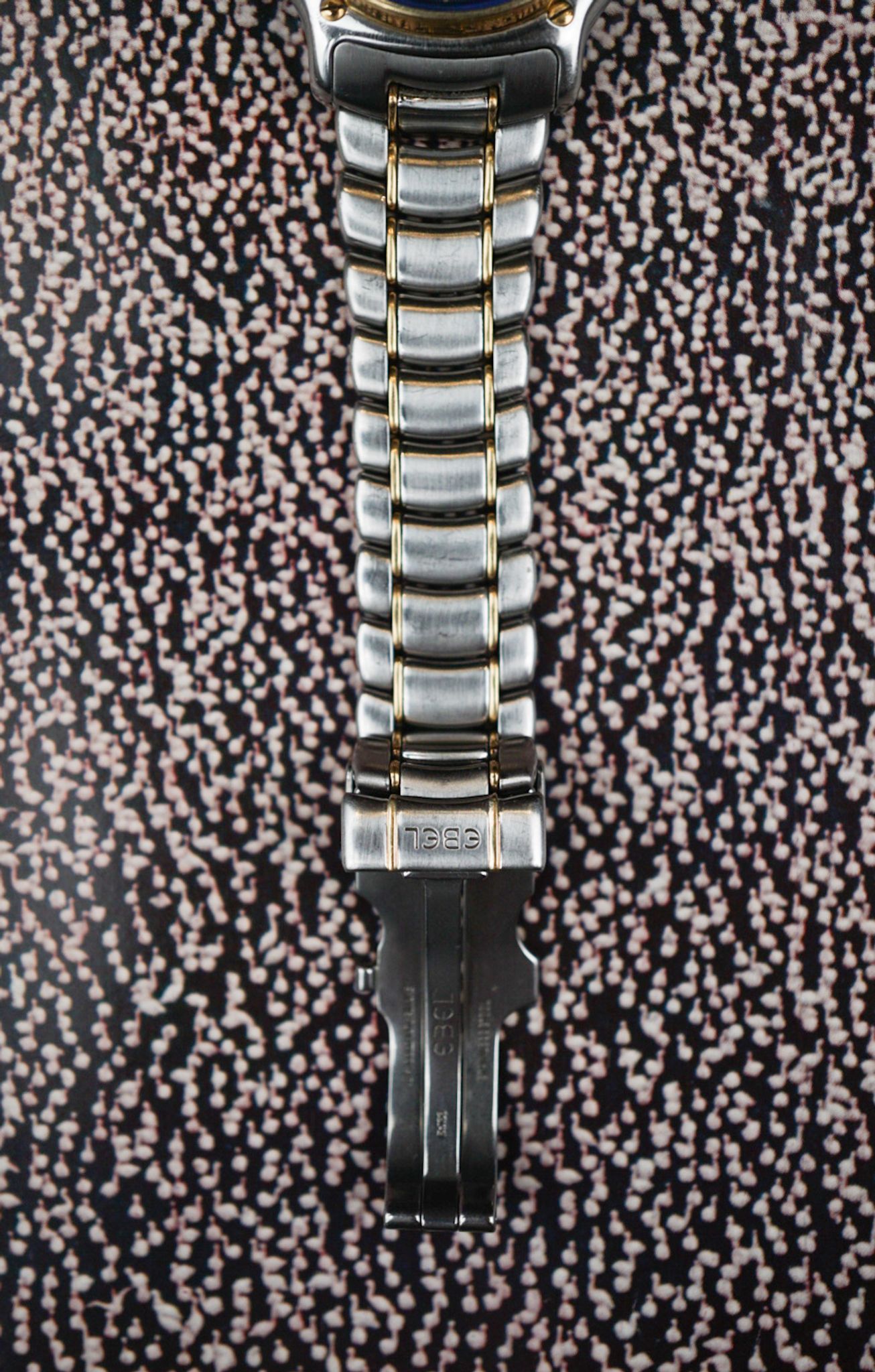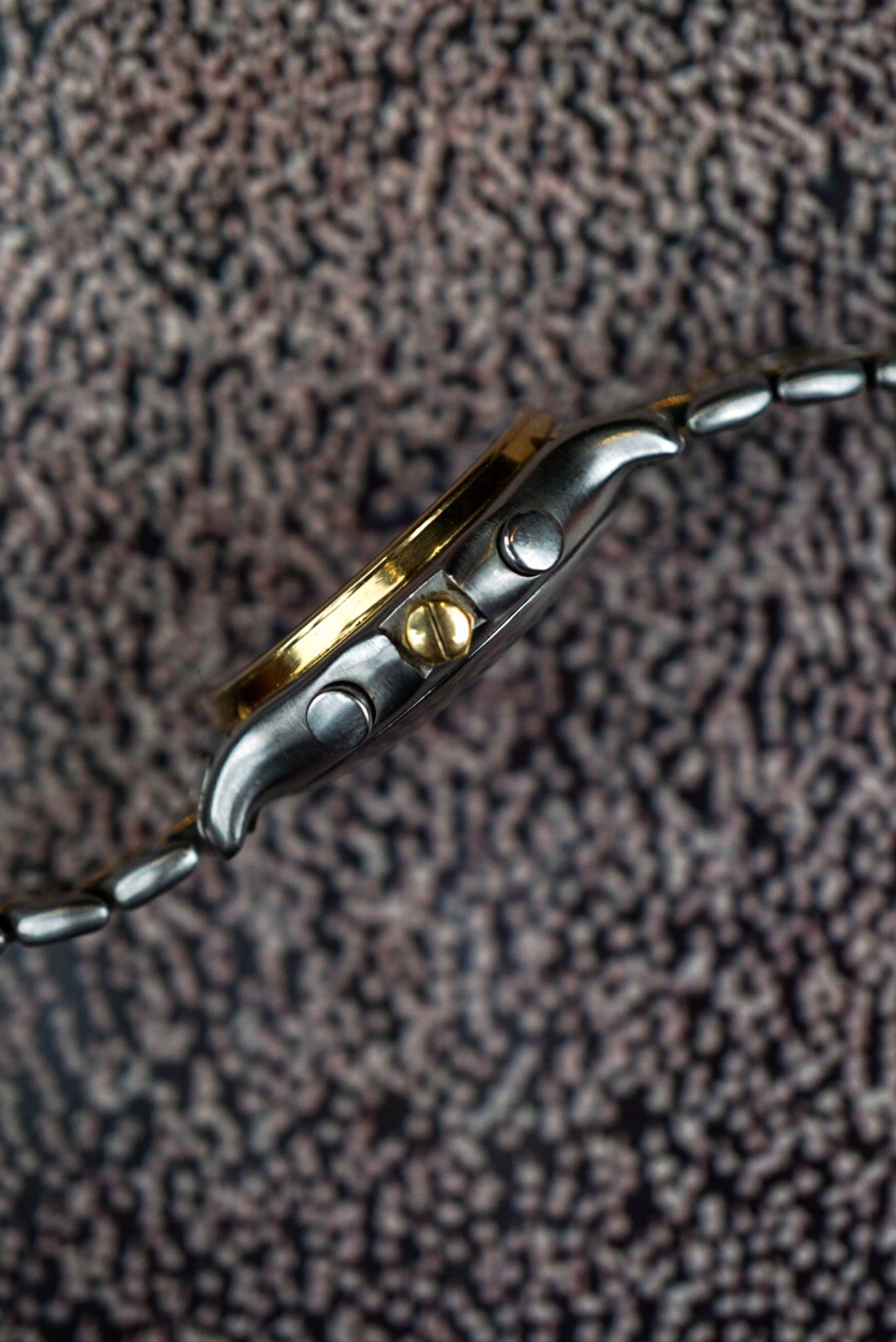 The stainless steel and 18K yellow gold case is in very nice condition, free from scuffs or deep marks. It retains thick lugs and shows only minor evidence of previous polishing.