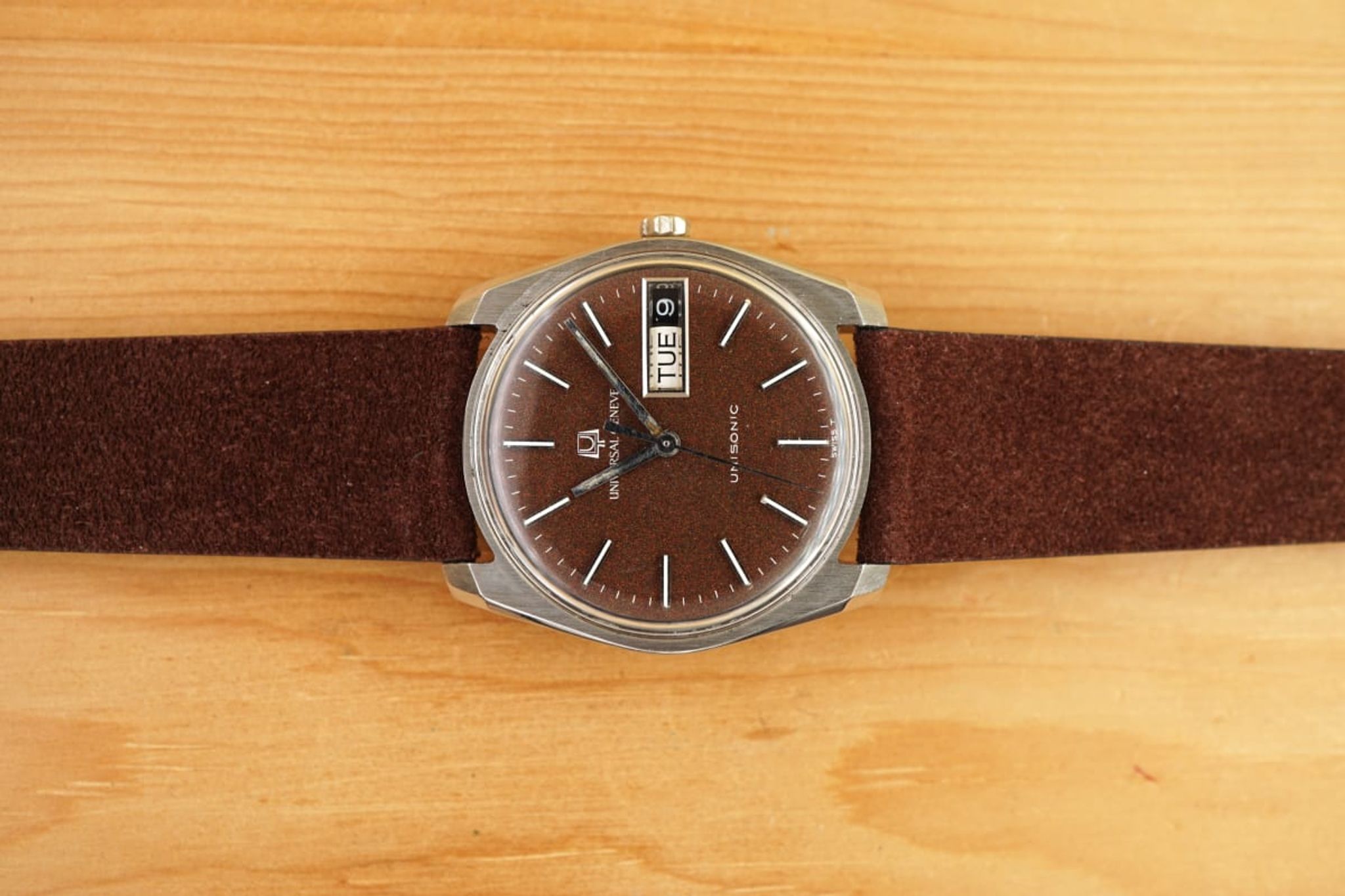 Universal Geneve decided to went full electronic in the late 1960s to step up in precision. And so the UG-logo was changed resembling the back-then top movement-technology electronic tuningfork (patented by Bulova & licensed to UG); the progress was not only fast but revolutionary.