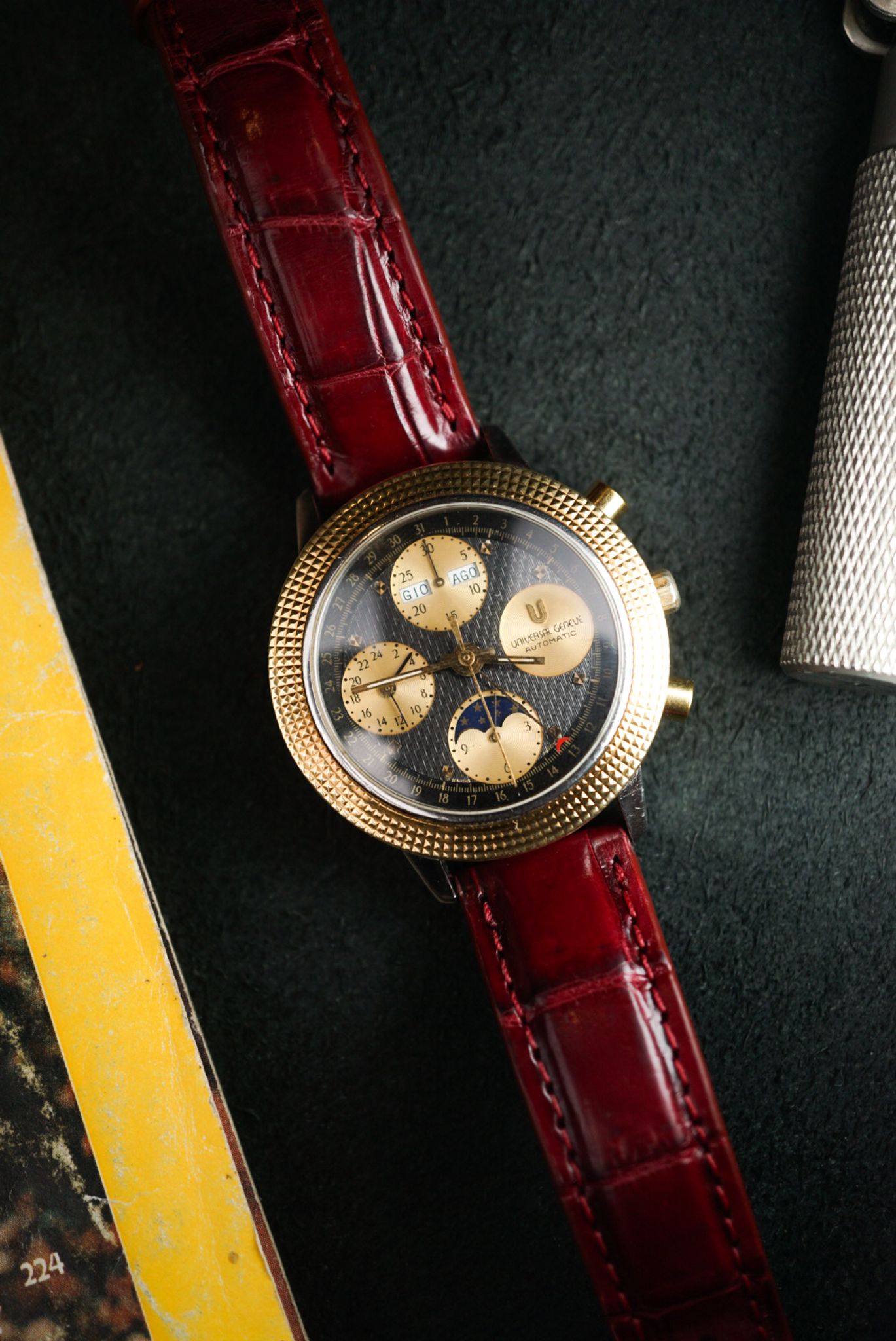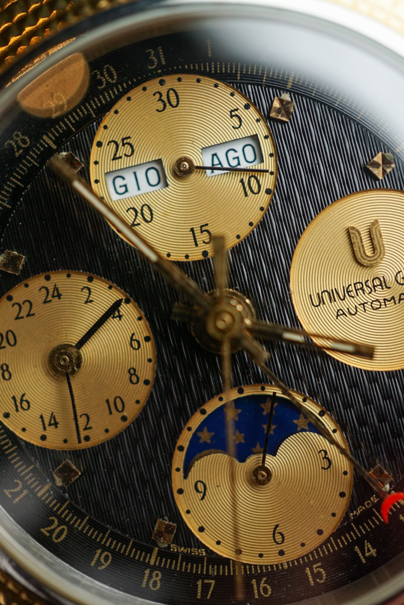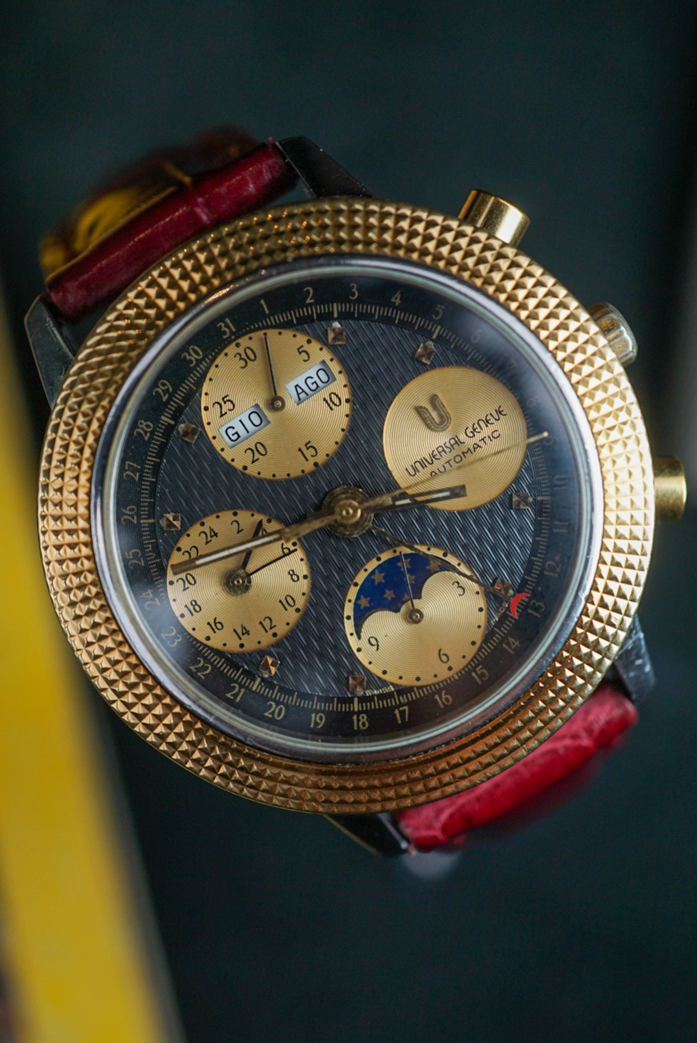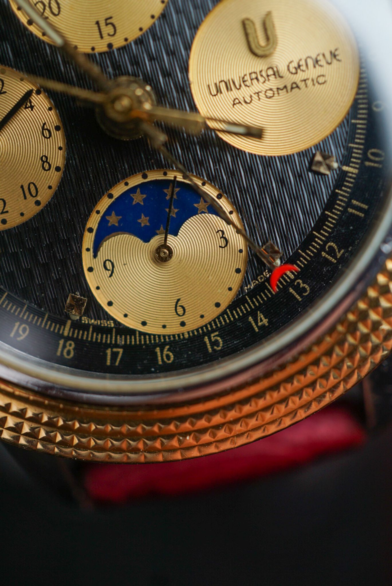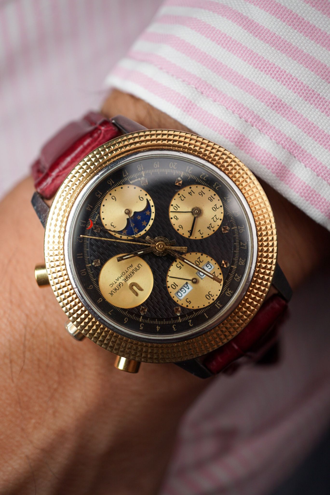 Spectacular and intricate — this Universal Genève is in superb condition, showcasing three distinct dial finishes that play beautifully with the light. A true gem for the collector of complications.