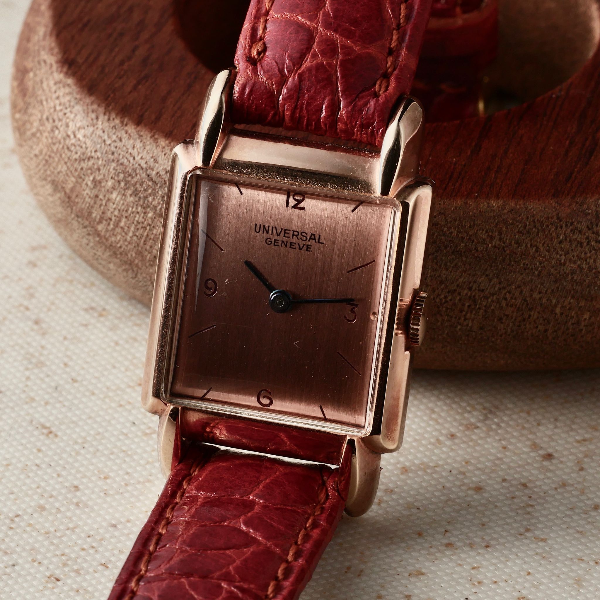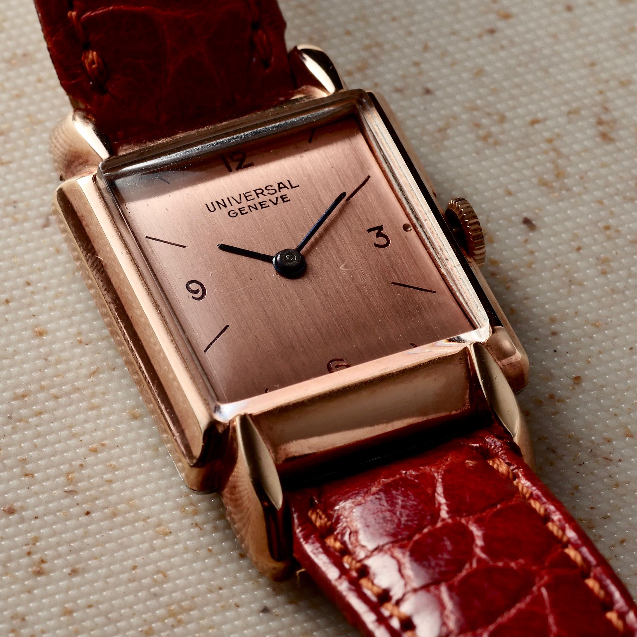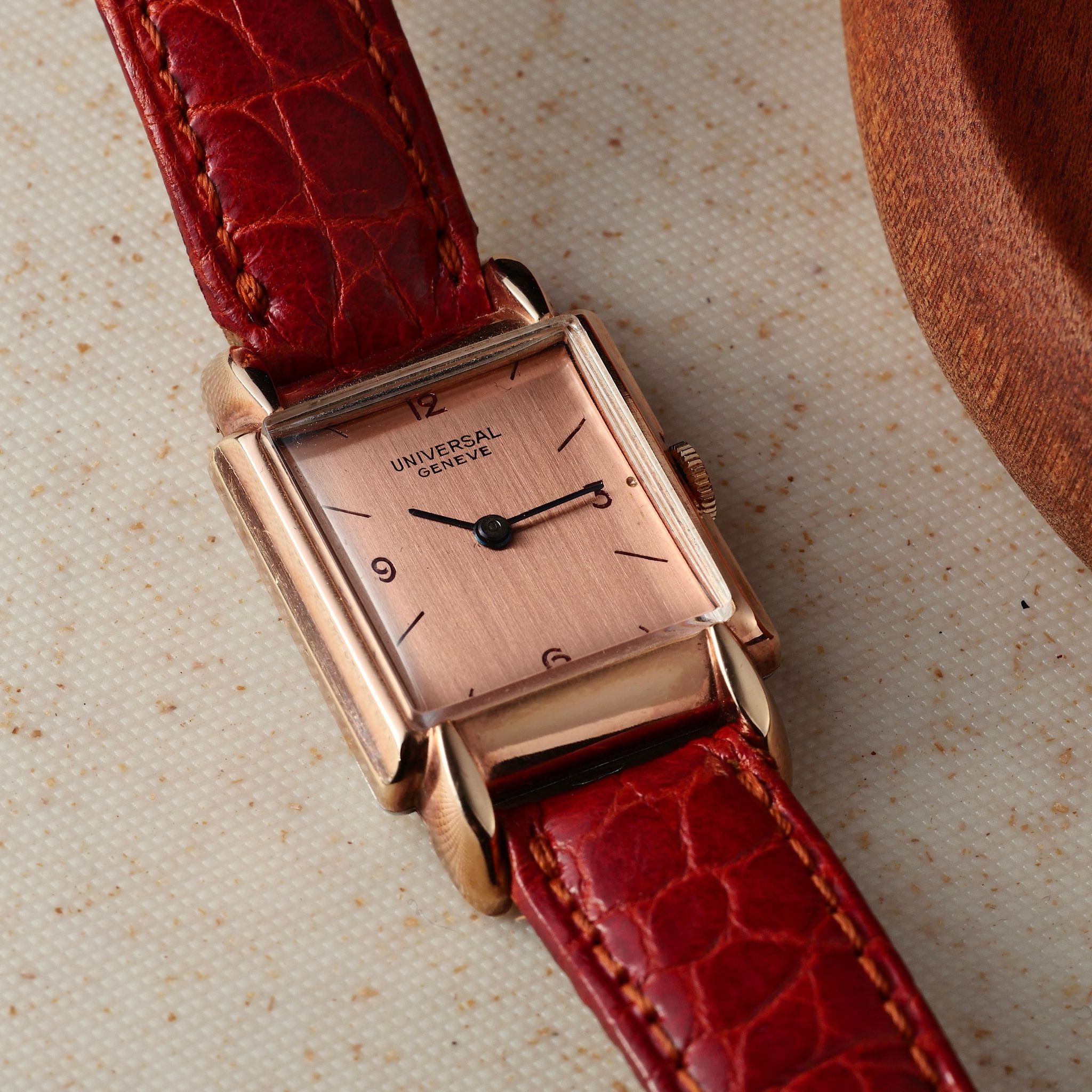 Amongst its many hallmarks is this uber rare Universal Geneve tank watch from the 1940s-1950s, adorned with horned lugs and what could be an art-deco Mellerio case that is entirely sculpted by hand.