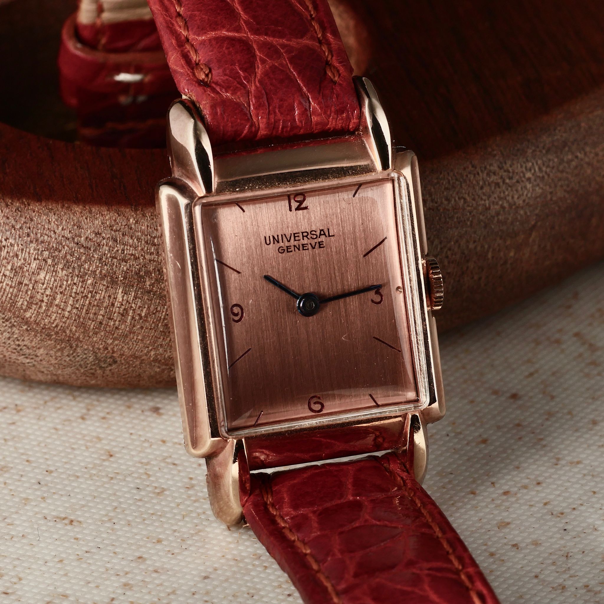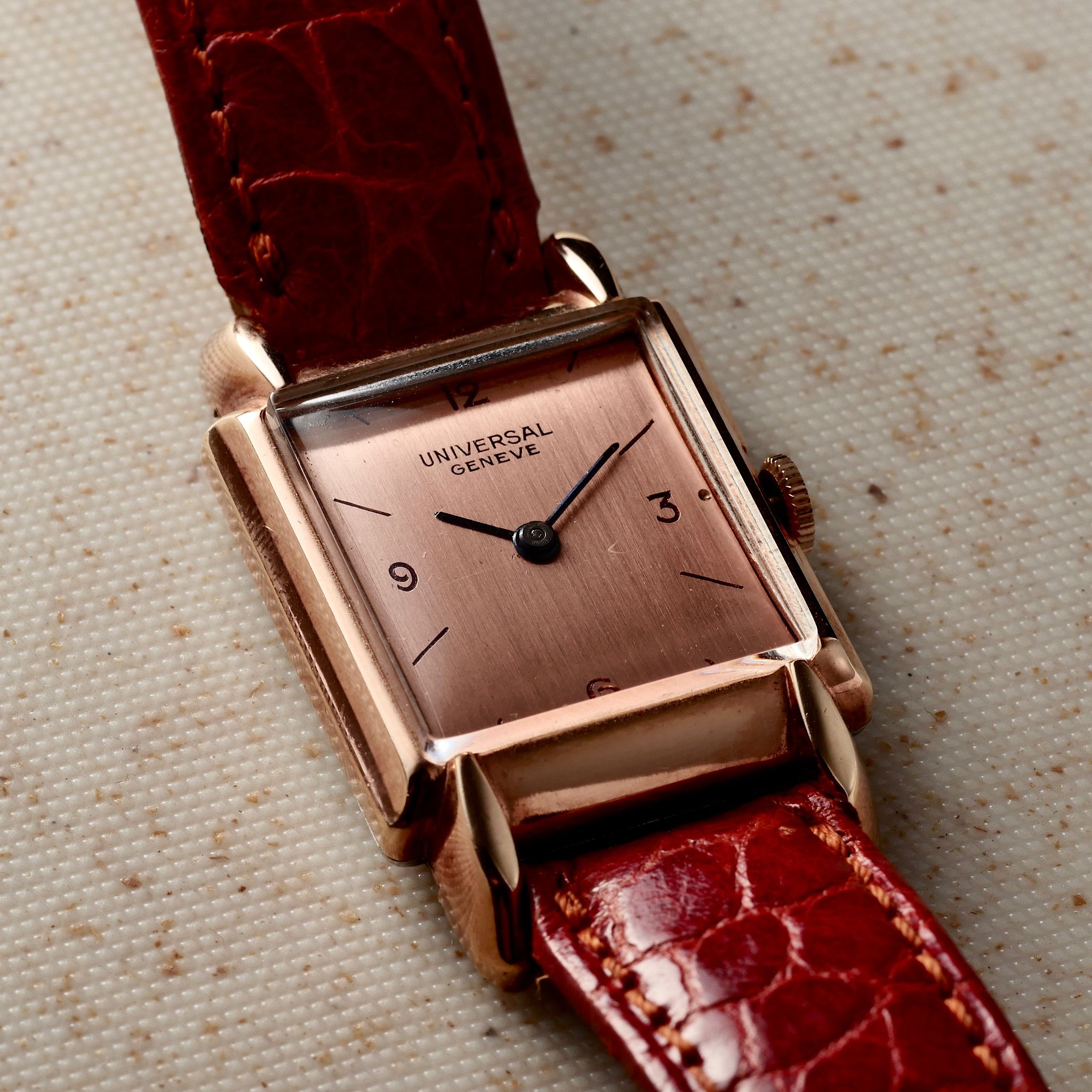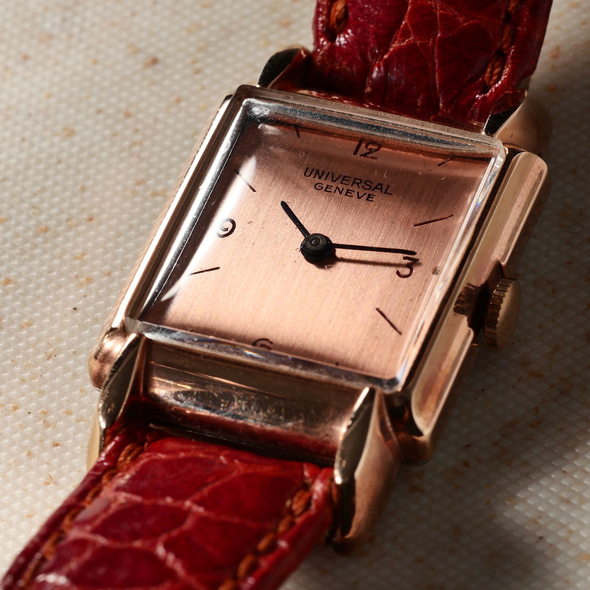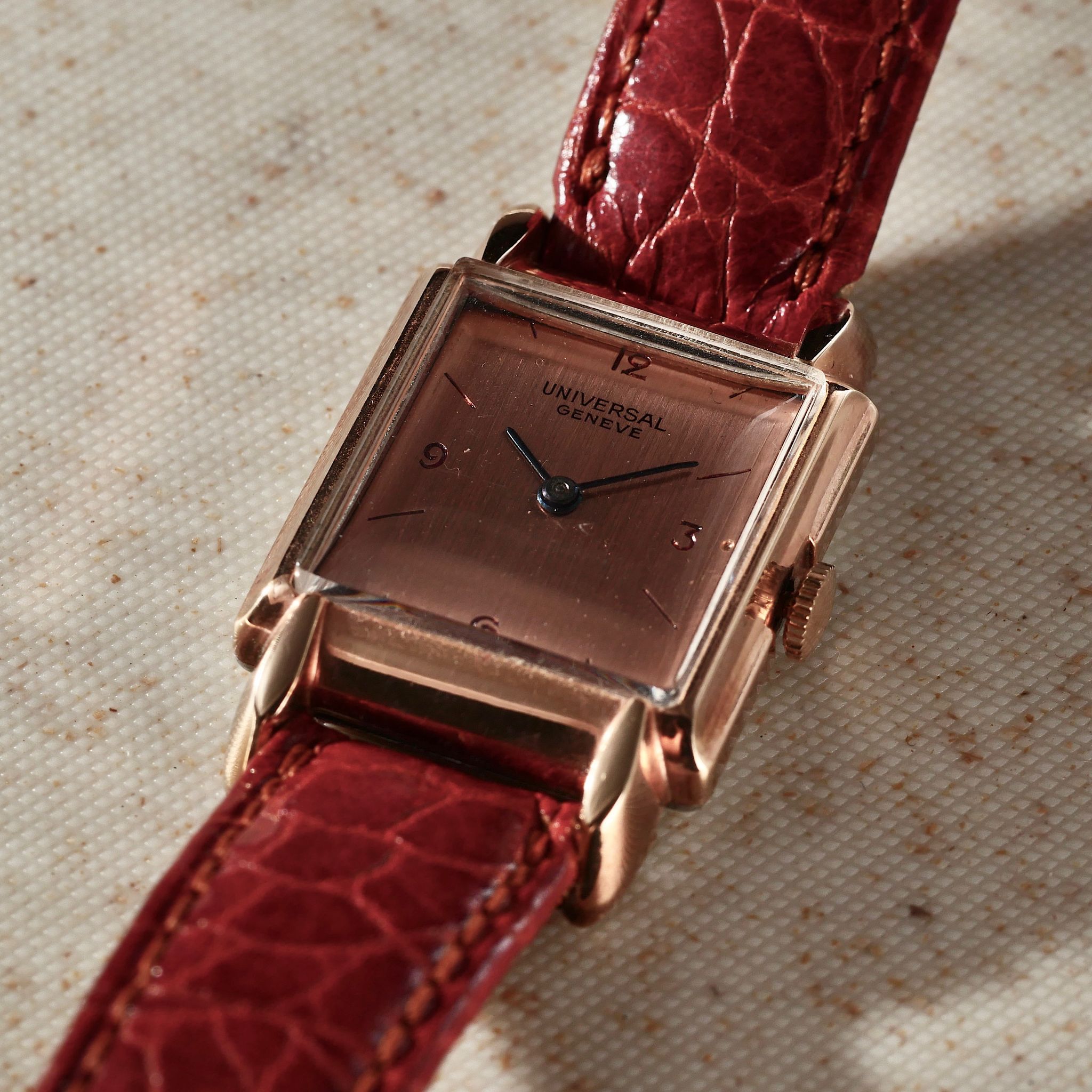 Amongst its many hallmarks is this uber rare Universal Geneve tank watch from the 1940s-1950s, adorned with horned lugs and what could be an art-deco Mellerio case that is entirely sculpted by hand.