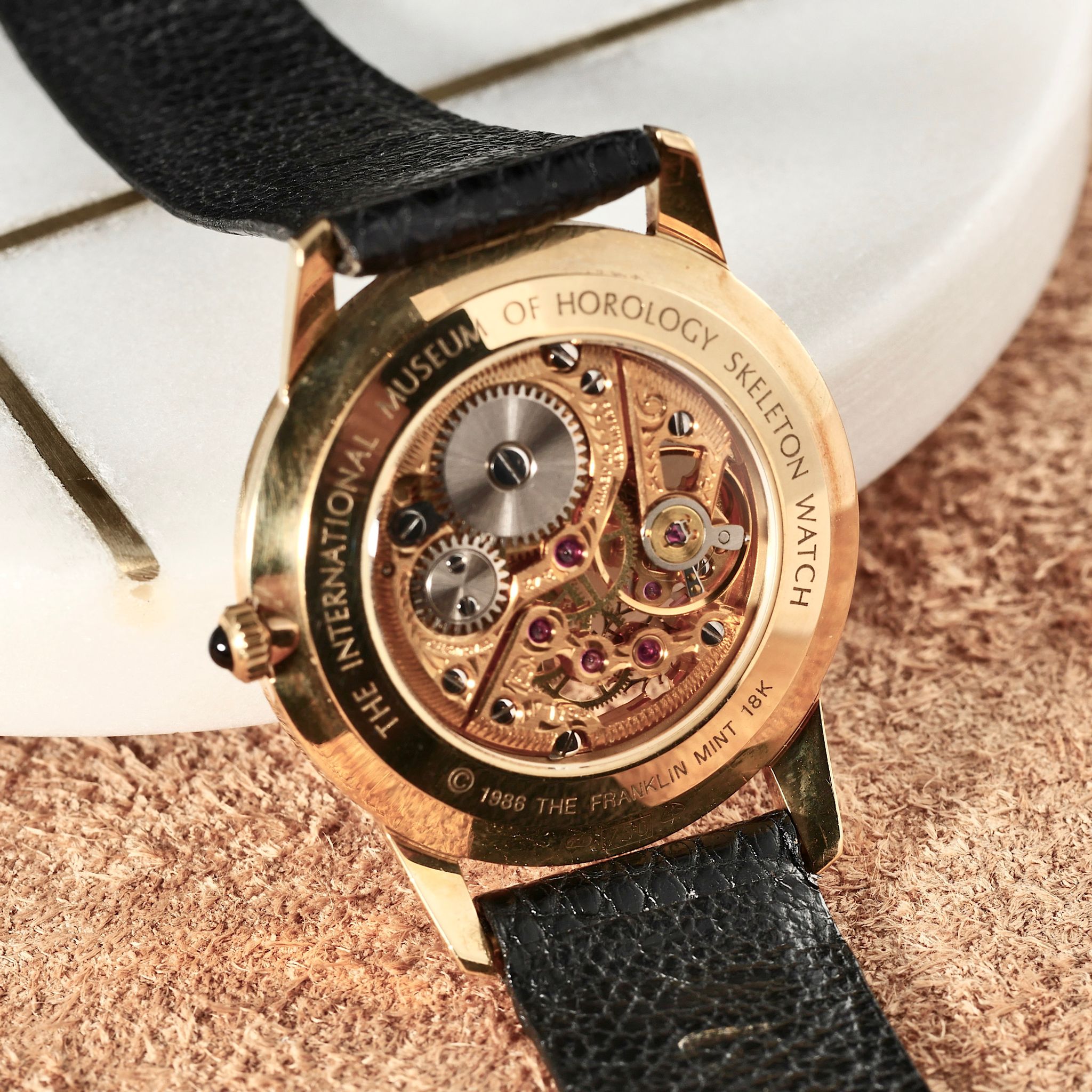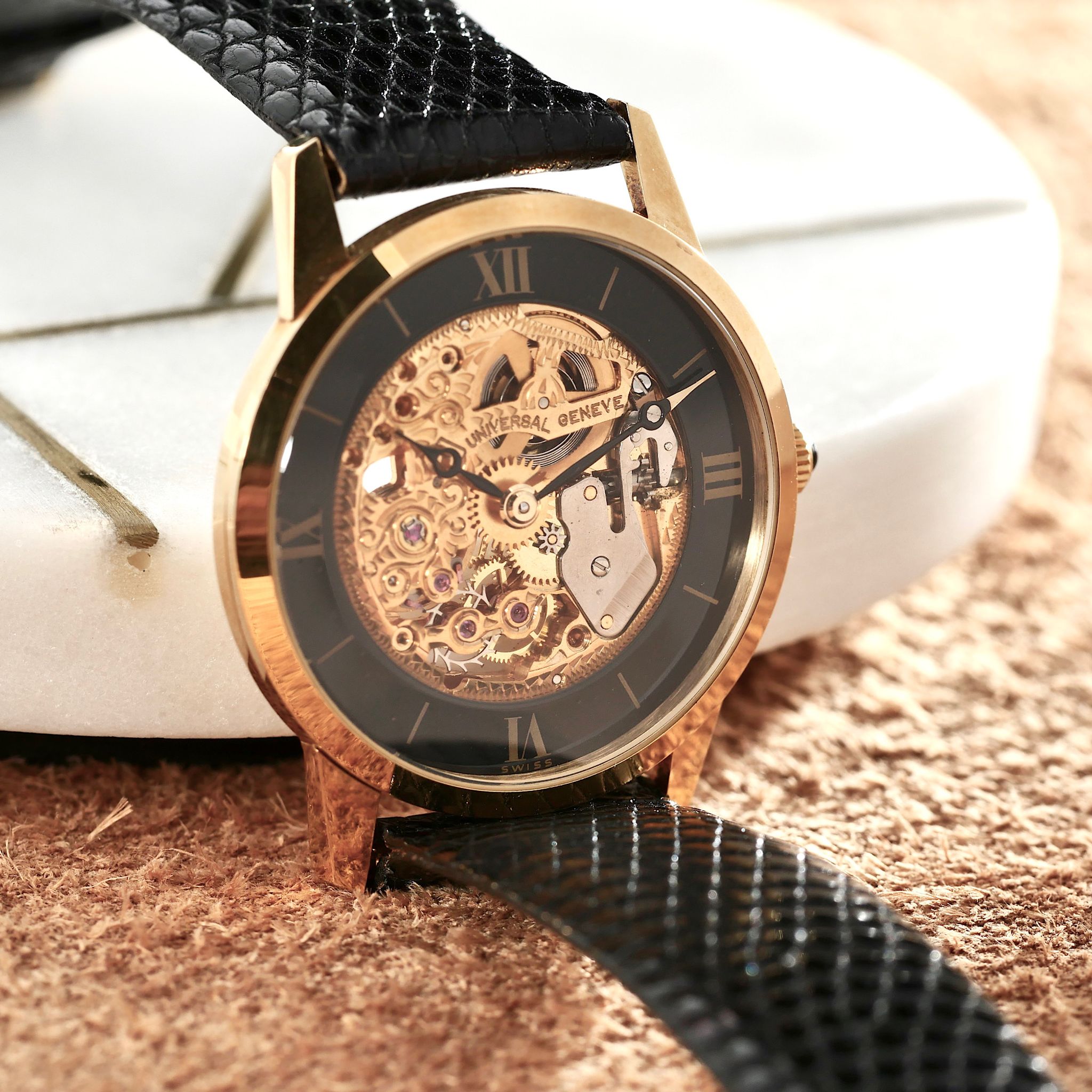 Commissioned by the International Museum of Horology, this Universal Geneve was an icon from the 1980s, a collaboration with the esteemed Franklin Mint. Though the museum stated that up to 3000 were made, truth whispered of much less than half that number, with each piece unique, skeletonised and crafted entirely by hand.