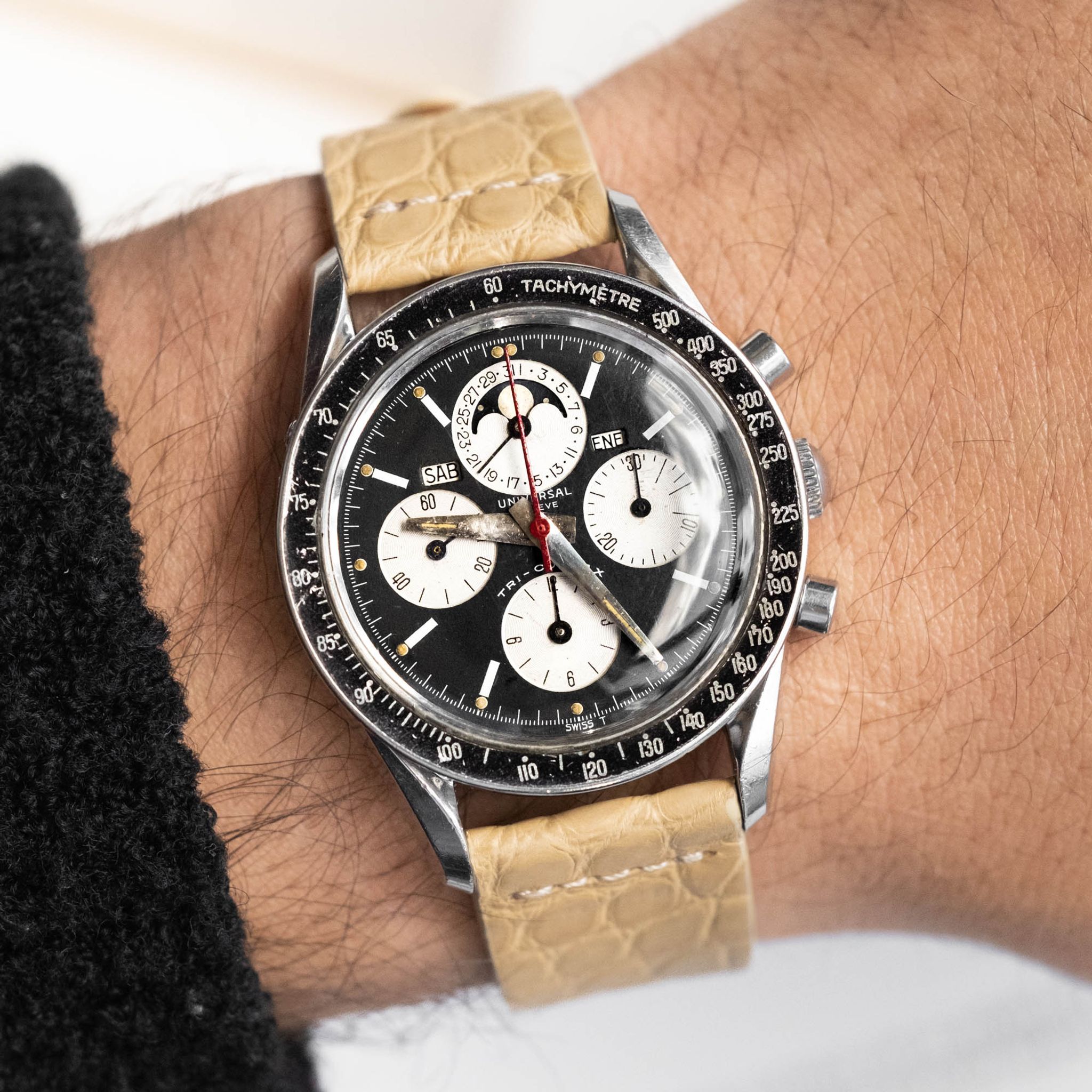 The Universal Genève Tri-Compax watch is an iconic piece of Swiss watchmaking history. Introduced in the 1940s, it featured three complications: a chronograph, complete calendar, and moon phase. Praised for its elegant design and exceptional functionality, the Tri-Compax became a favorite among watch enthusiasts and influential figures, including musicians like Eric Clapton, who notably wore one, elevating its desirability.