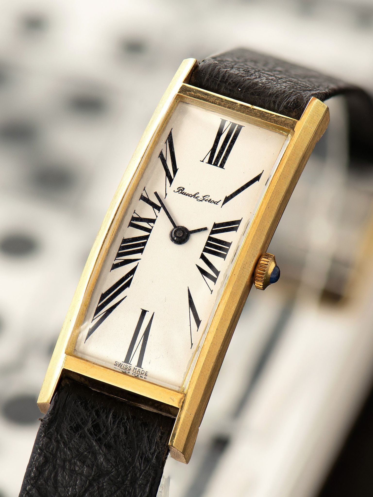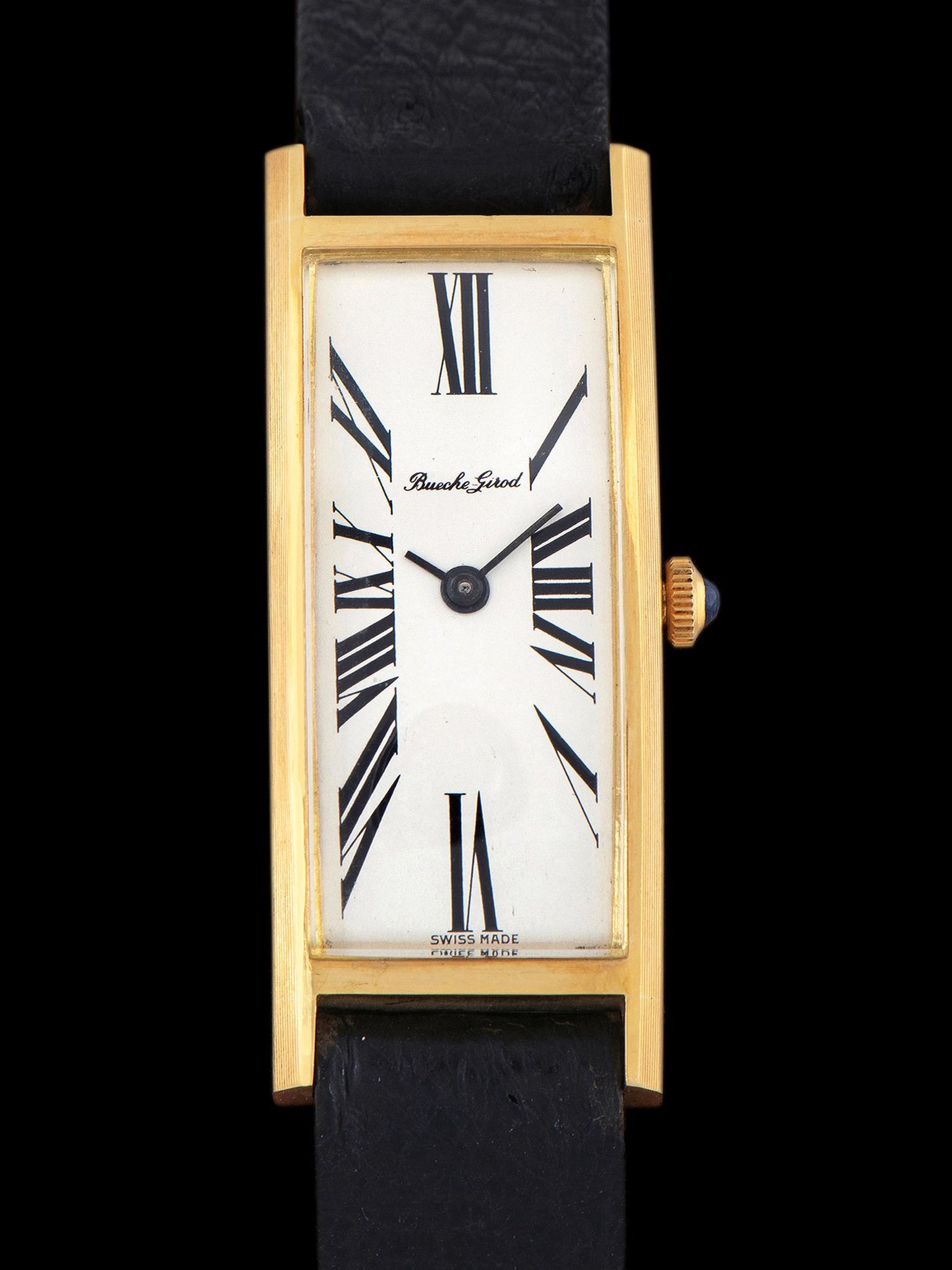 *Unpolished* 1960s Bueche Girod "Cintree" Curvex 18K YG (Ref. 6716-1) W/ White Roman Numeral Dial