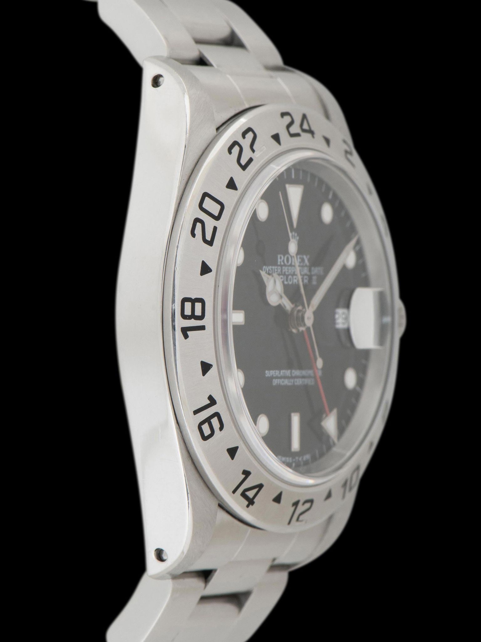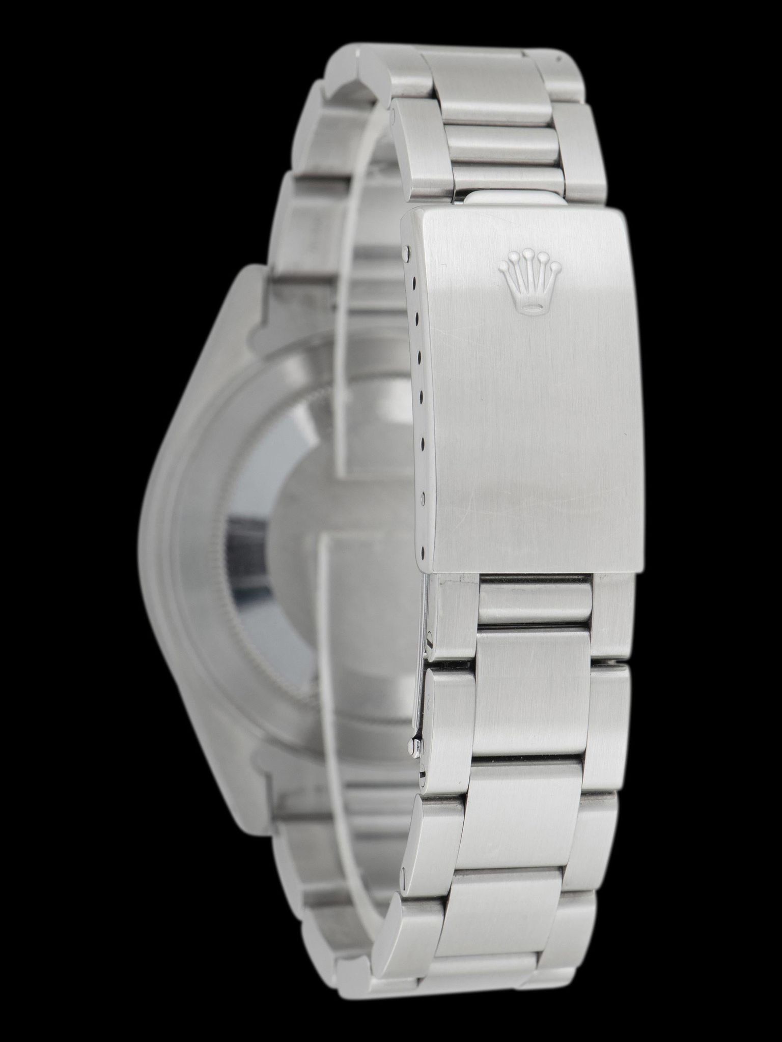 The impressive case exhibits gentle signs of use and is believed to remain unpolished, displaying sharp lug holes and chamfers with crisp factory finishing present. The original fixed 24-hour stainless steel bezel is in extremely crisp condition, showing light no signs of use, and only minor loss to the black enamel. The original Rolex 78360 Oyster bracelet with 501B end pieces retains 12 links that show minimal stretch and will fit up to a 7 1/2-inch wrist. The watch comes with two additional bracelet links as well.