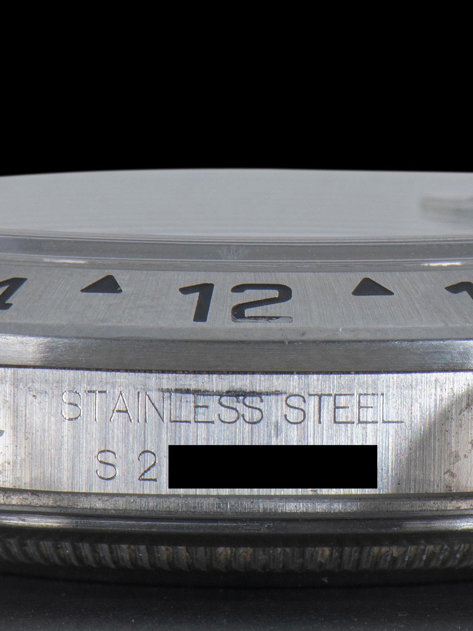 The impressive case exhibits gentle signs of use and is believed to remain unpolished, displaying sharp lug holes and chamfers with crisp factory finishing present. The original fixed 24-hour stainless steel bezel is in extremely crisp condition, showing light no signs of use, and only minor loss to the black enamel. The original Rolex 78360 Oyster bracelet with 501B end pieces retains 12 links that show minimal stretch and will fit up to a 7 1/2-inch wrist. The watch comes with two additional bracelet links as well.