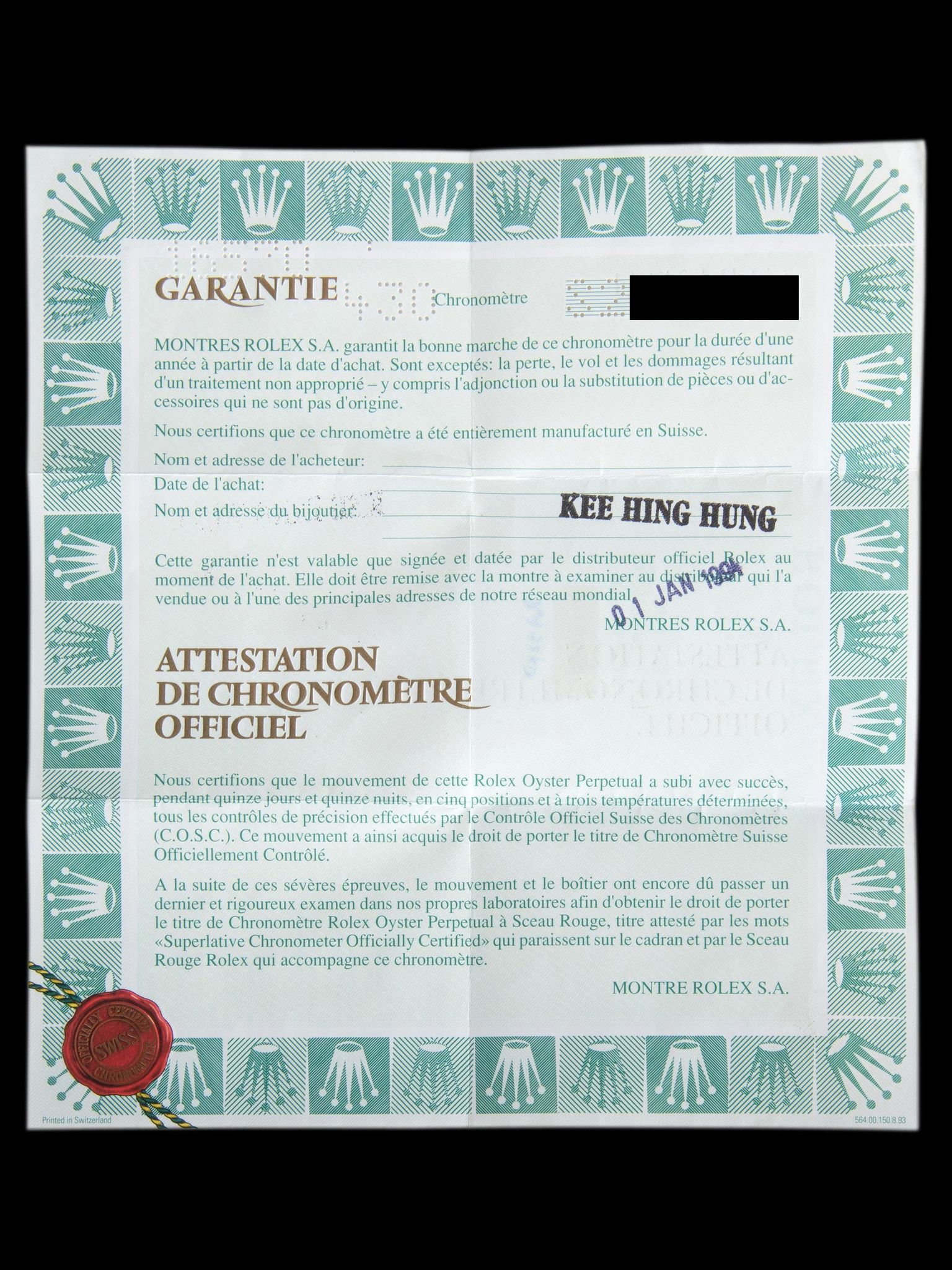 The watch comes with its original inner and outer boxes, Rolex guarantee paper, and two extra bracelet links. The watch is keeping time, but the service history is unknown. A movement service can be provided upon request.