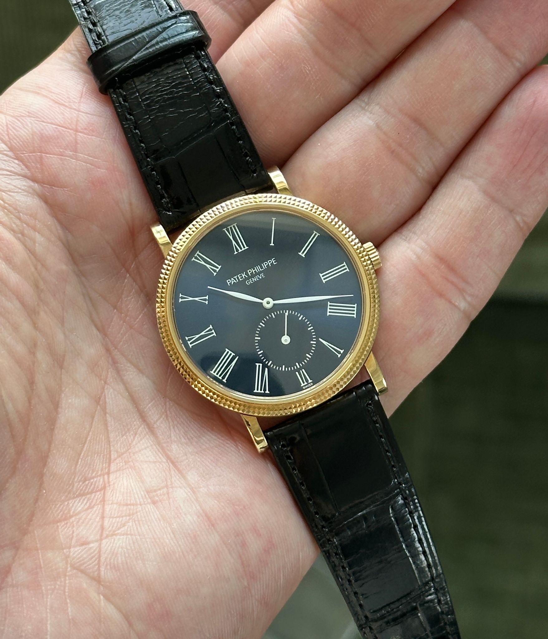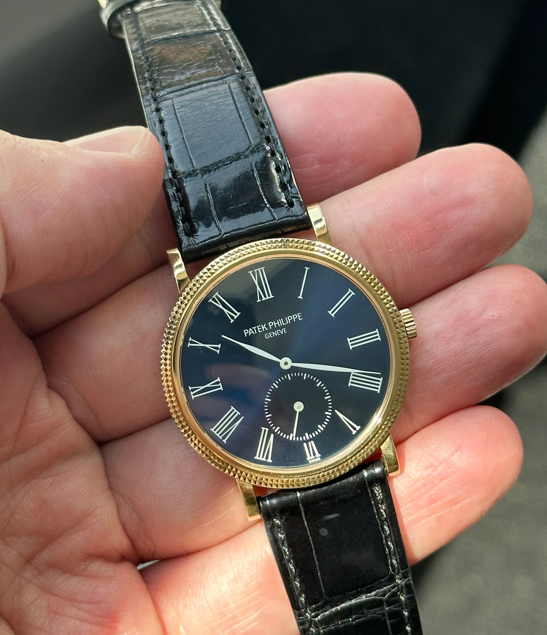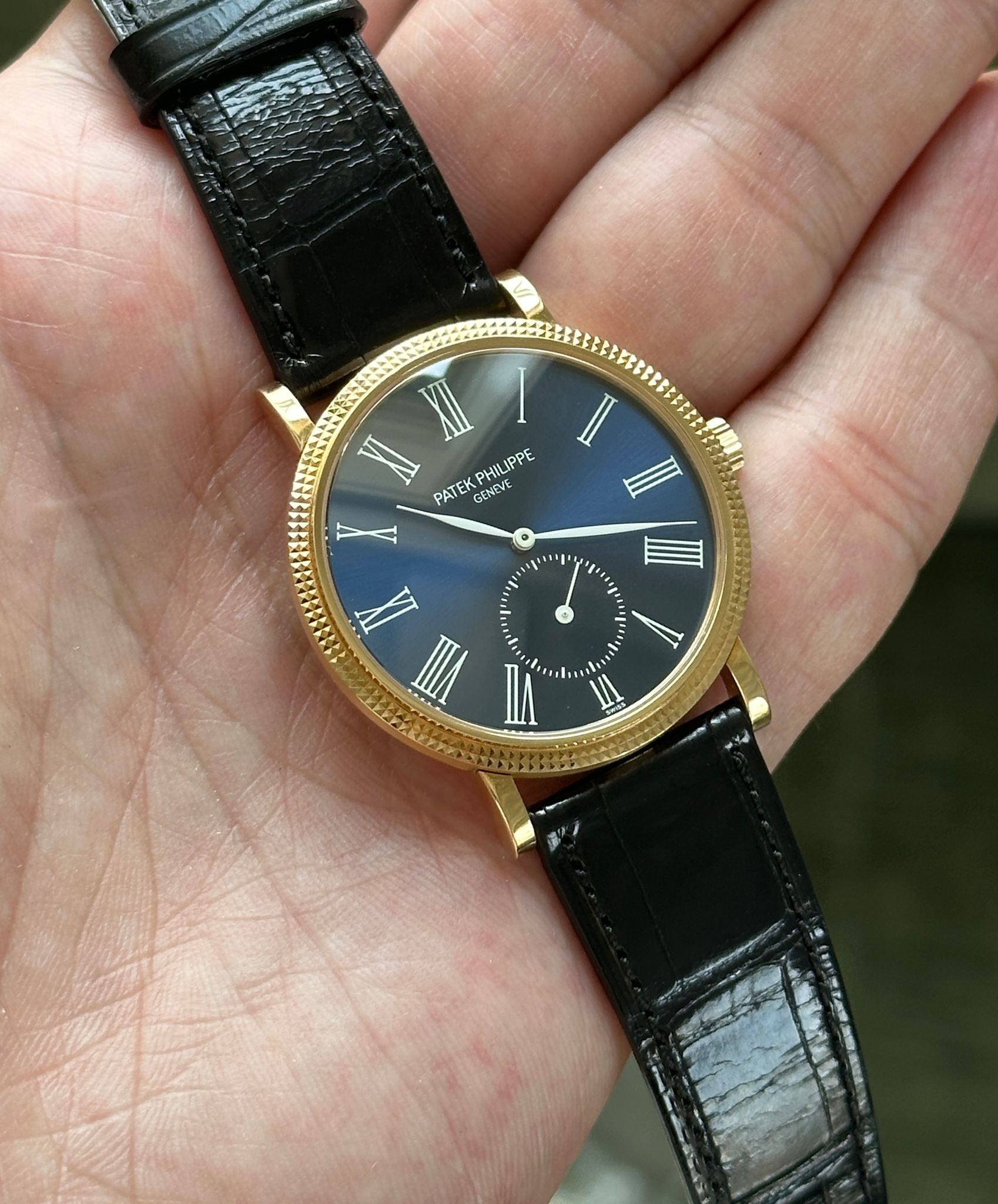 Rare blue dial variant of the early 2000s classic Calatrava reference 3919J-015 (015 is the blue dial code), in unworn condition.