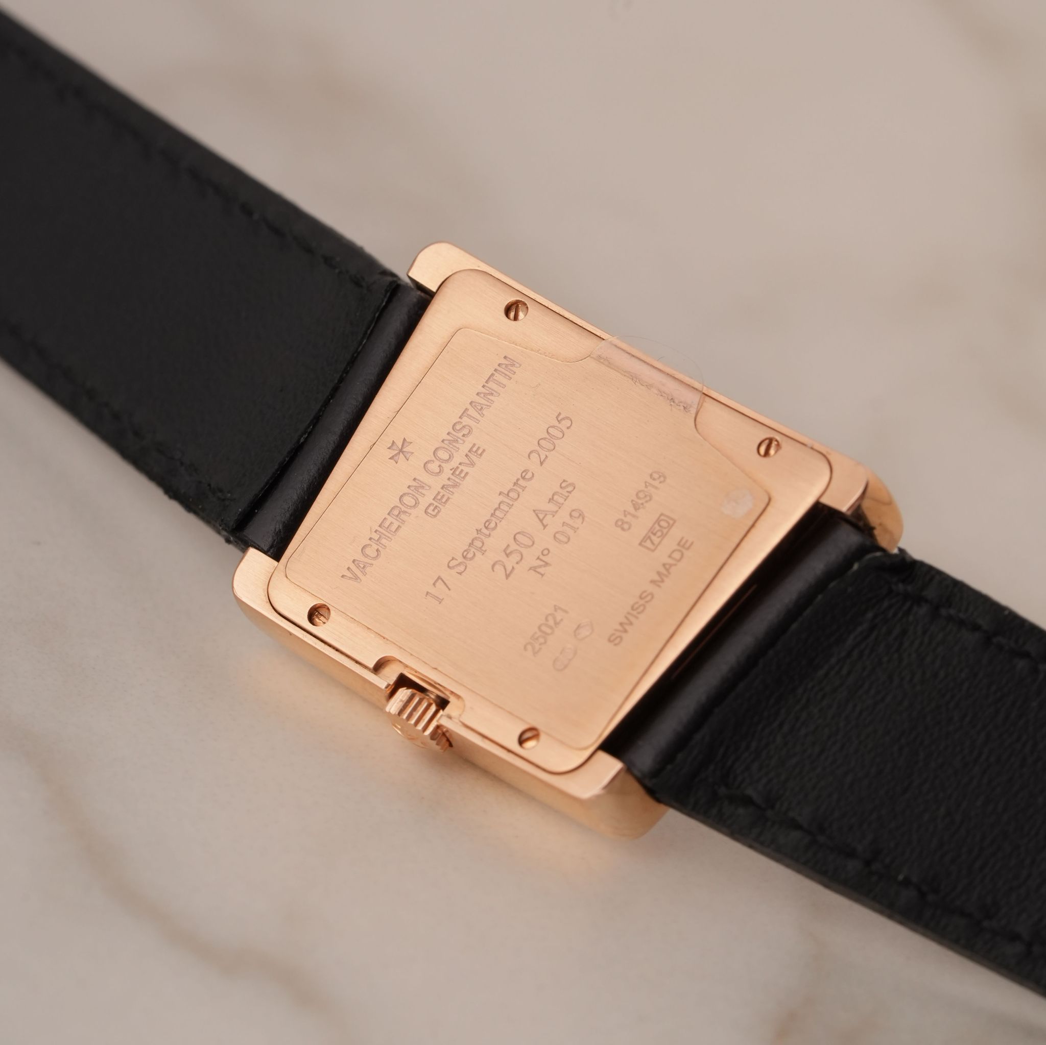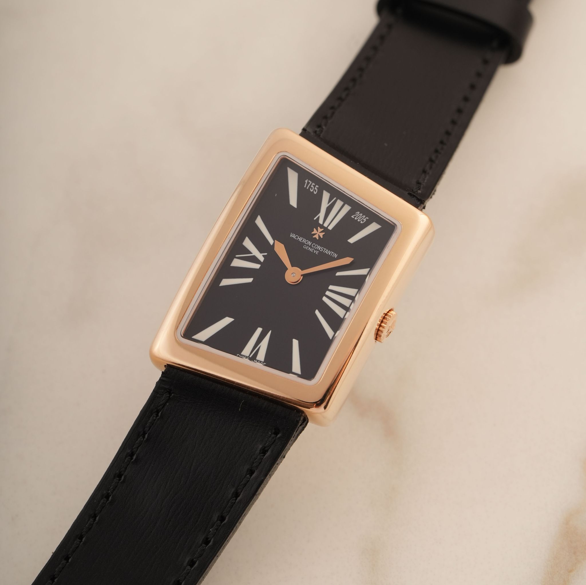 This Vacheron Constantin 1972 Ref. 25021/000R-9191 is a highly collectible piece created to celebrate the maison’s 250th anniversary, paying homage to one of its most daring and unconventional designs. The asymmetrical case, instantly recognizable, is crafted in solid 18k rose gold, combining avant-garde aesthetics with refined Geneva watchmaking tradition. Inside, a high-precision quartz movement ensures reliable timekeeping, housed within one of Vacheron’s most distinctive and elegant dress watch designs. The watch’s refined proportions and unique geometry make it an enduring statement piece, reflecting the brand’s spirit of innovation in the 1970s era and beyond. Accompanied by an official Extract from the Vacheron Constantin Archives, this anniversary edition is an exceptional opportunity for collectors seeking a rare and historically significant creation from one of Switzerland’s most prestigious manufactures, seldom seen on the market in such fine condition.