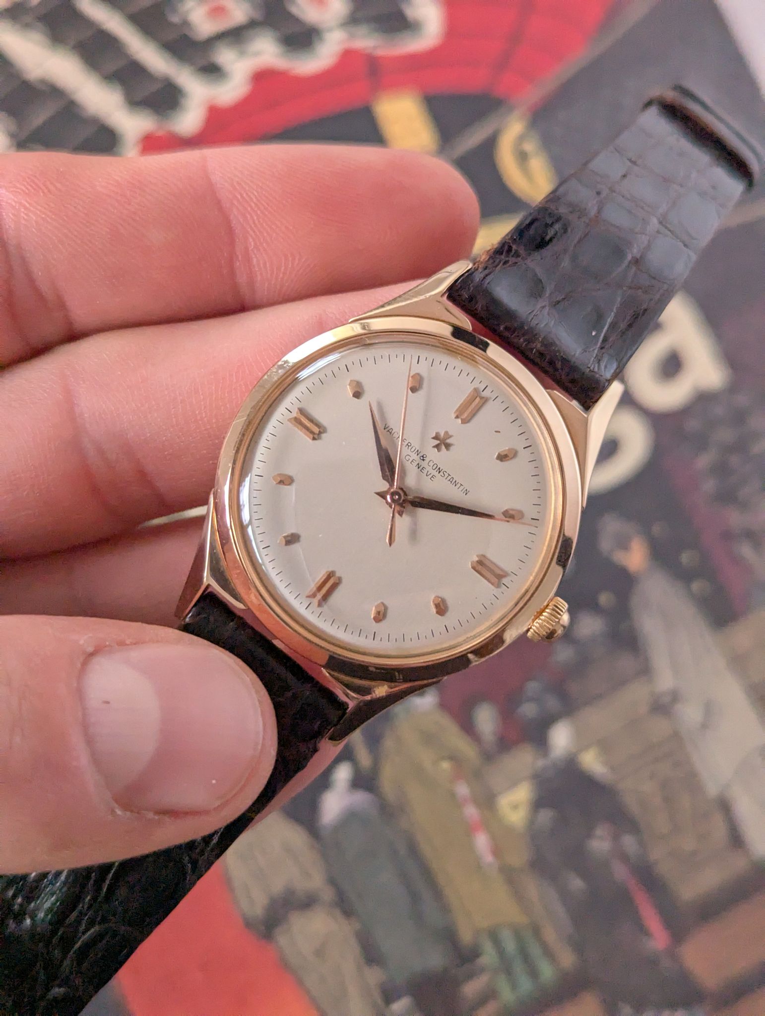 The Vacheron Constantin 6111 Chronomètre Royal in pink gold is an exquisite example of Swiss horological artistry. With its 36mm case made from luxurious 18k pink gold, this timepiece exudes sophistication and timeless elegance. The dial features a clean, understated layout, with applied gold hour markers, offering a classic yet refined aesthetic that is characteristic of Vacheron Constantin’s high standards of craftsmanship.