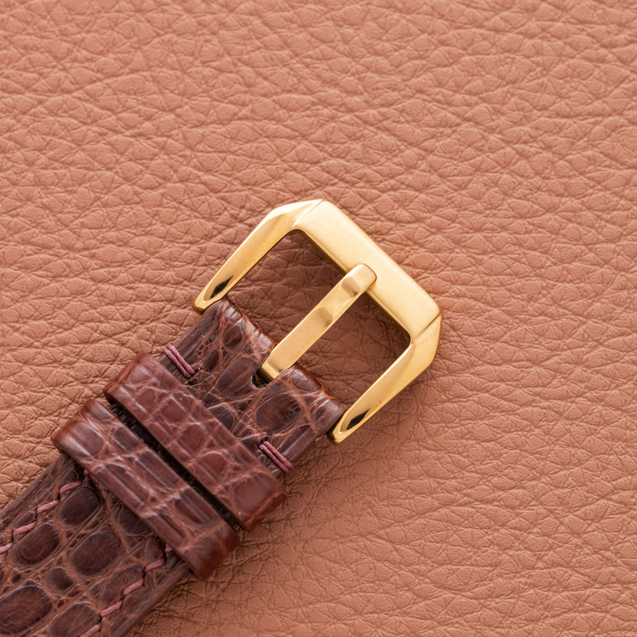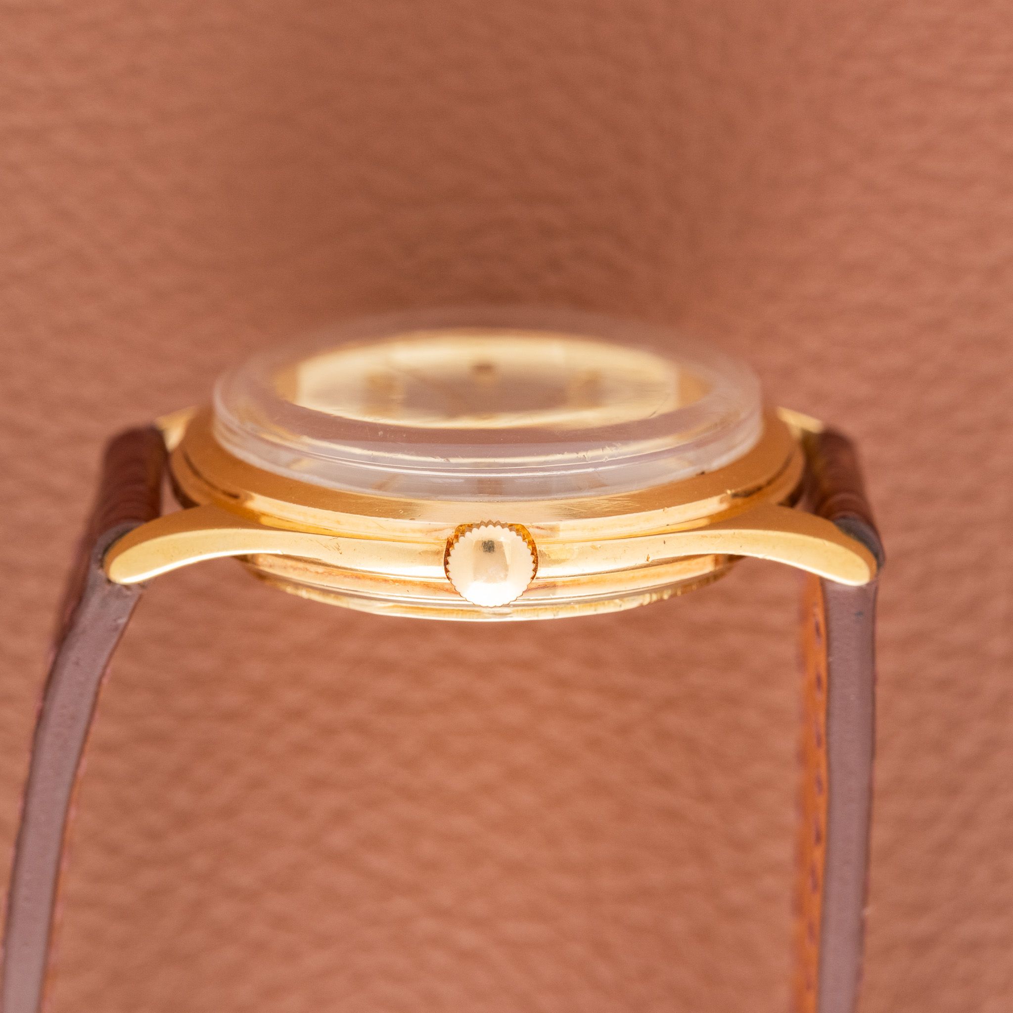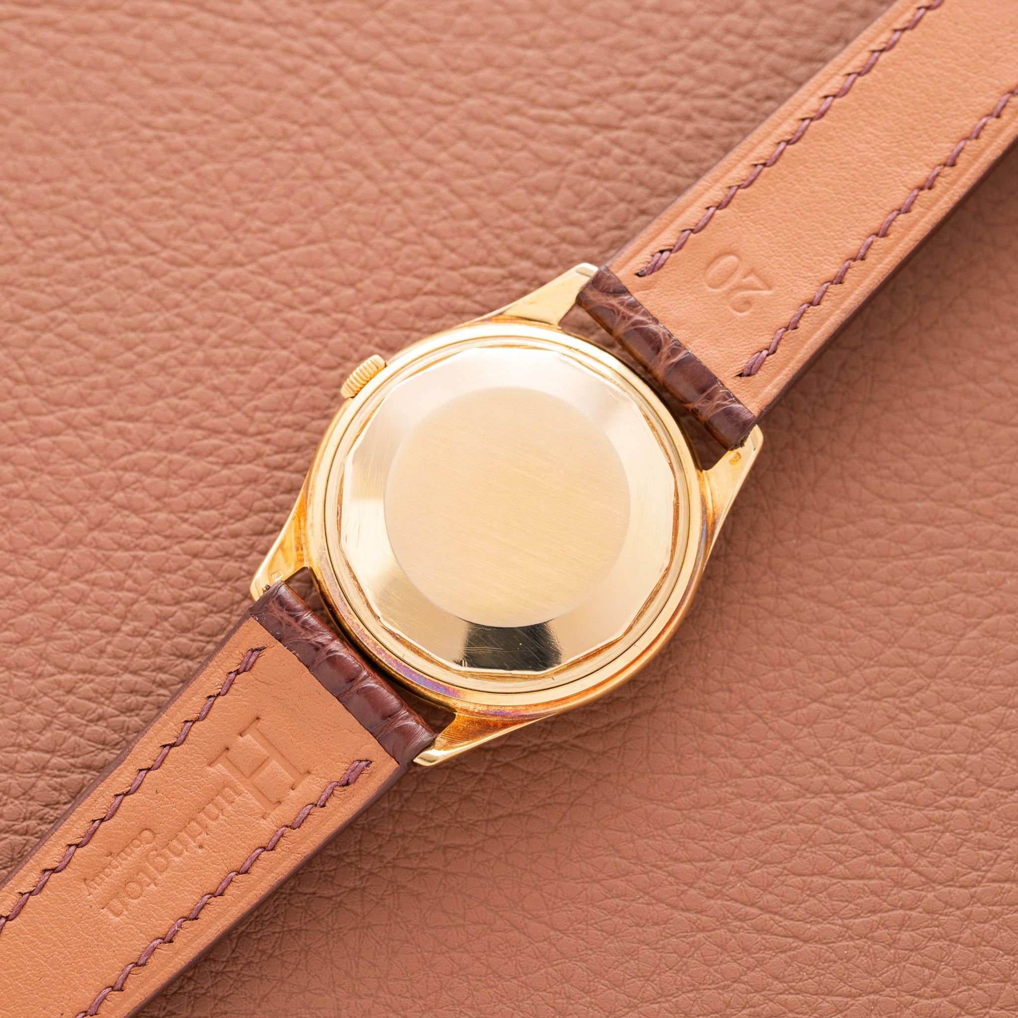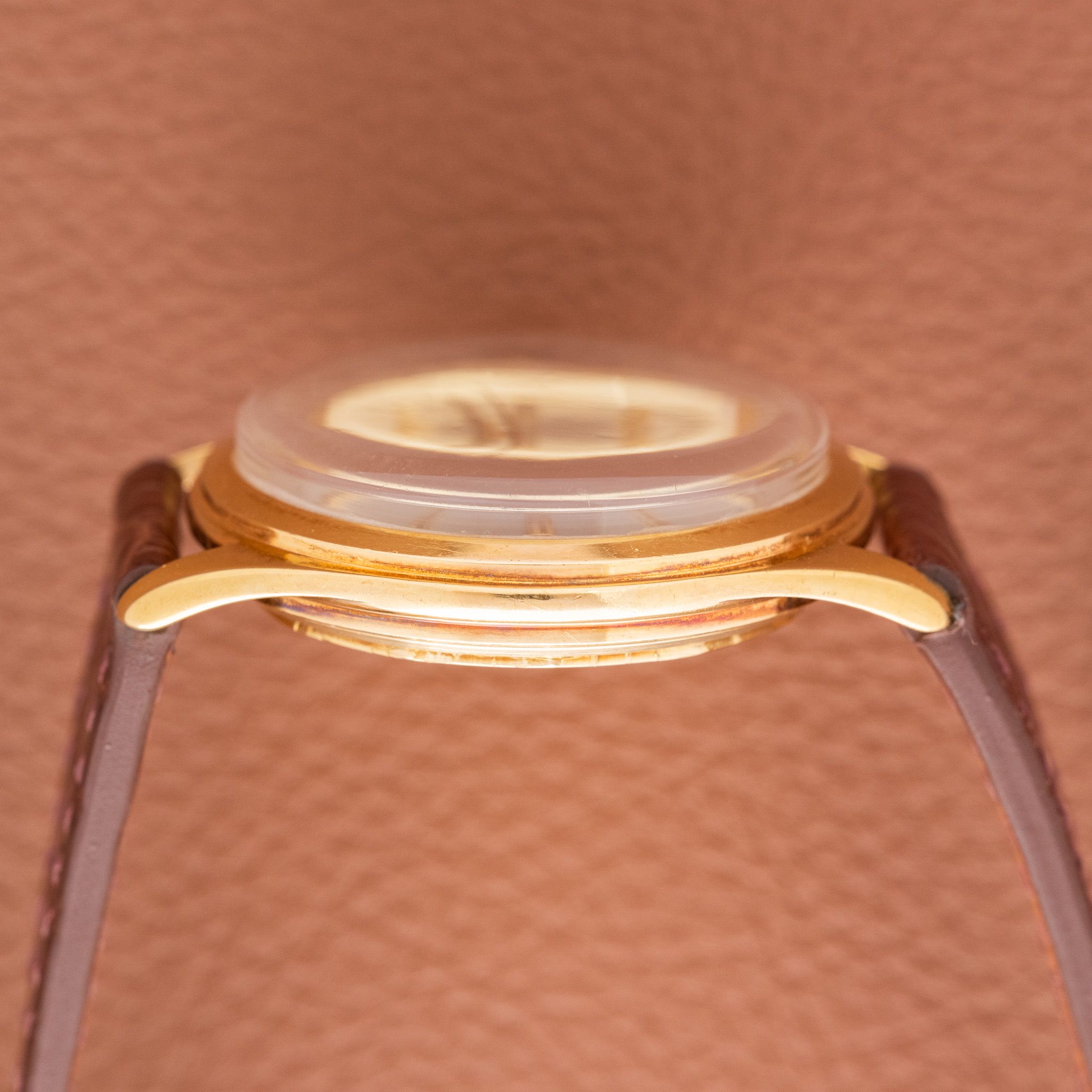 Case: The 18k gold case is 35.5mm and wears large. The case looks to be unpolished. The chamfers are sharp on the lugs, and the hallmarks are still deep. This is a screw down caseback, which is rare for this era of dress watches. It is important to note the casemaker, CR Spillmann. The same casemaker that helped Rolex create the Oyster Case.